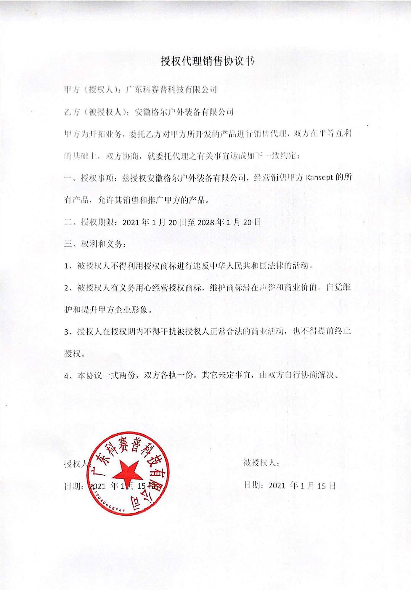 Kansept 授权书