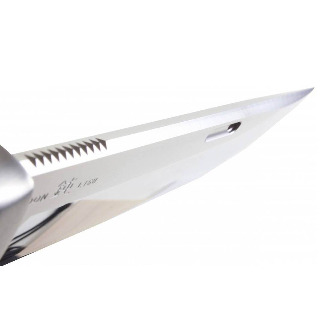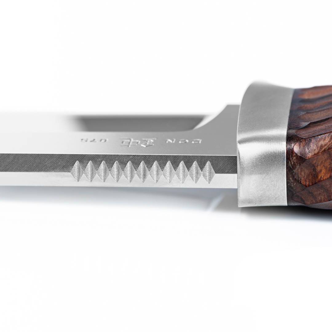DON-ZDP是Rockstead刀具系列中的旗舰级别的刀具之一。刀片采用了双凸面的刀形设计,结合了先进的工艺和材料,使其在市场上独树一帜。我们对刀片表面的处理技术非常自信,当施加力量时,这把刀能够轻松切割电话簿,如切黄油般顺滑。请亲自体验我们进化后的双凸面刀片带来的卓越锋利度。刀片采用ZDP189材质,这是一种通过纳米技术开发的粉末不锈钢,专为切割工具而设计。然而,这款刀具不适合用于砍劈。