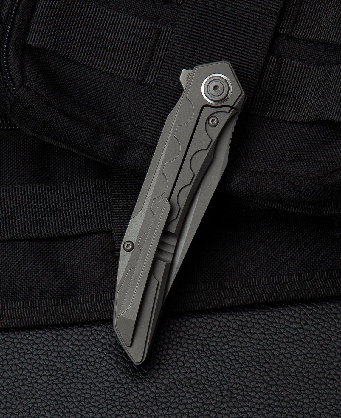 BESTECH SAMARI 的手柄同样采用钛合金,呈现出黑色石洗外观。整体长度为8.74英寸(222毫米),折叠时长度为4.92英寸(125毫米)。钛合金手柄轻巧坚固,为您提供舒适的握持感和出色的操作性能。