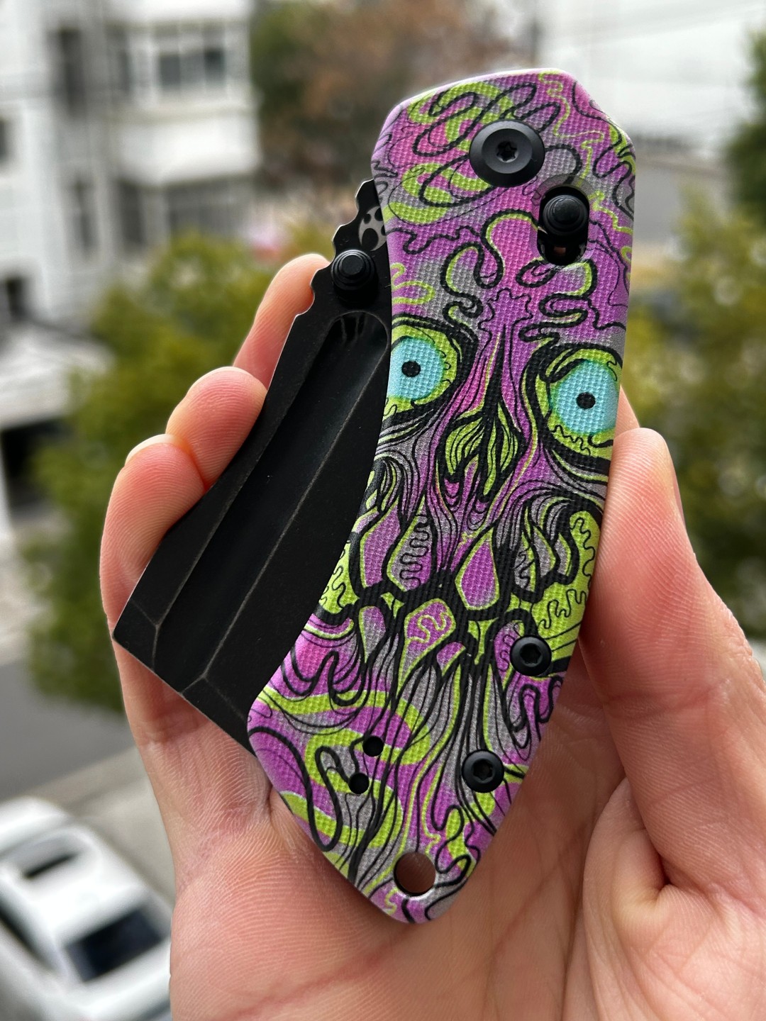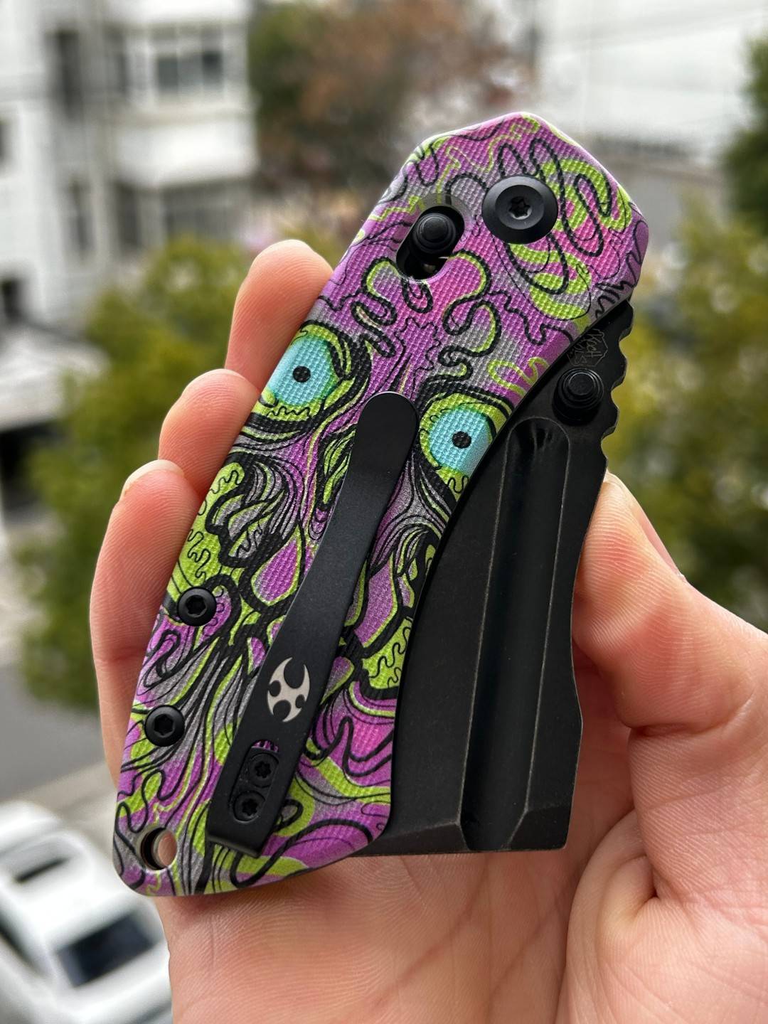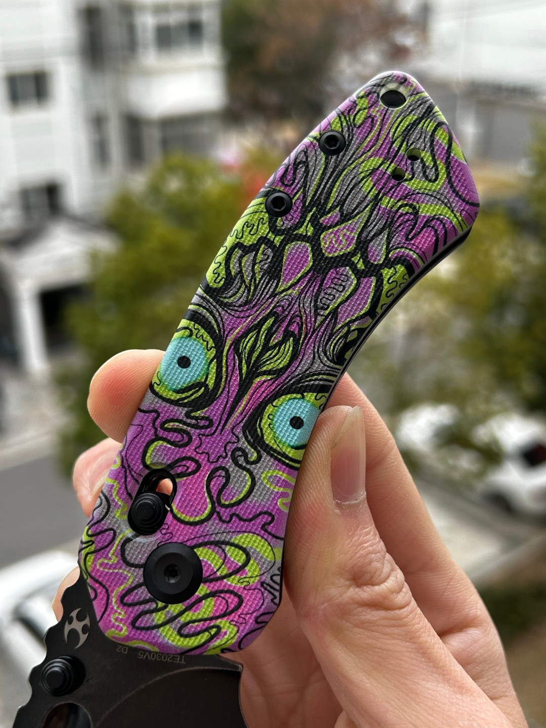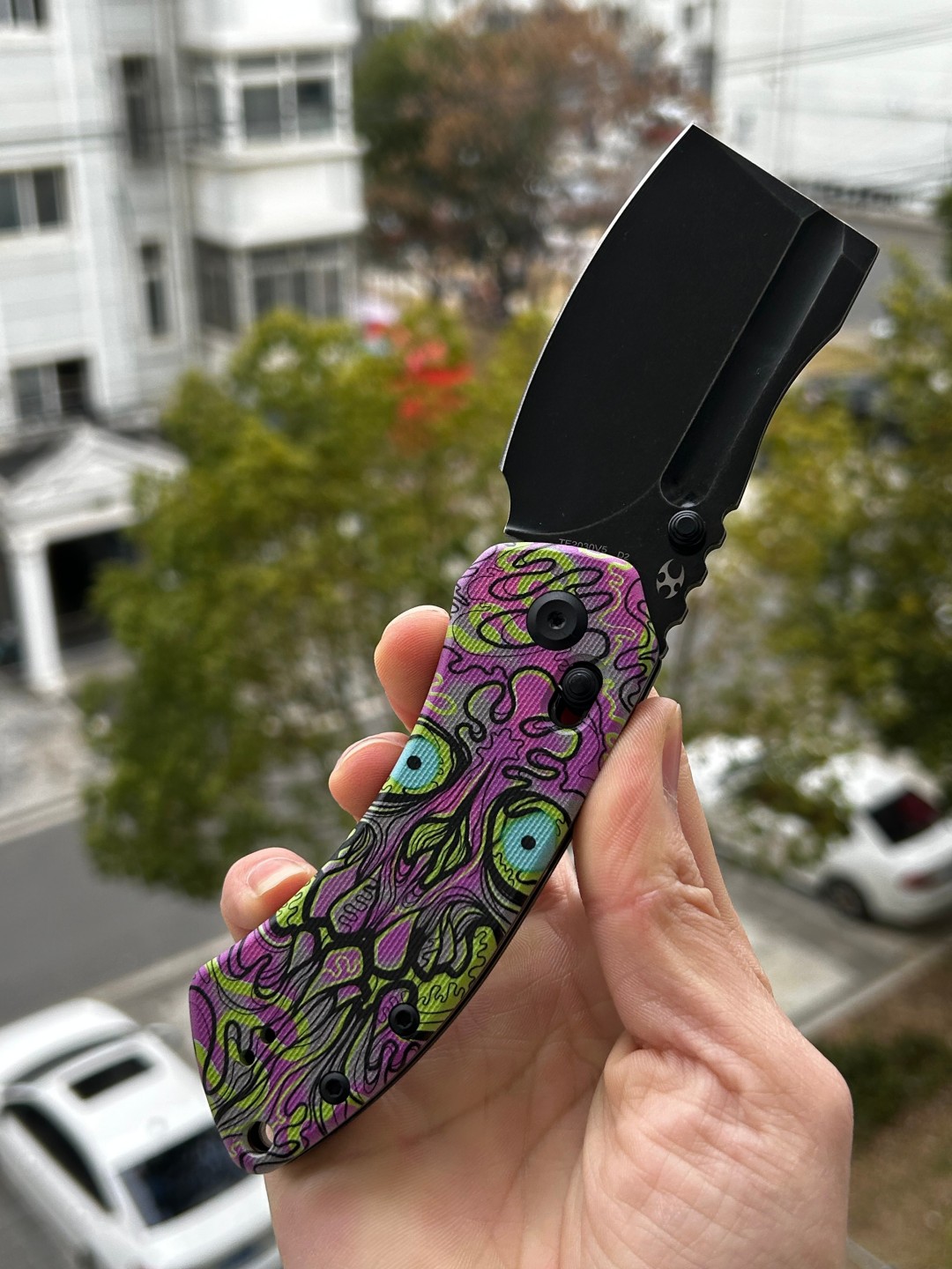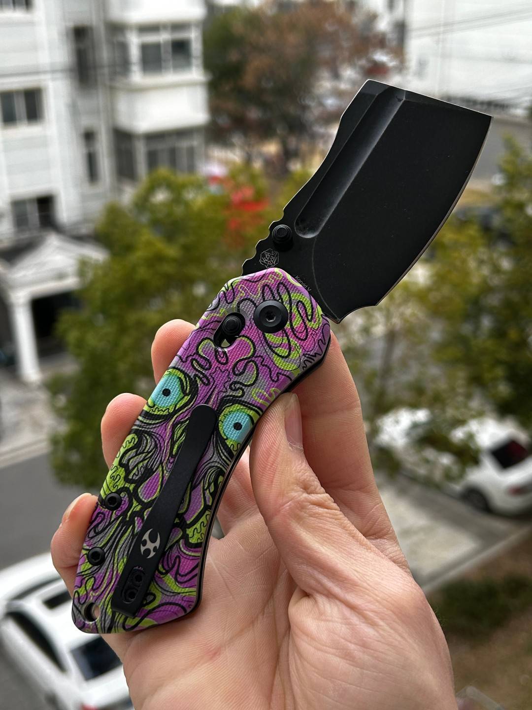 | 手柄材料 | 翡翠G10,带紫色亡灵印花 |