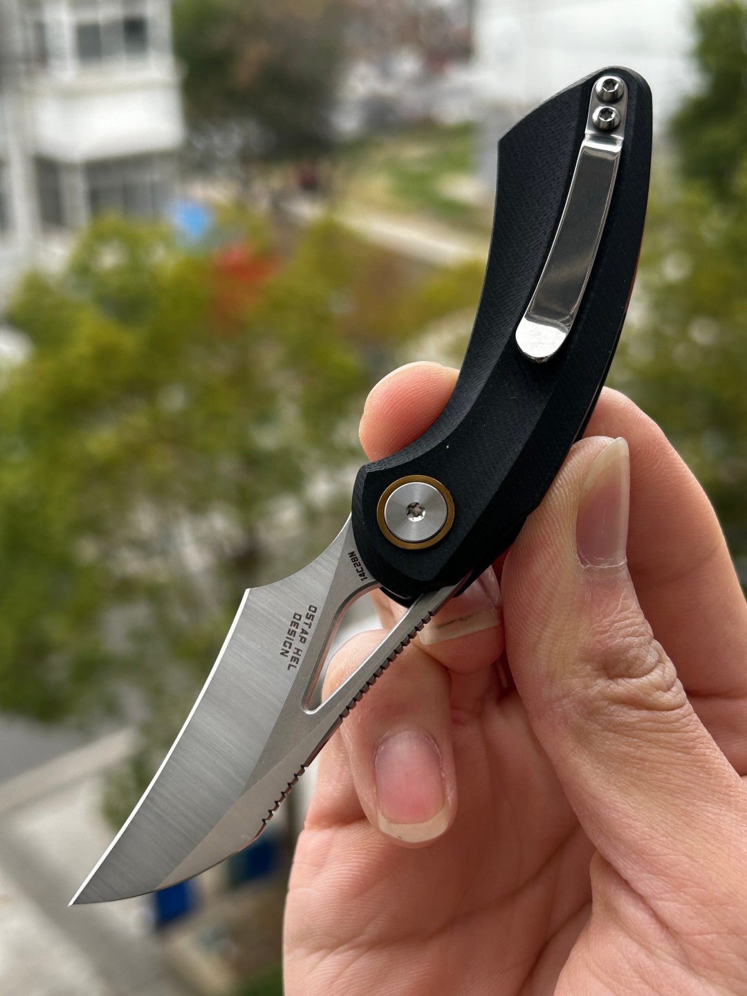 规格 刀片材质:14C28N 刀刃表面处理:石洗+缎面 握把材质:G10 夹具材质:钢制 描述:衬套锁 握柄颜色:黑色 滚珠轴承:陶瓷 全长:5.24英寸(133毫米) 闭合长度:3.09英寸(78.5...