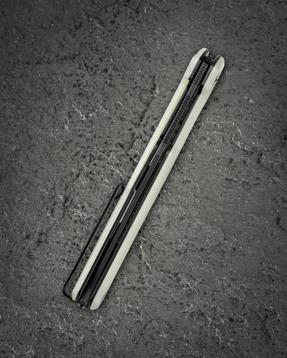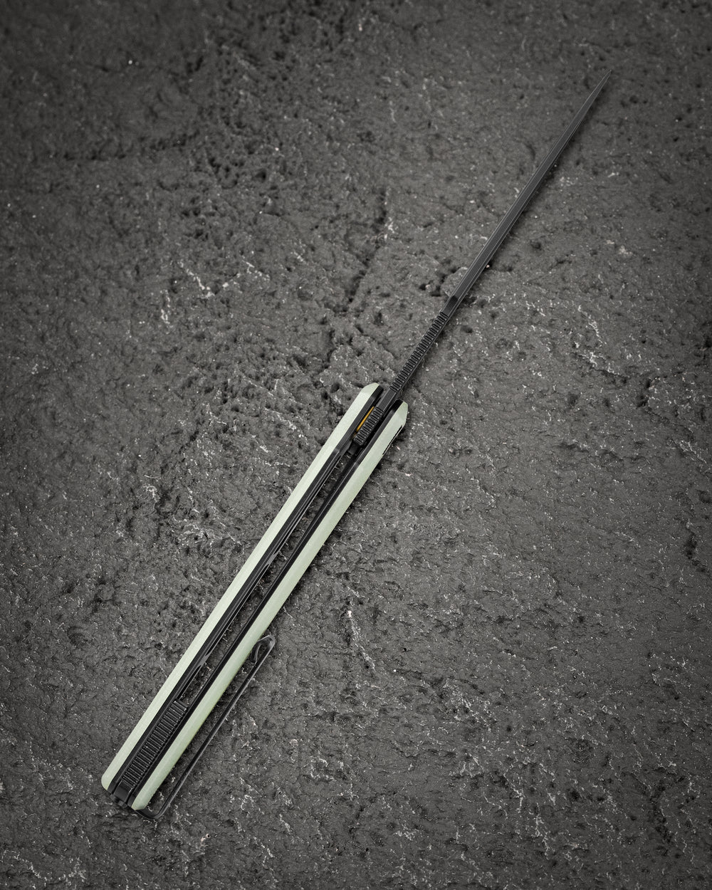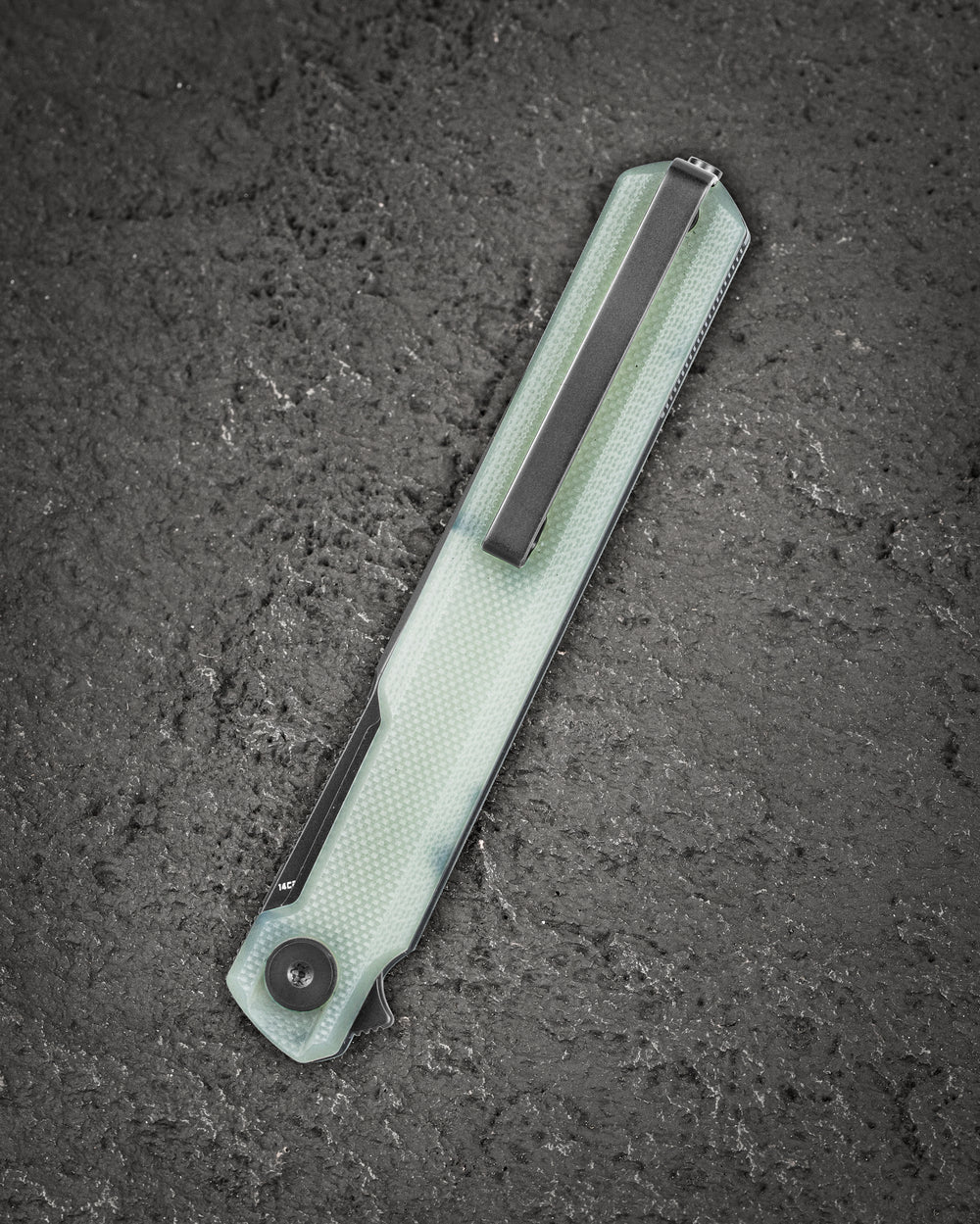 规格 刀片材质:14C28N 刀刃表面:黑色PVD 握把材质:G10 描述:衬套锁 手柄颜色:翡翠 整体长度:191.8毫米 / 7.55英寸 闭合长度:107毫米 / 4.21英寸 刀刃长度:84.8毫米 / 3.34英寸...