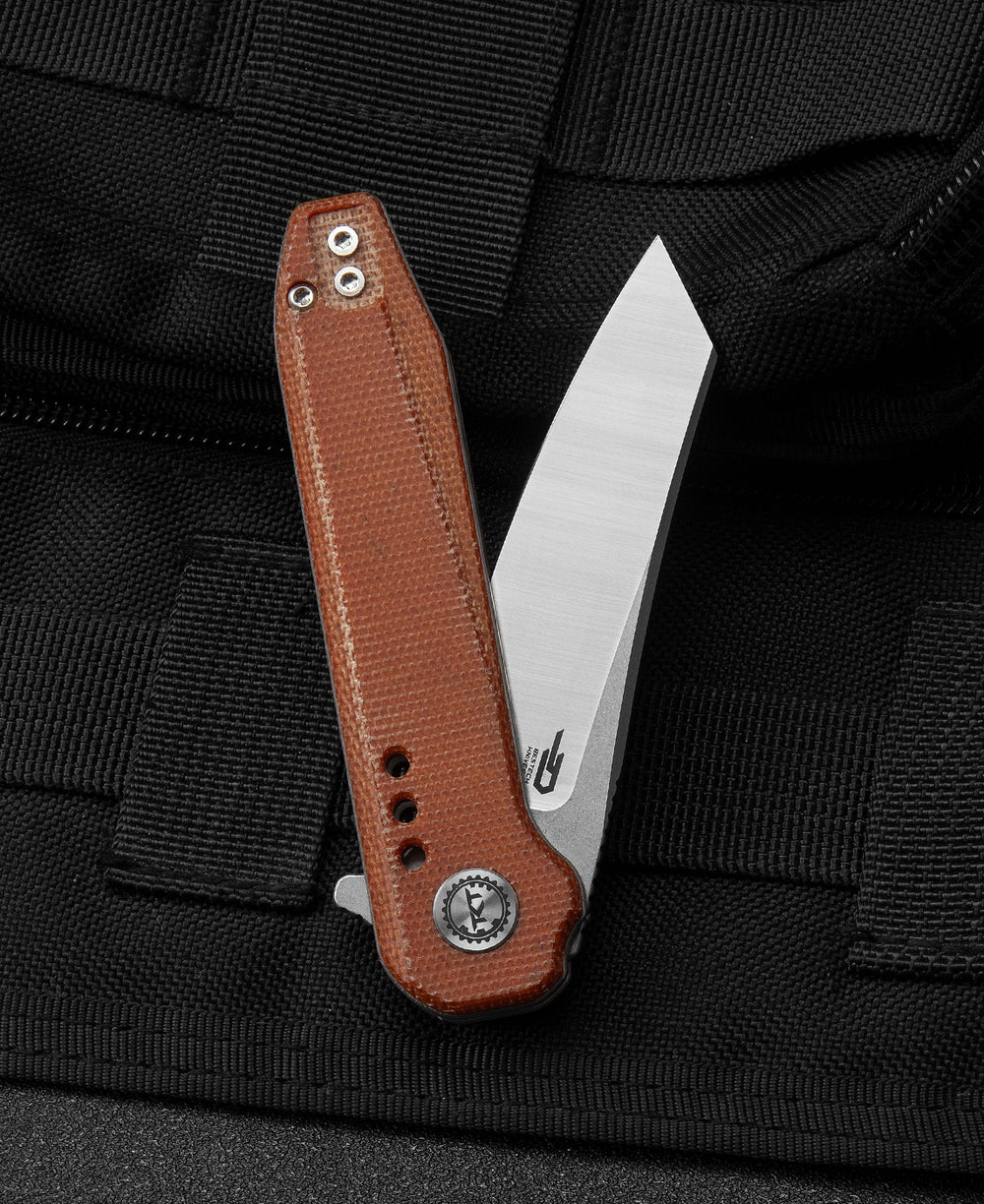 规格 刀片材质:14C28N 刀刃表面处理:石洗+缎面 手柄材质:天然米卡塔 夹具材质:钢制 描述:衬套锁 手柄颜色:橙色 滚珠轴承:陶瓷 全长:6.77英寸(172毫米) 闭合长度:3.84英...