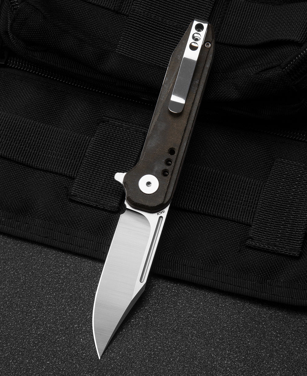 规格 刀刃材质:154CM 刀刃表面处理:石洗+缎面 手柄材质:黑褐色米卡塔 夹具材质:钢制 描述:衬套锁 手柄颜色:黑褐色 滚珠轴承:陶瓷 全长:6.77英寸(172毫米) 闭合长度:3.84...