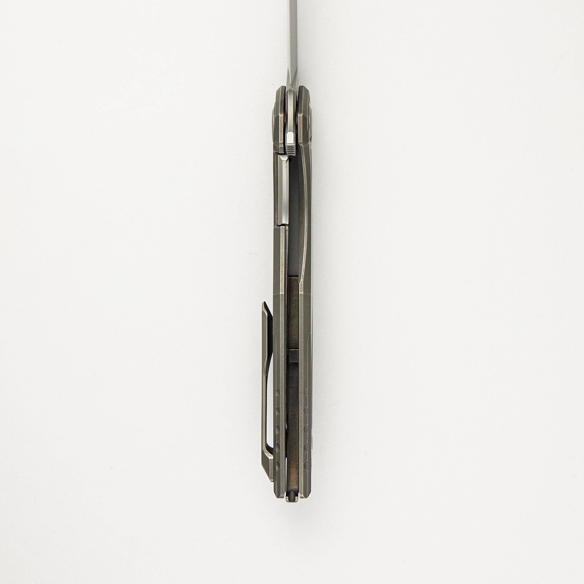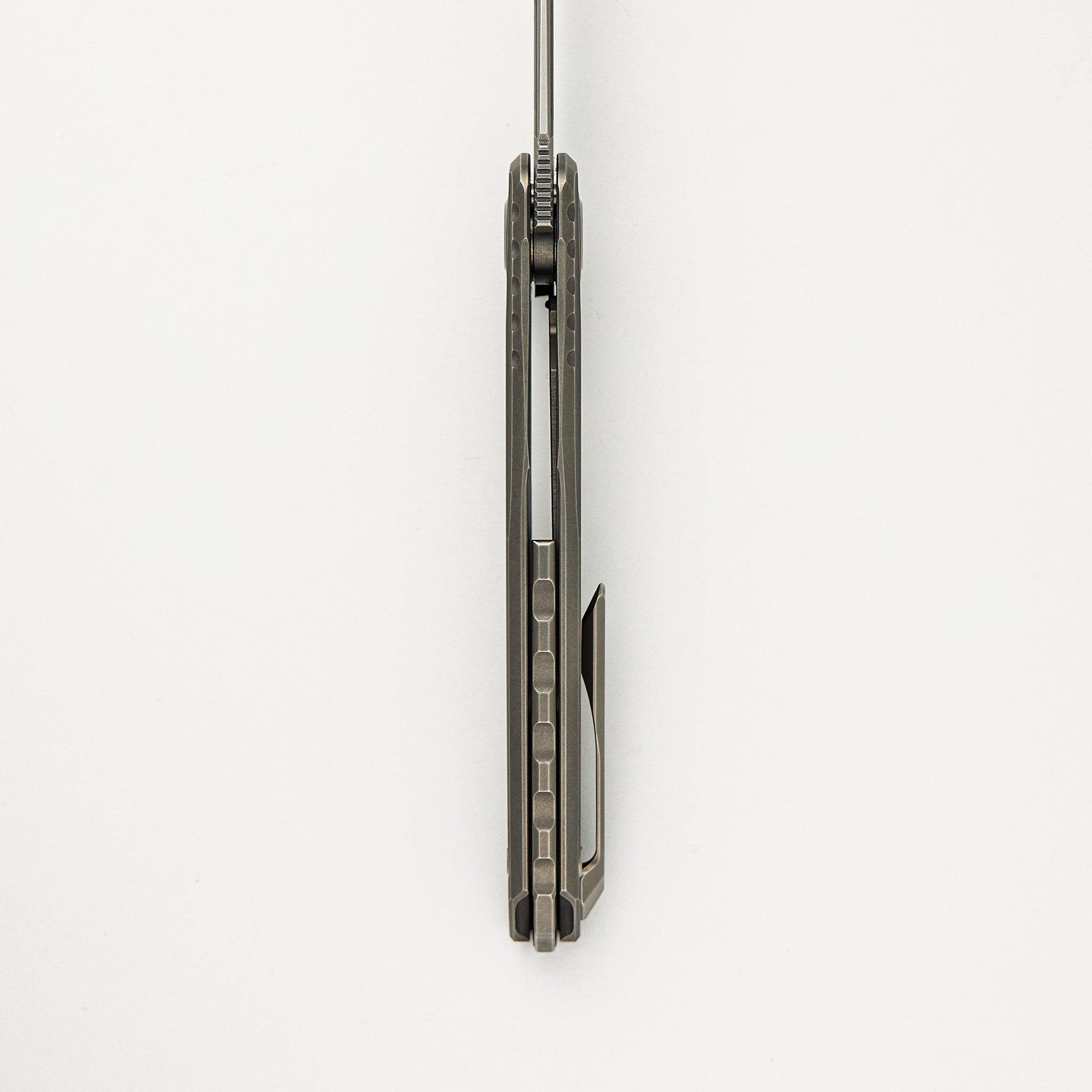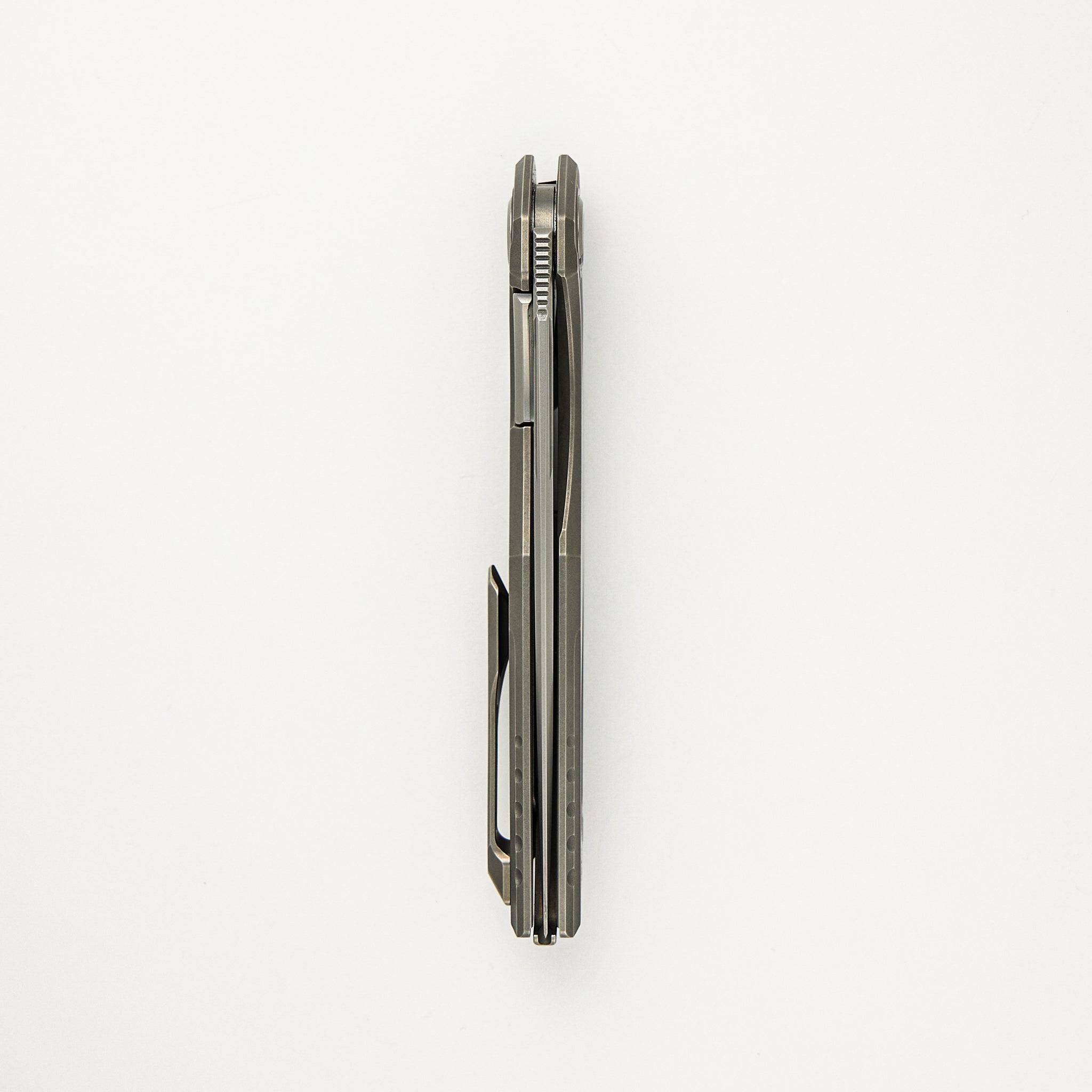 - 顶部朝上的石洗钛金属口袋夹,带隐藏式螺丝