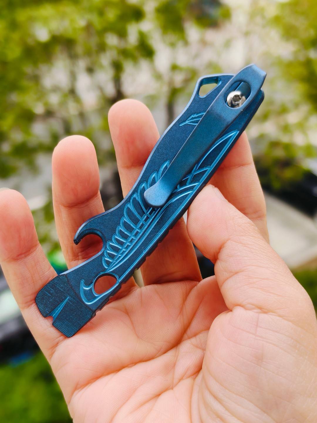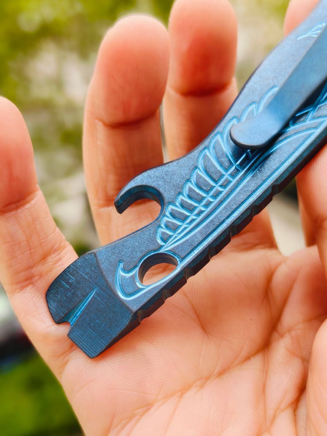 新旧程度:过手新,无明显使用痕迹。单品,无任何附件。 采用 6AL-4V 钛合金,全机加工,配有钛合金口袋夹。每把撬棒和口袋夹均由手工精细打磨。正面采用 CNC 雕刻 LNW 和 Feather 图案,背面则雕刻 Streamlin...
