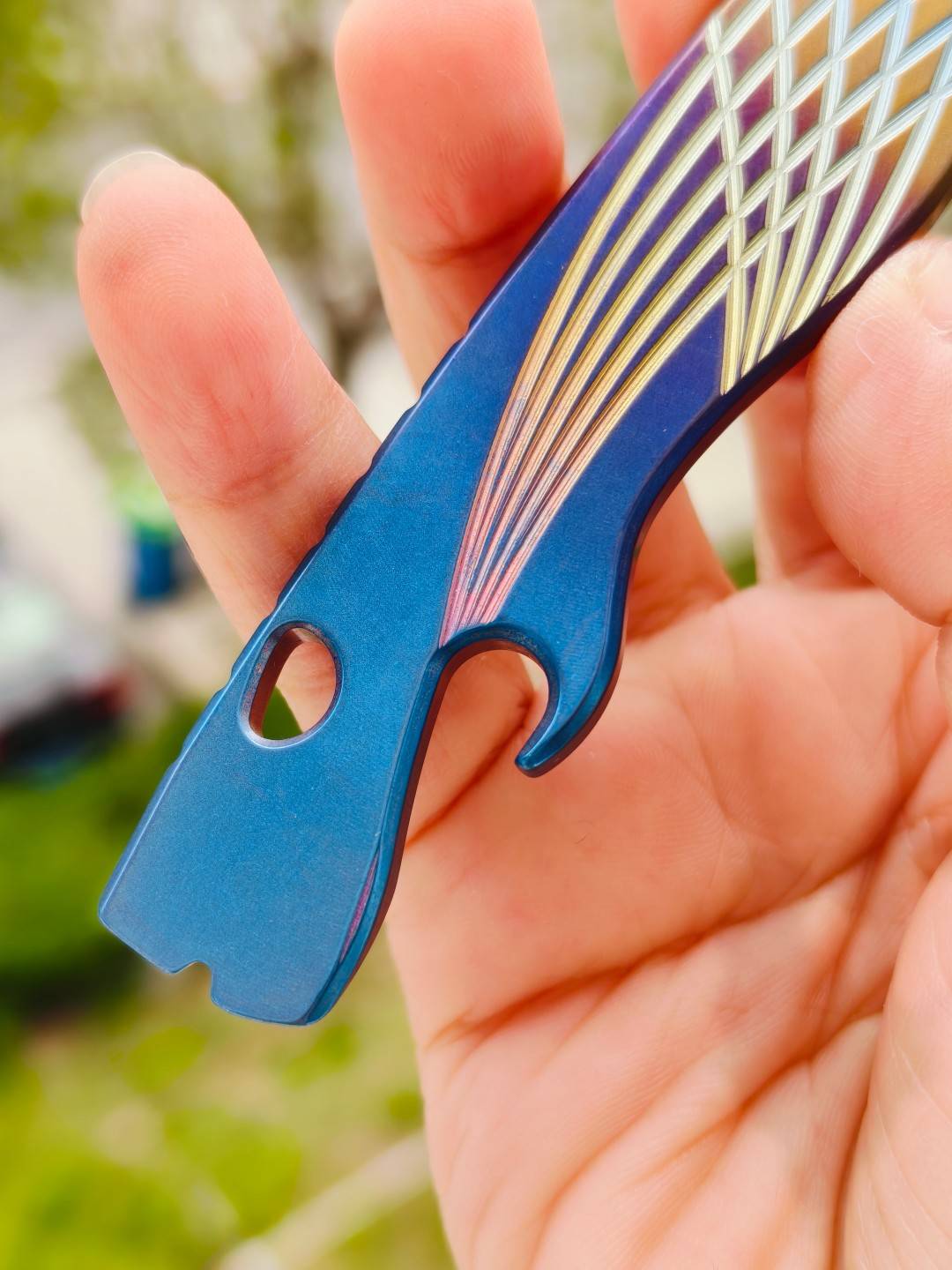 新旧程度:过手新,无明显使用痕迹。 采用 6AL-4V 钛合金,全机加工,配有钛合金口袋夹。每把撬棒和口袋夹均由手工精细打磨。正面采用 CNC 雕刻 LNW 和 Feather 图案,背面则雕刻 Streamline 图案。这款撬棒外...