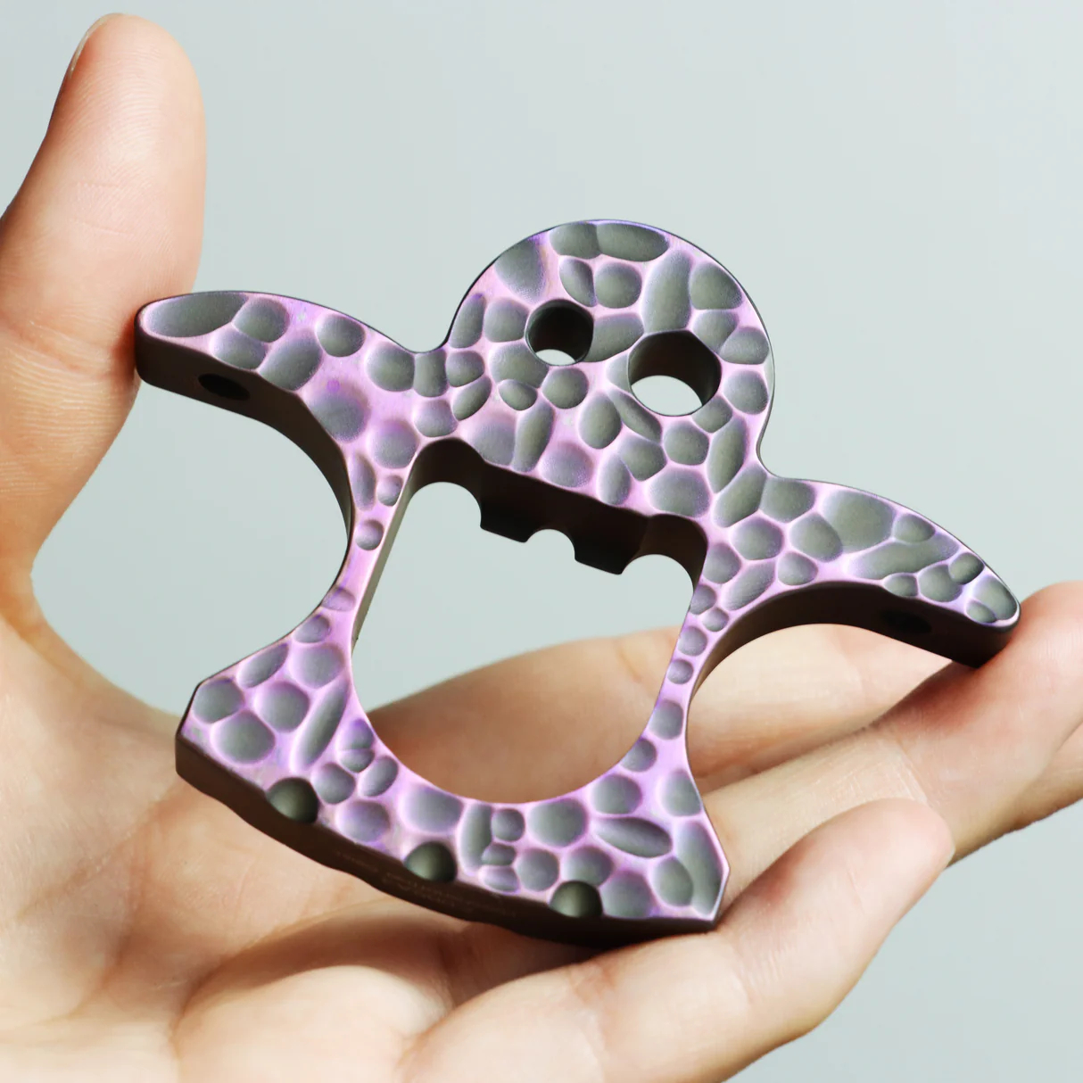 Flaschenöffner Geist 是一款极简的日常携带工具,采用精密加工的钛合金制成。它采用独特的橙皮图案/激光幽灵图案,增强握感和视觉吸引力,专注于一个核心功能——轻松开瓶。紧凑、耐用且精致,是实用的日常伴侣,设计简洁且有目的。