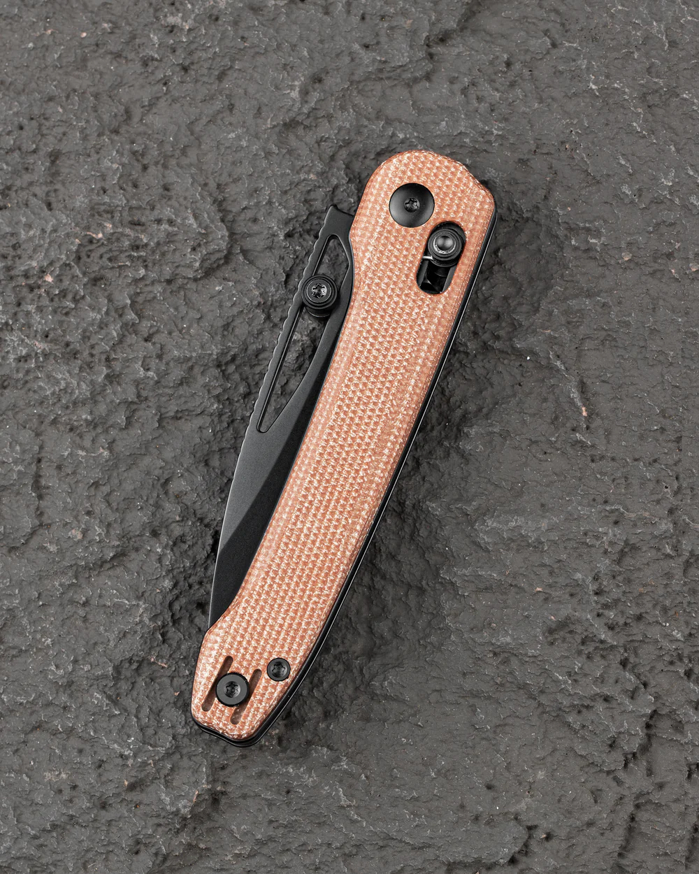 规格 刀片材质:14C28N 刀刃表面:黑色PVD 握把材质:米卡塔 描述:锁锁 手柄颜色:棕色 全长:195.7毫米/7.71英寸 闭合长度:110.2毫米/4.34英寸 刀刃长度:85.5毫米/3.37英寸 刀...