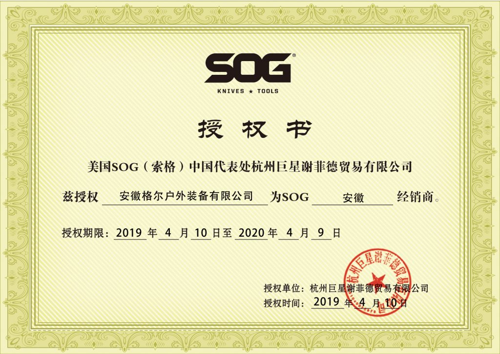 SOG美国索格授权经销书