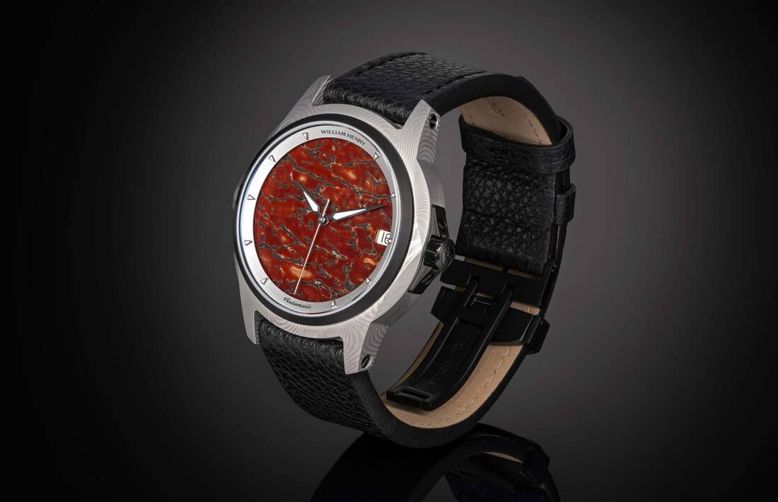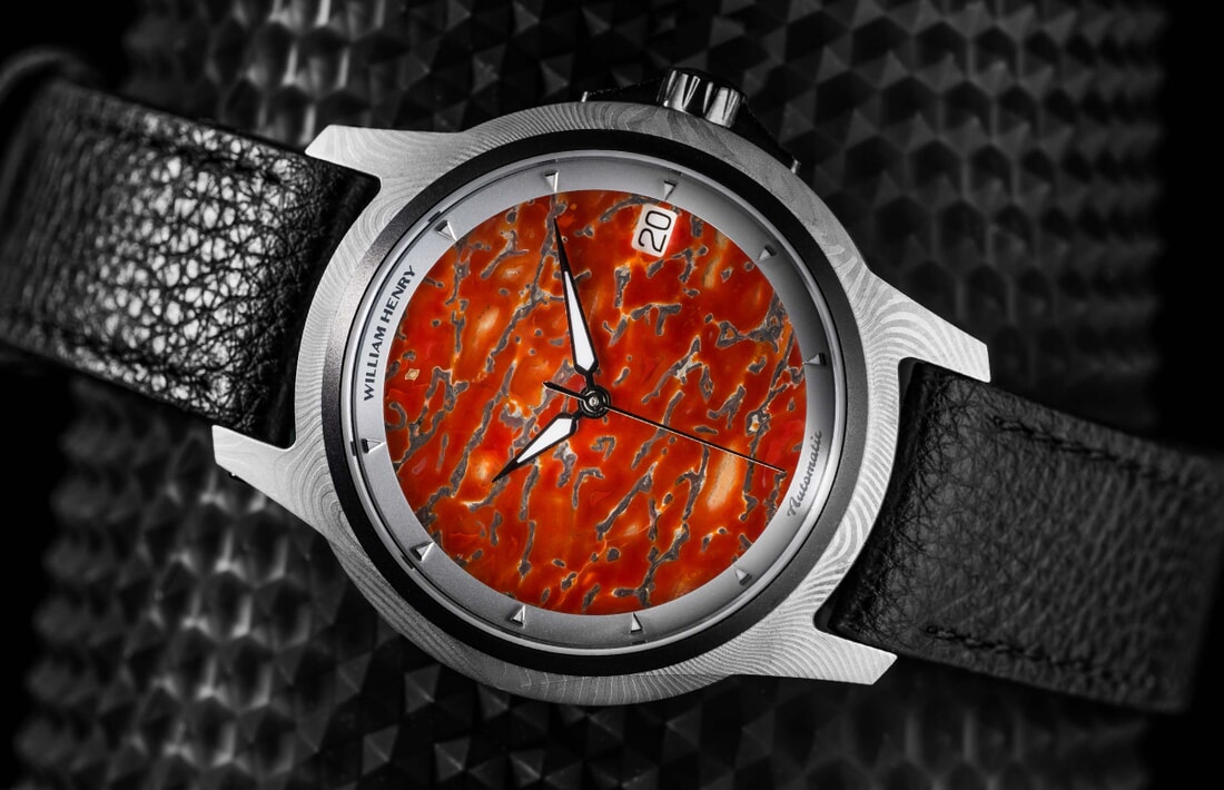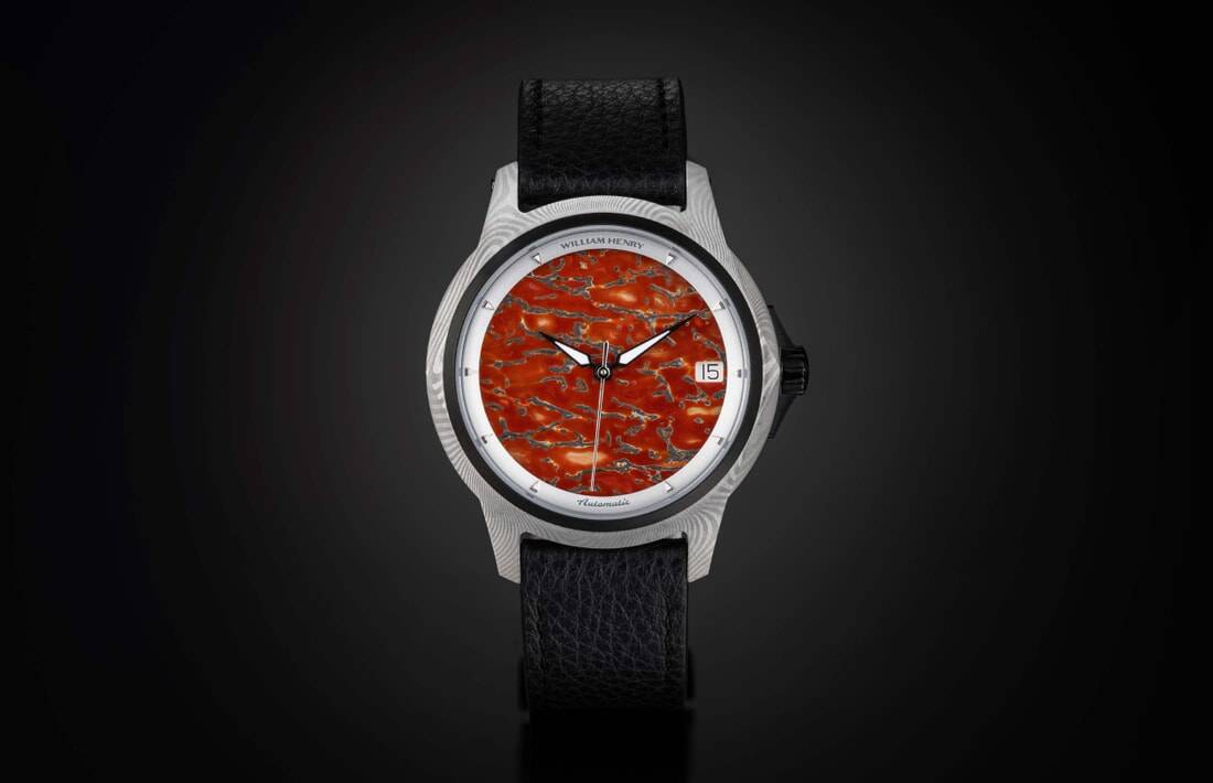 William Henry是一个通过永恒的作品讲述故事的工作室,我们的第一款手表设计就是对这一意图的证明。Legacy手表系列完美地融合了形式和功能,围绕着定义我们的非凡材料构建而成。这款限量版手表采用了恐龙骨制成的表盘;这种非凡化石材料年龄介于1亿到2亿年之间。我们使用世界上最好的高红色恐龙骨,在美国西南部发现。起初它看起来像岩石,但经过精密制作后,美丽多彩的色调和图案得以展现。历史在你腕间流淌。该表盘位于锻造大马士革钢外壳内,由300层不锈钢合金构成,并刻有金属漩涡花纹图案。外壳配备蓝宝石水晶和透明背面,揭示出38小时动力储备、自动机芯运行情况。防水等级为10 ATM / 100米,并配有手工制作皮革表带和定制不锈钢折叠扣带来方便佩戴与调整体验 。艺术与实用性完美结合, 展现出一个非凡的故事...