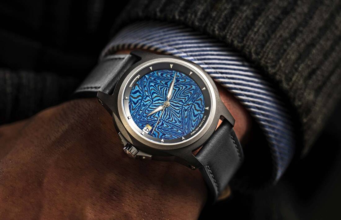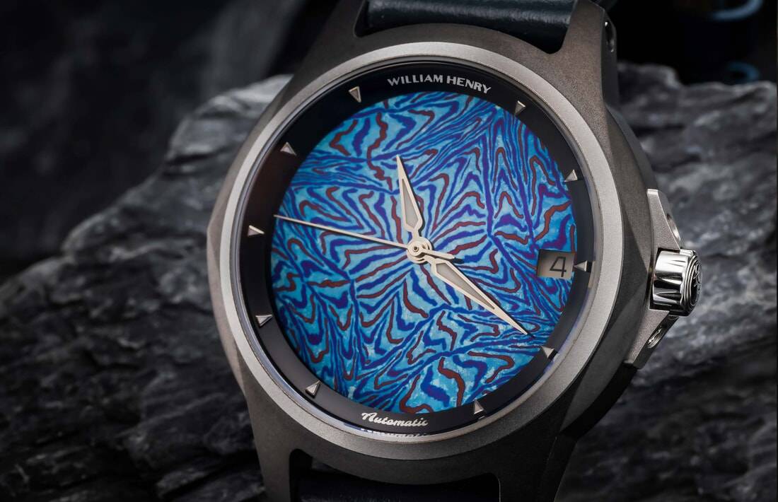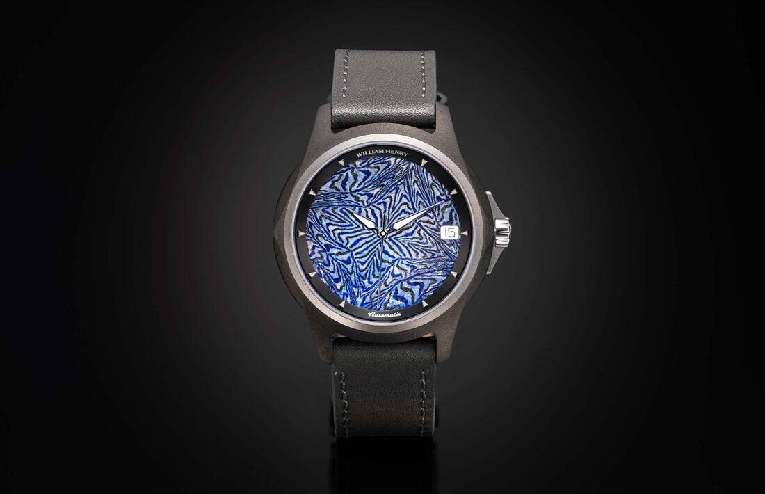 William Henry是一个通过永恒的作品讲述故事的工作室,我们的第一款手表设计就是对这一意图的证明。Legacy手表系列完美地融合了形式和功能,围绕着定义我们的非凡材料构建而成。这款限量版手表采用MokuTi制成的表盘;这种钛金属具有复杂多样、纹理丰富的特点。该金属由84个不同航空级别钛合金层叠而成,并经过精心打造,以呈现出精美细致、独特迷人的外观效果。为此项目专门从乌克兰请来了一位大师级艺术家进行锻造加工。