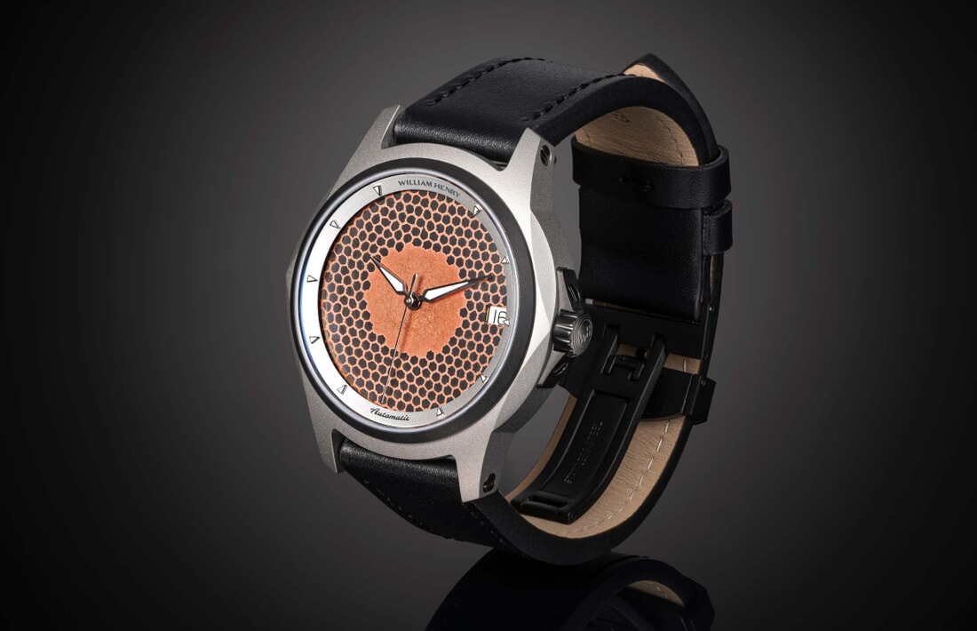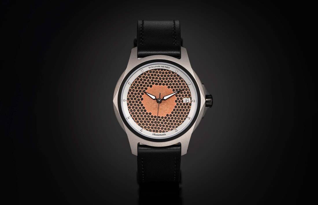 William Henry是一个通过永恒的作品讲述故事的工作室,我们的第一款手表设计就是对这一意图的证明。Legacy手表系列完美地融合了形式和功能,围绕着定义我们的非凡材料构建而成。这款限量版手表采用由超导体制成的表盘;这种铜-铌复合材料最初旨在成为大型粒子加速器中的电线。该项目从未完成,因此这种异域花纹材料从未被拉伸到其最终尺寸。只有极少量存在,并且我们有足够数量来制造有限数量的手表表盘。该表盘位于钛金属外壳内,带有黑色DLC涂层、蓝宝石水晶和透视背面,揭示了38小时动力储备、瑞士自动机芯。防水等级达到10 ATM / 100米,并且手工制作皮革表带配备定制不锈钢折叠扣,方便佩戴和调整大小。艺术与实用性完美结合,展现出一个非凡故事...