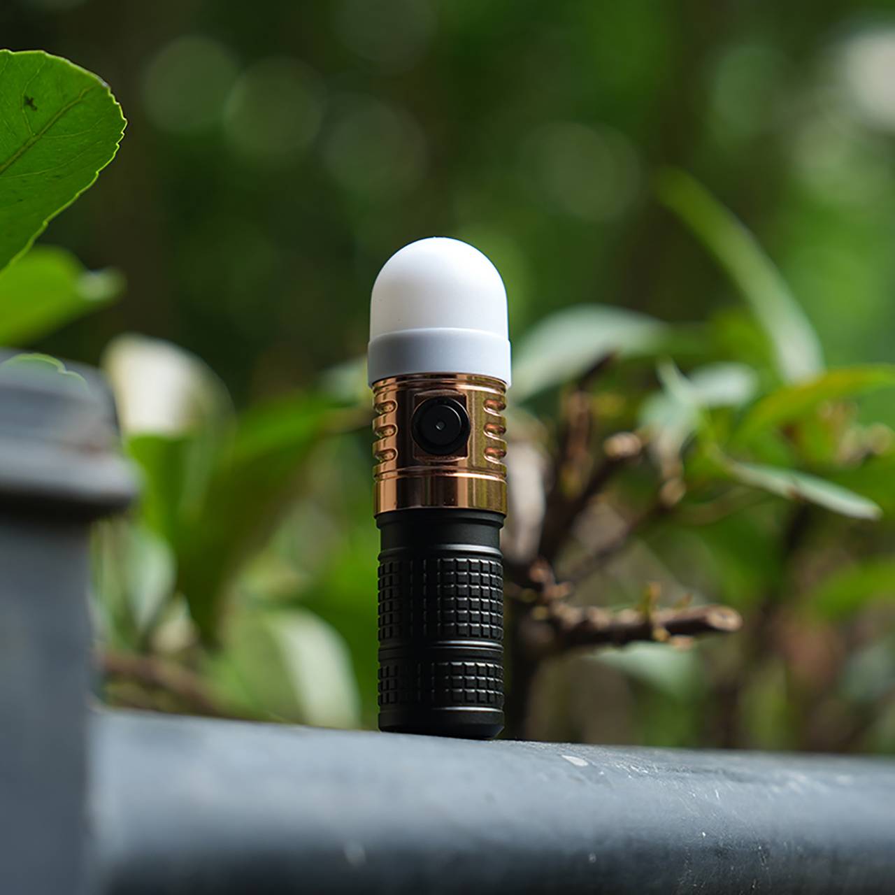 该手电筒延续了 Manker MC13 型号的特色专利功能,在18350电池耗电时,可以拧开尾部延长桶身装入18650电池,默认赠送一节支持USB-C充电的110毫安时18350锂离子电池,并且支持漏电保护,约3个小时即可充满电。不仅如此,预定用户还可以额外获得柔光罩。产品不含电池情况下仅有69克的重量十分轻盈,筒身默认长8.2厘米,延长后长11厘米,轻松一手掌握,更可方便地装入口袋之中。不过,并没有配备背夹,可以通过赠送的挂绳进行快速从口袋拿取,或者套在手上防止在使用时脱手。