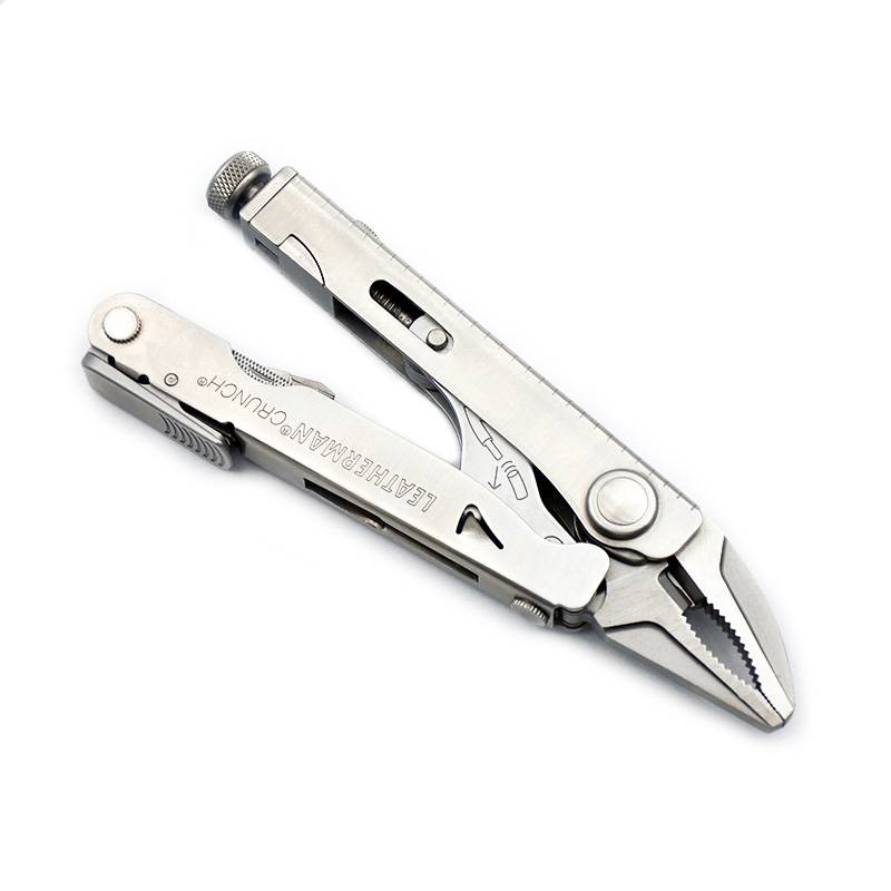 CRUNCH是Leatherman公司的一款多功能工具,是一款轻便、紧凑、实用的工具,备受使用者的好评。CRUNCH的特别之处在于它采用了一种名为“锁紧扣”的创新设计,可以锁定钳口,提供更加稳定和安全的操作体验。此外,CRUNCH还配备了多种实用工具,包括钳子、切割刀片、锯、开瓶器、螺丝刀等,适用于各种不同的应用场景。