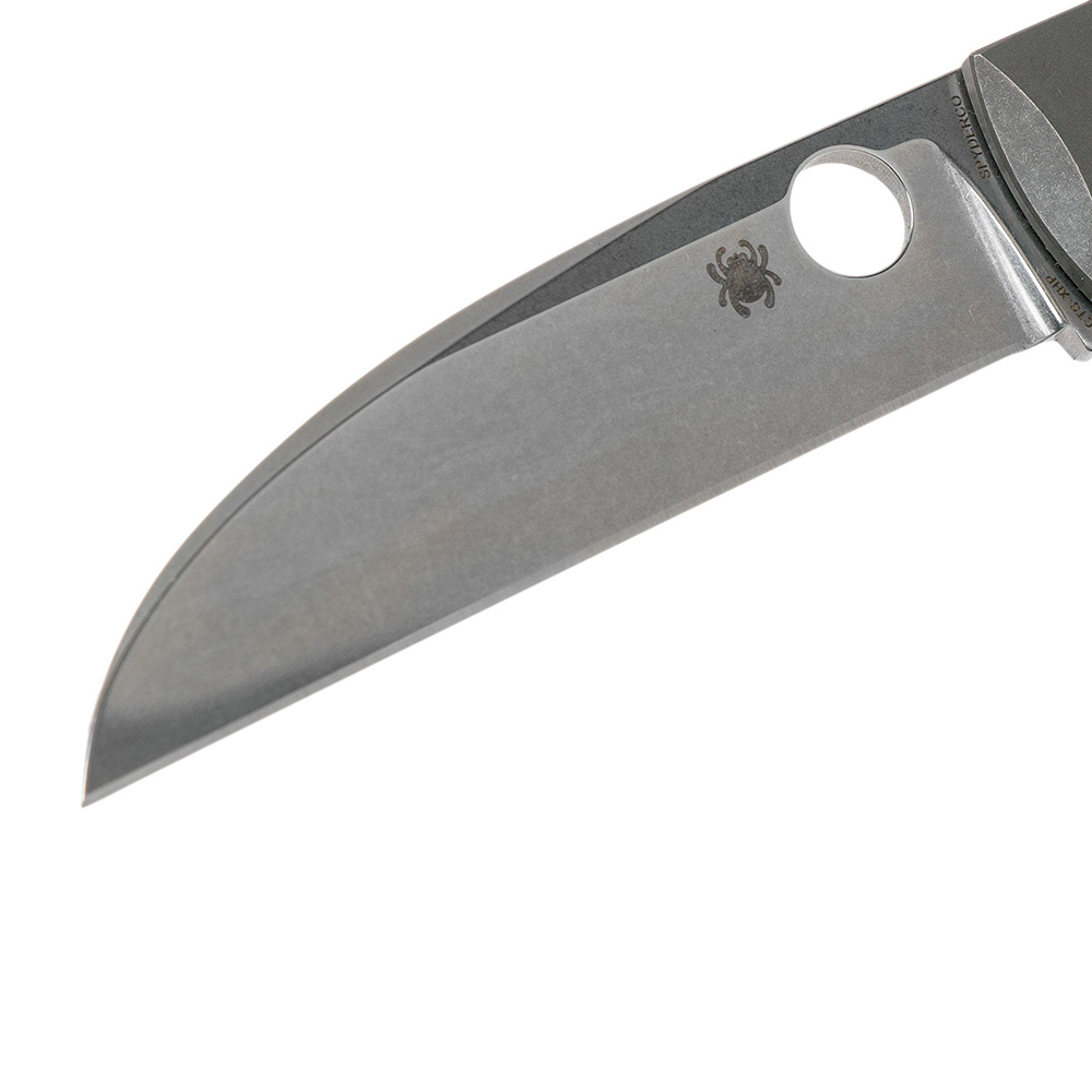 刀片:该折刀采用了CTS-XHP不锈钢材质,刀片经过石洗处理,呈现出耐用且防锈的外观。刀片采用Wharncliffe刀刃形状,具有平直的切割边缘和尖锐的尖端,适用于各种细致的切割任务。