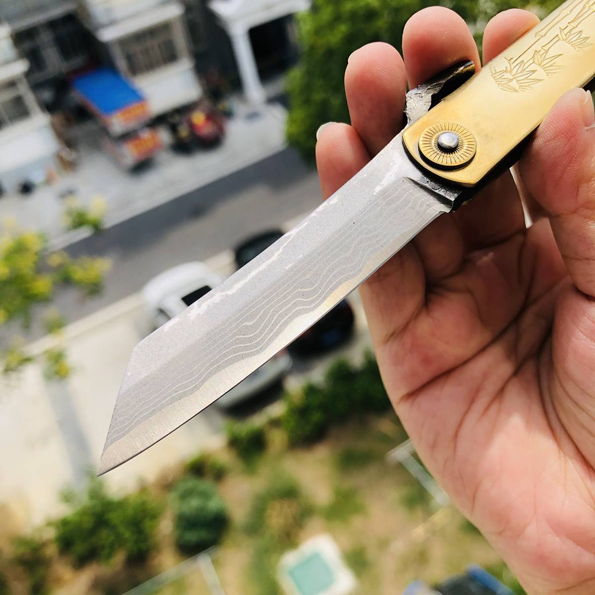 材质:手工锻造大马士革钢