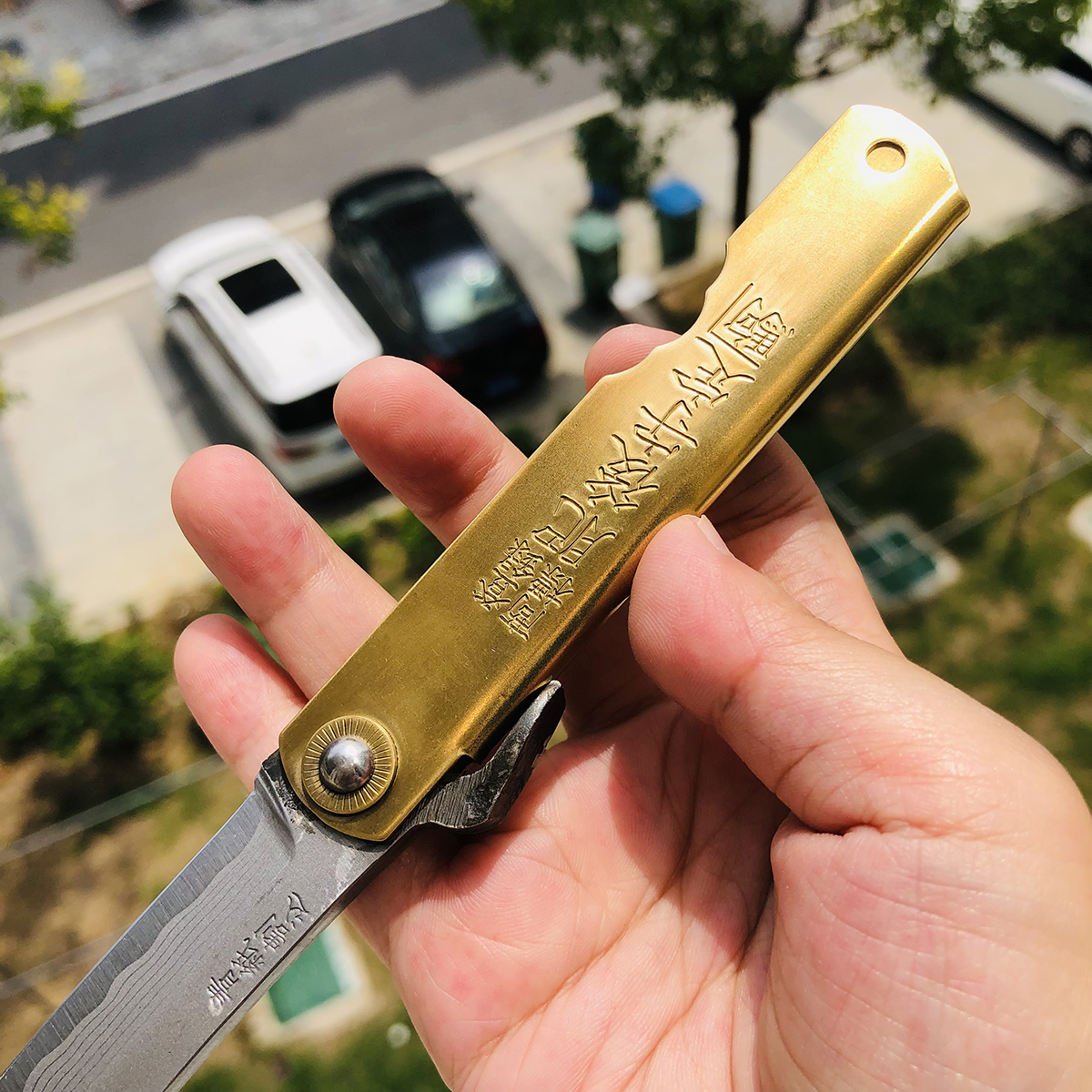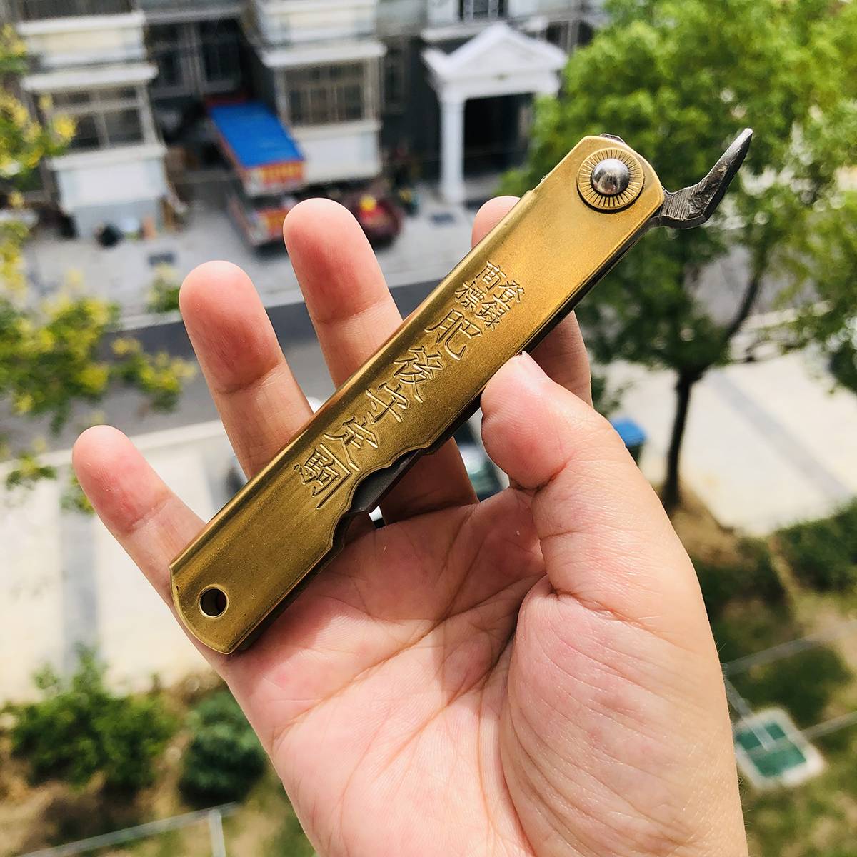 如果您喜欢的是精致、无暇的刀具,在选购肥后守之前请谨慎考虑,它可能不会符合您的需求。 最后,由于肥后守的结构不似西洋刀具拥有锁定装置,而它的转轴也会随着使用时间而逐渐变松(可藉由槌打转轴再次让它变紧),这是肥后守的特色,若无法接受则请勿选购。 若刀鞘为黄铜材质,会随着时间氧化。可使用铜油让刀鞘恢复光亮,或是让刀鞘有种氧化后的使用感也不错。