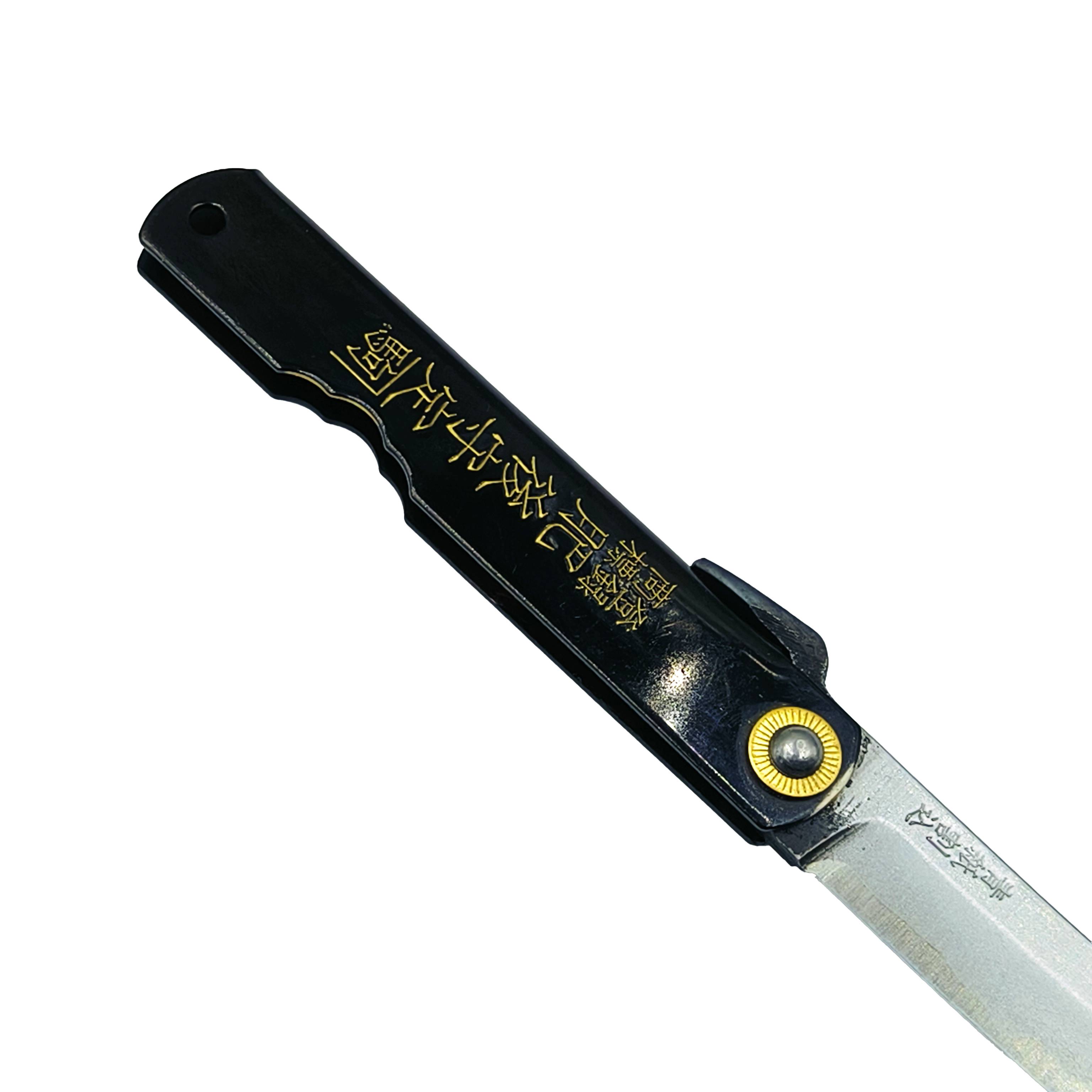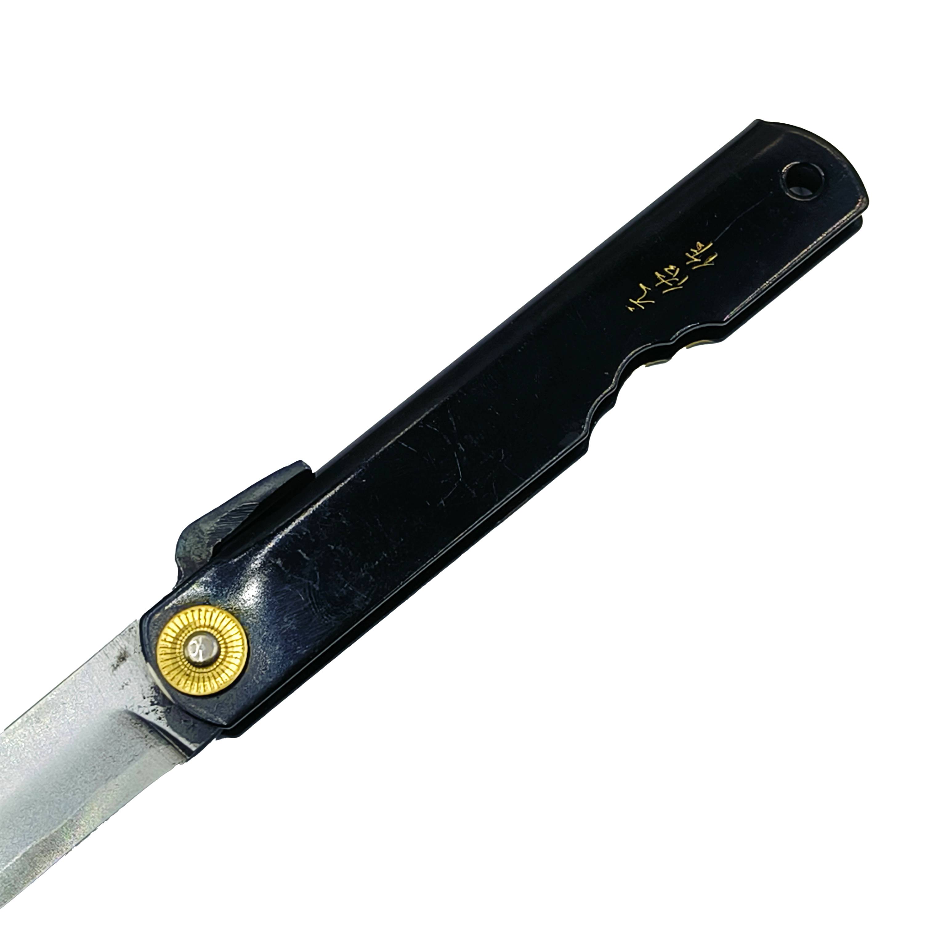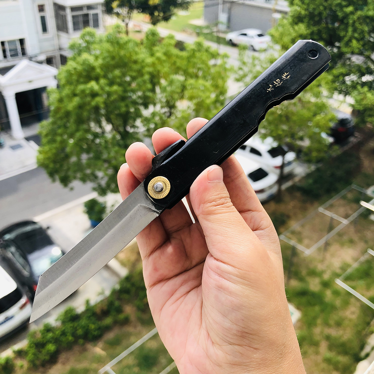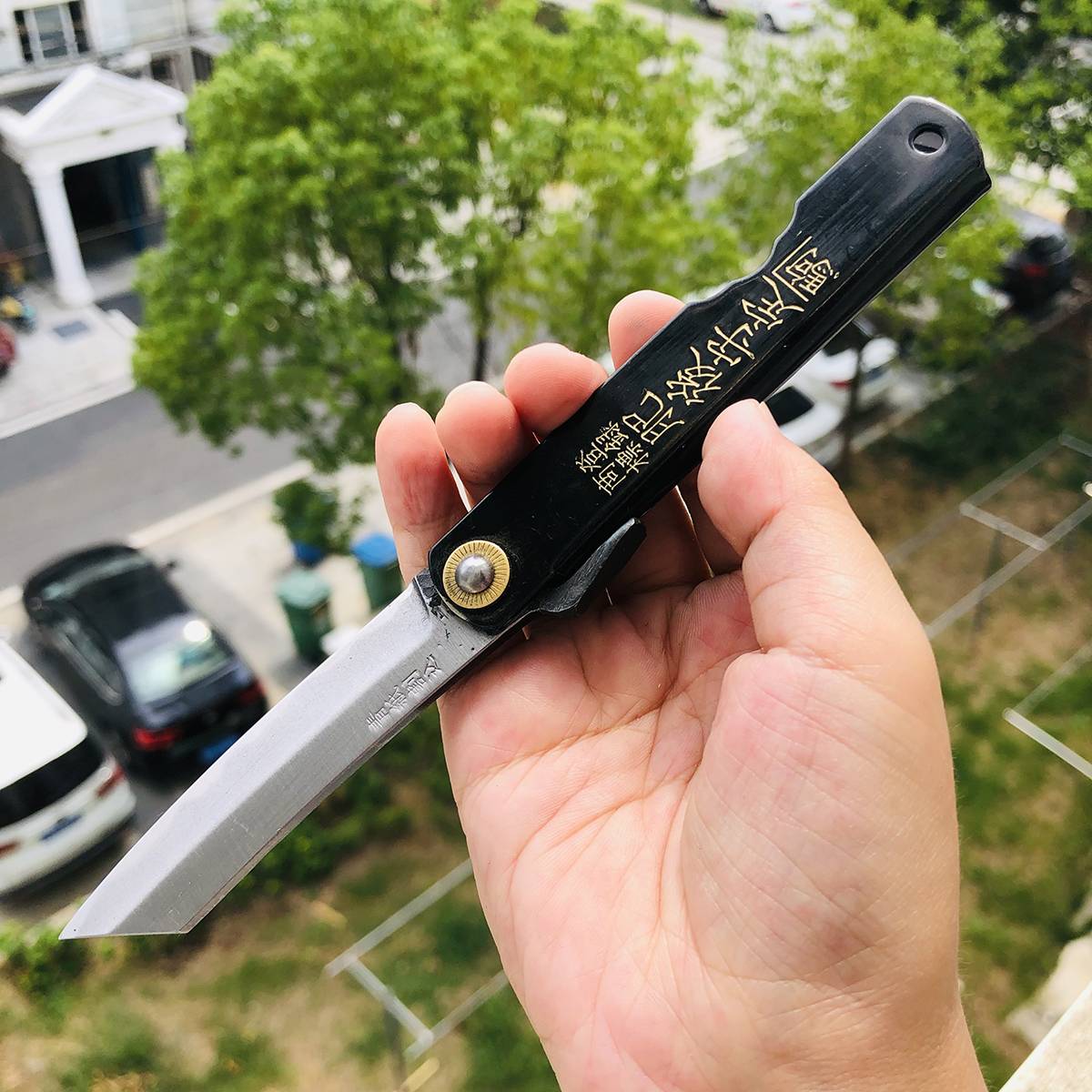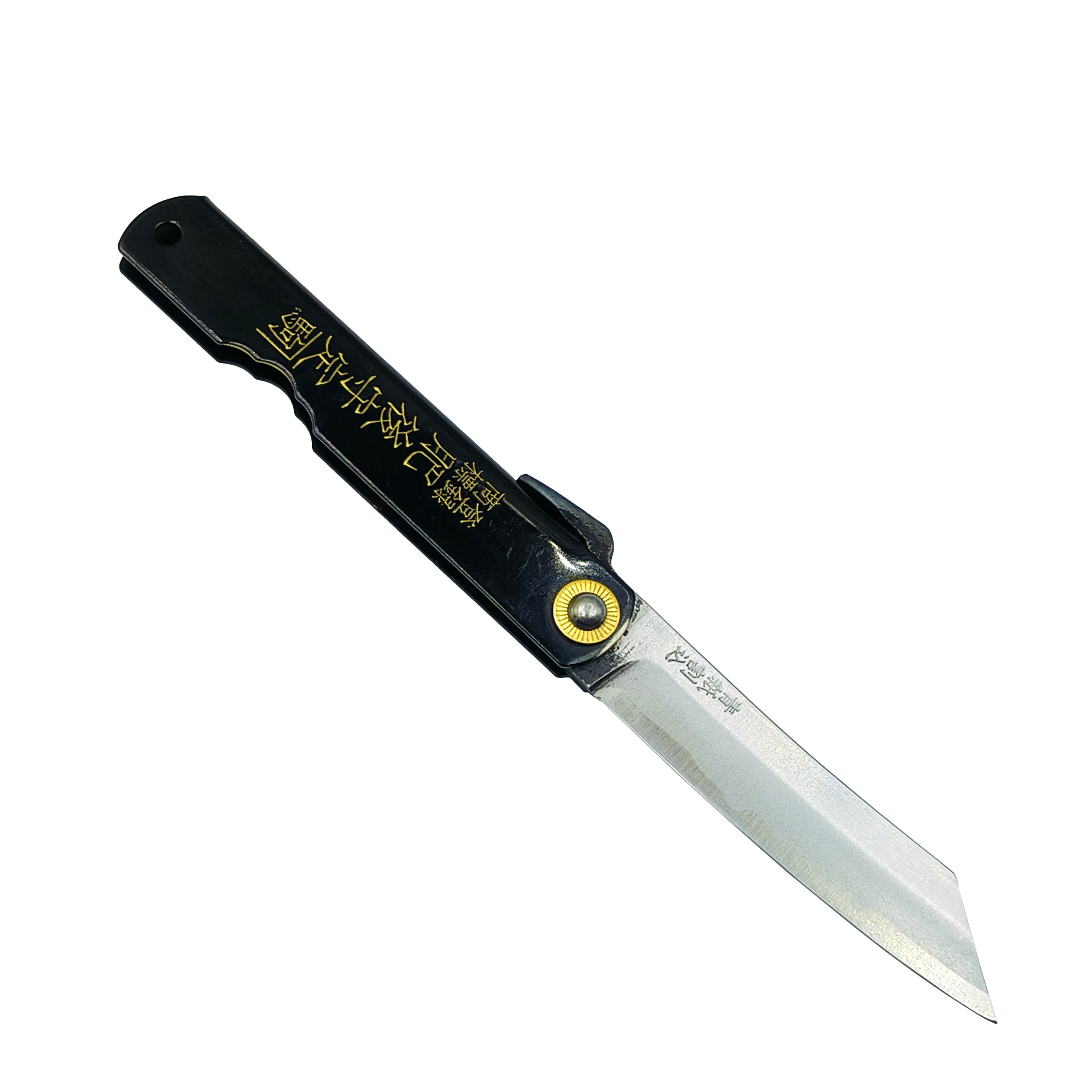 大尺寸青纸夹层肥后守:折合时长度约10公分(不含突出部分),展开时约17公分,刀刃约7.5公分。
