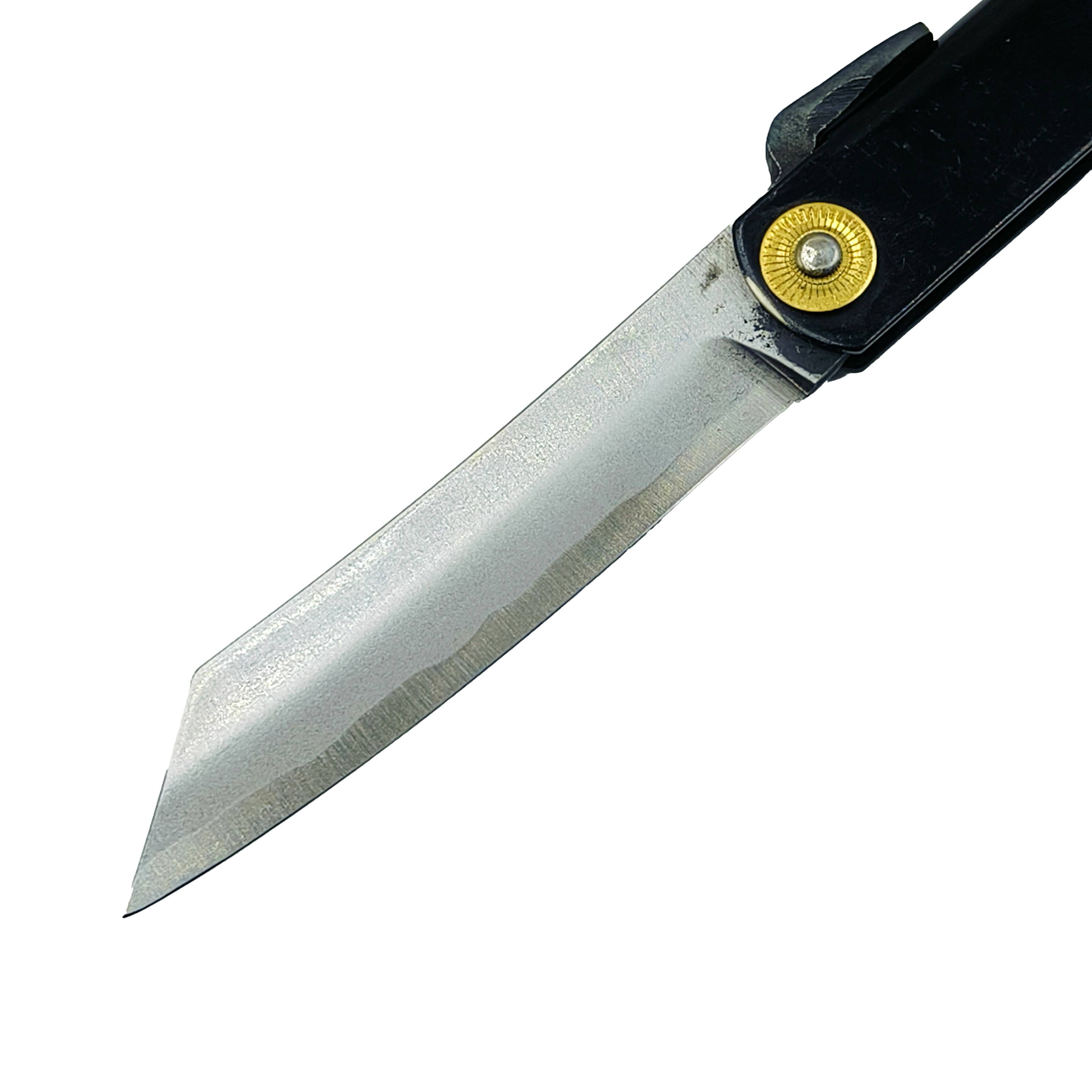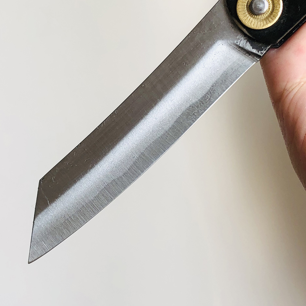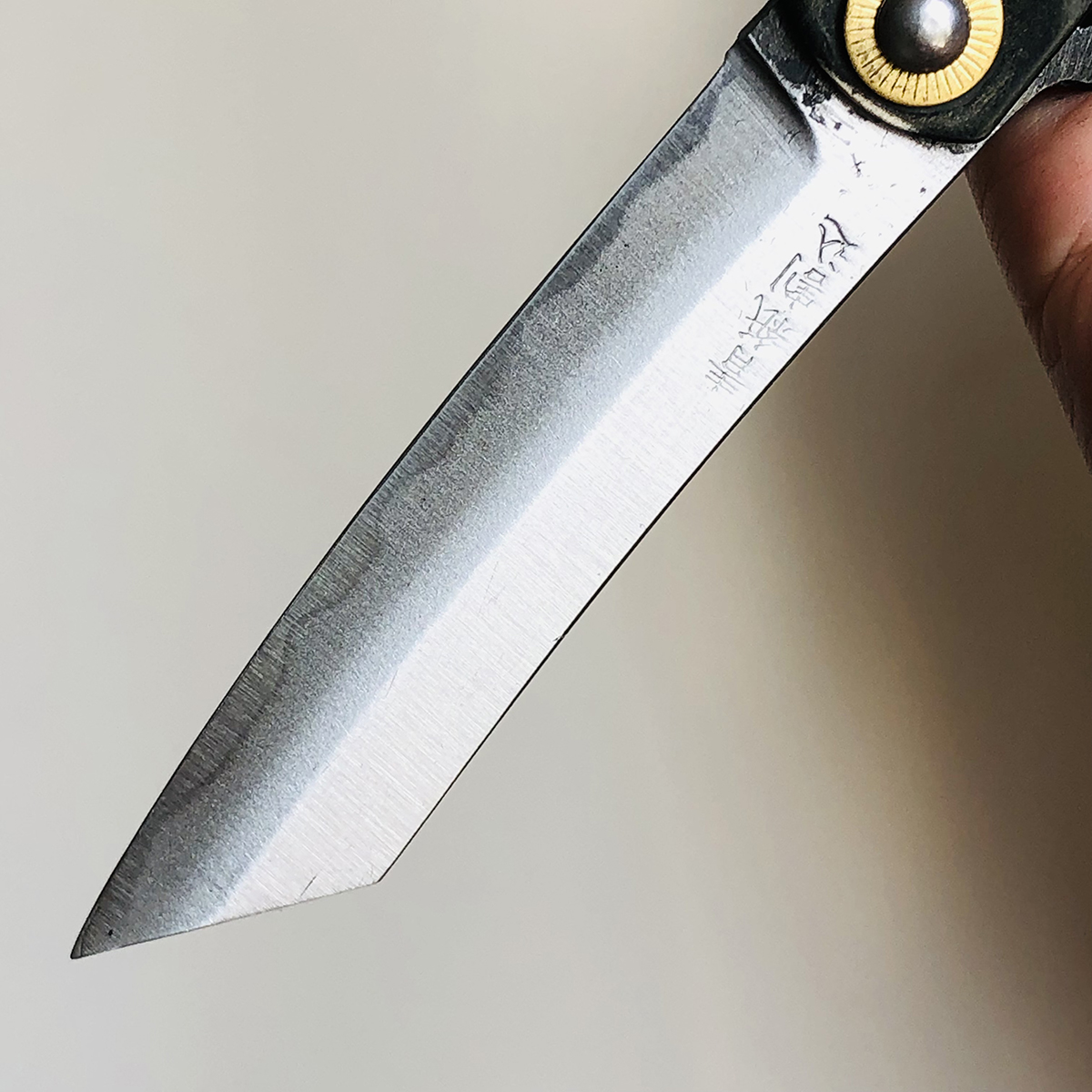 如果您喜欢的是精致、无暇的刀具,在选购肥后守之前请谨慎考虑,它可能不会符合您的需求。 最后,由于肥后守的结构不似西洋刀具拥有锁定装置,而它的转轴也会随着使用时间而逐渐变松(可藉由槌打转轴再次让它变紧),这是肥后守的特色,若无法接受则请勿选购。 若刀鞘为黄铜材质,会随着时间氧化。可使用铜油让刀鞘恢复光亮,或是让刀鞘有种氧化后的使用感也不错。