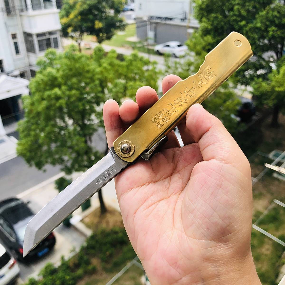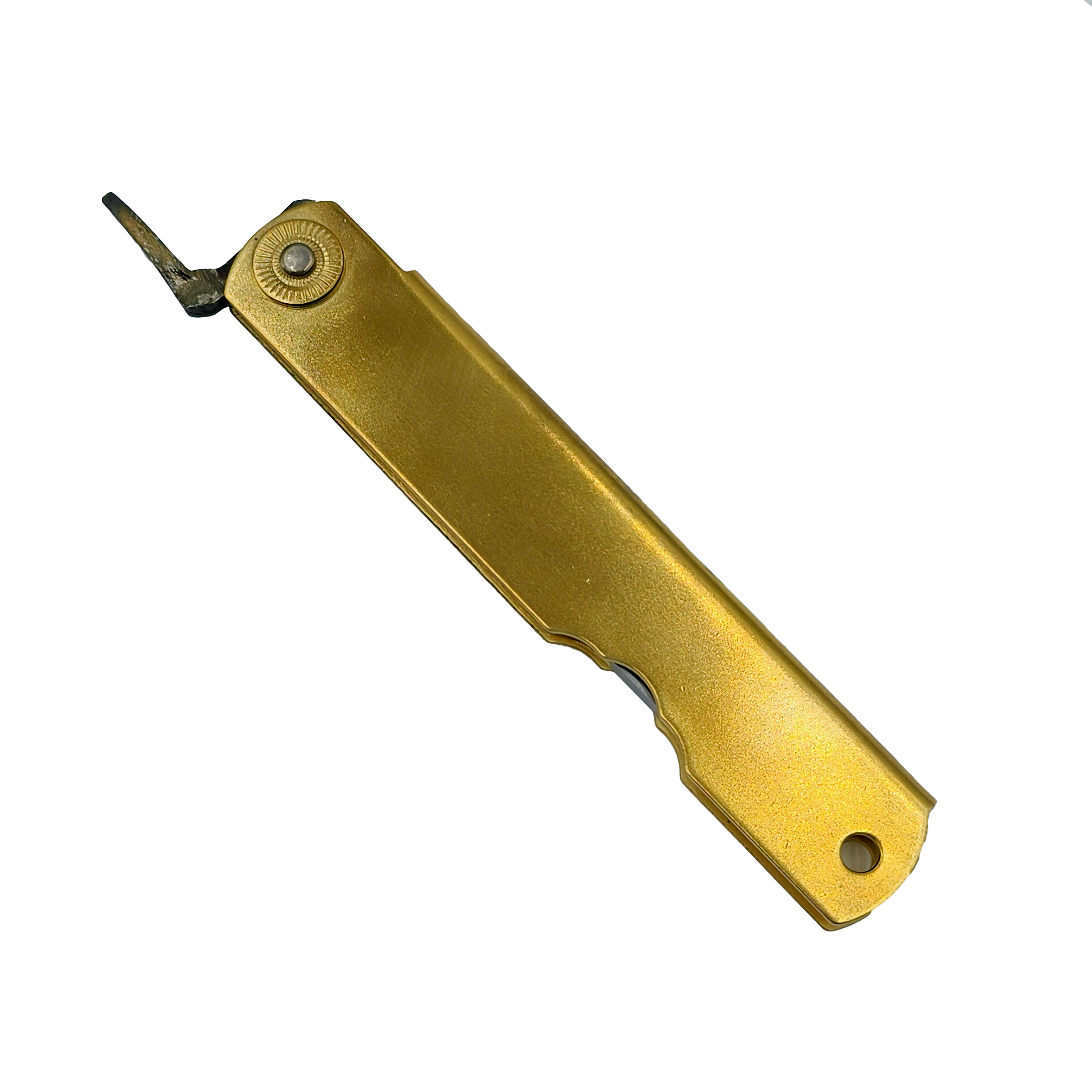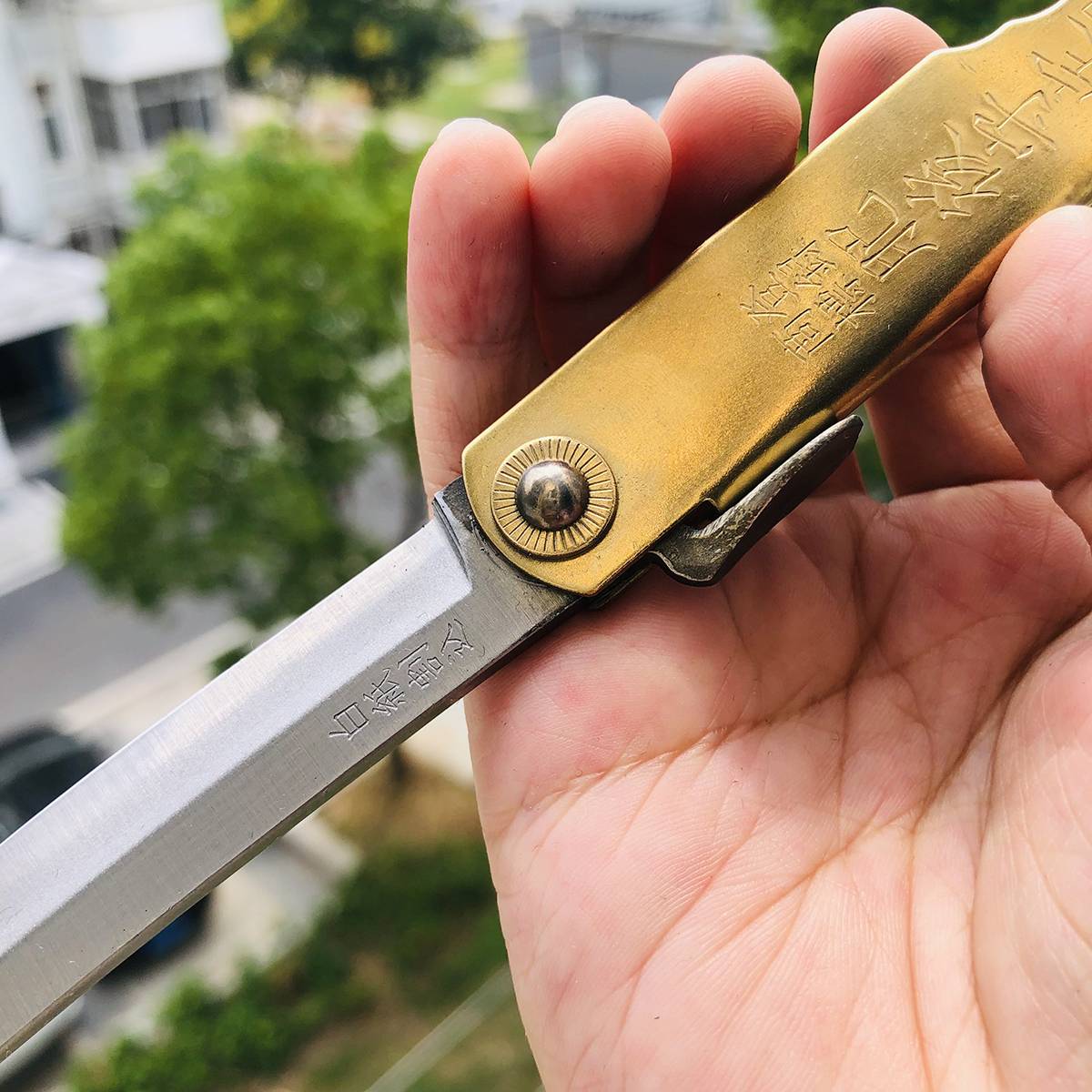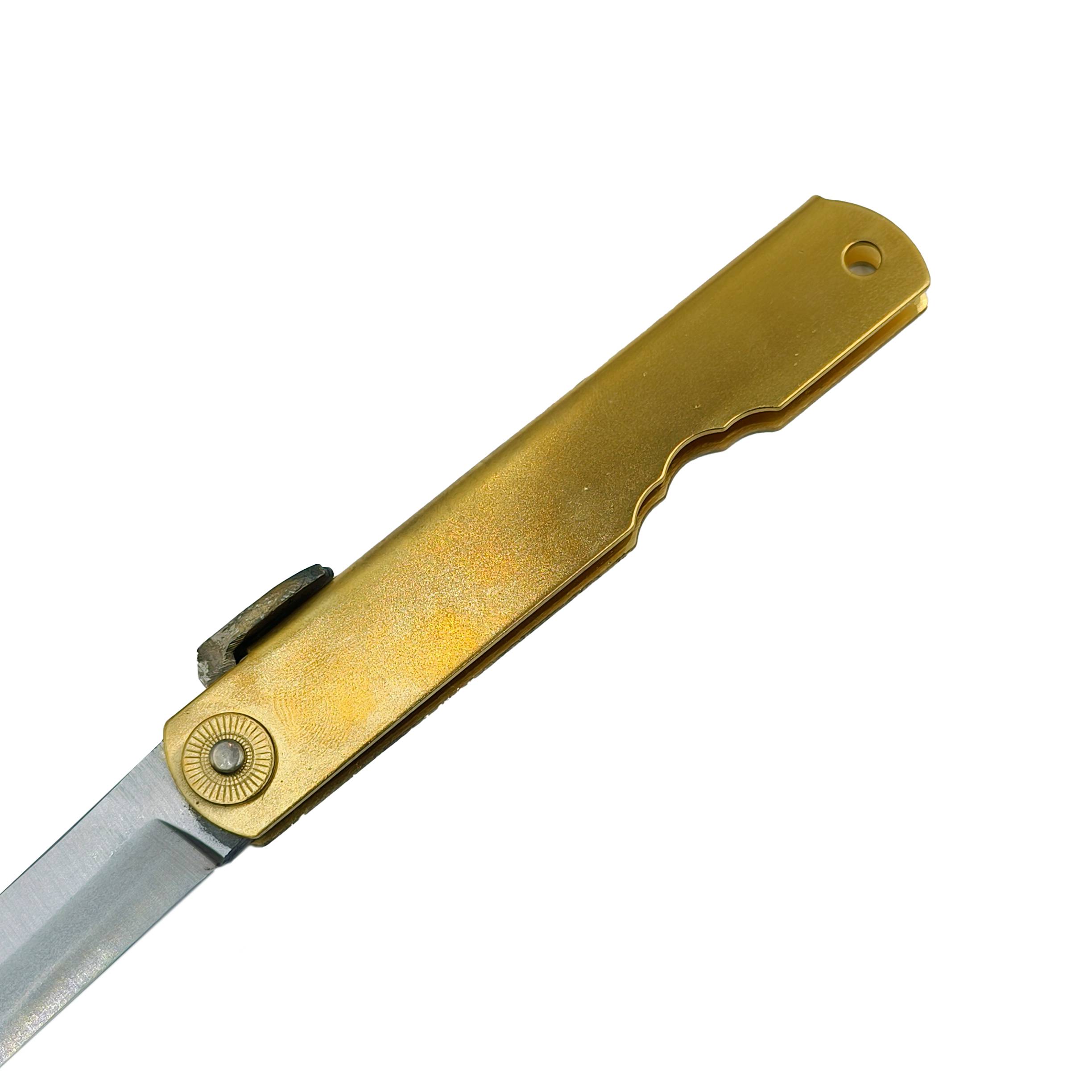 如果您喜欢的是精致、无暇的刀具,在选购肥后守之前请谨慎考虑,它可能不会符合您的需求。 最后,由于肥后守的结构不似西洋刀具拥有锁定装置,而它的转轴也会随着使用时间而逐渐变松(可藉由槌打转轴再次让它变紧),这是肥后守的特色,若无法接受则请勿选购。 若刀鞘为黄铜材质,会随着时间氧化。可使用铜油让刀鞘恢复光亮,或是让刀鞘有种氧化后的使用感也不错。