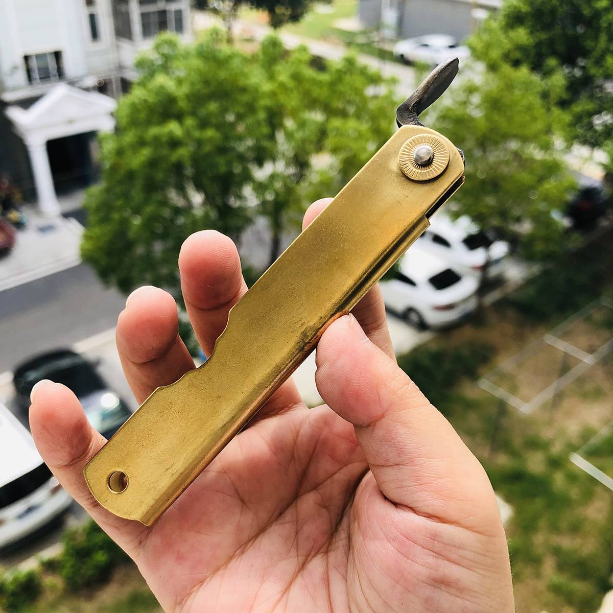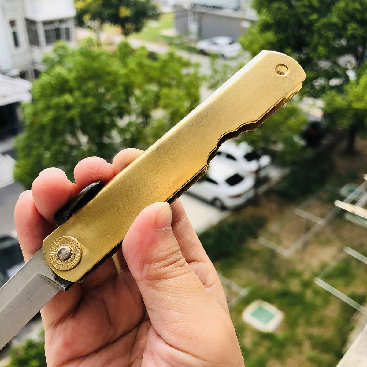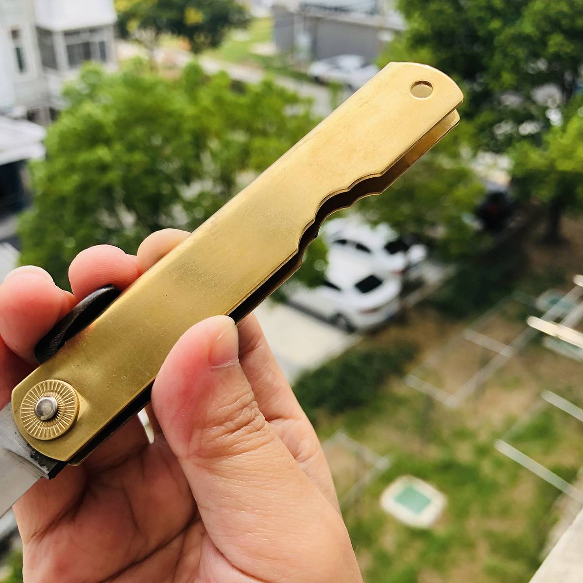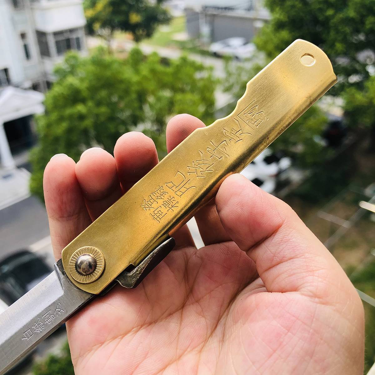 如果您喜欢的是精致、无暇的刀具,在选购肥后守之前请谨慎考虑,它可能不会符合您的需求。 最后,由于肥后守的结构不似西洋刀具拥有锁定装置,而它的转轴也会随着使用时间而逐渐变松(可藉由槌打转轴再次让它变紧),这是肥后守的特色,若无法接受则请勿选购。 若刀鞘为黄铜材质,会随着时间氧化。可使用铜油让刀鞘恢复光亮,或是让刀鞘有种氧化后的使用感也不错。