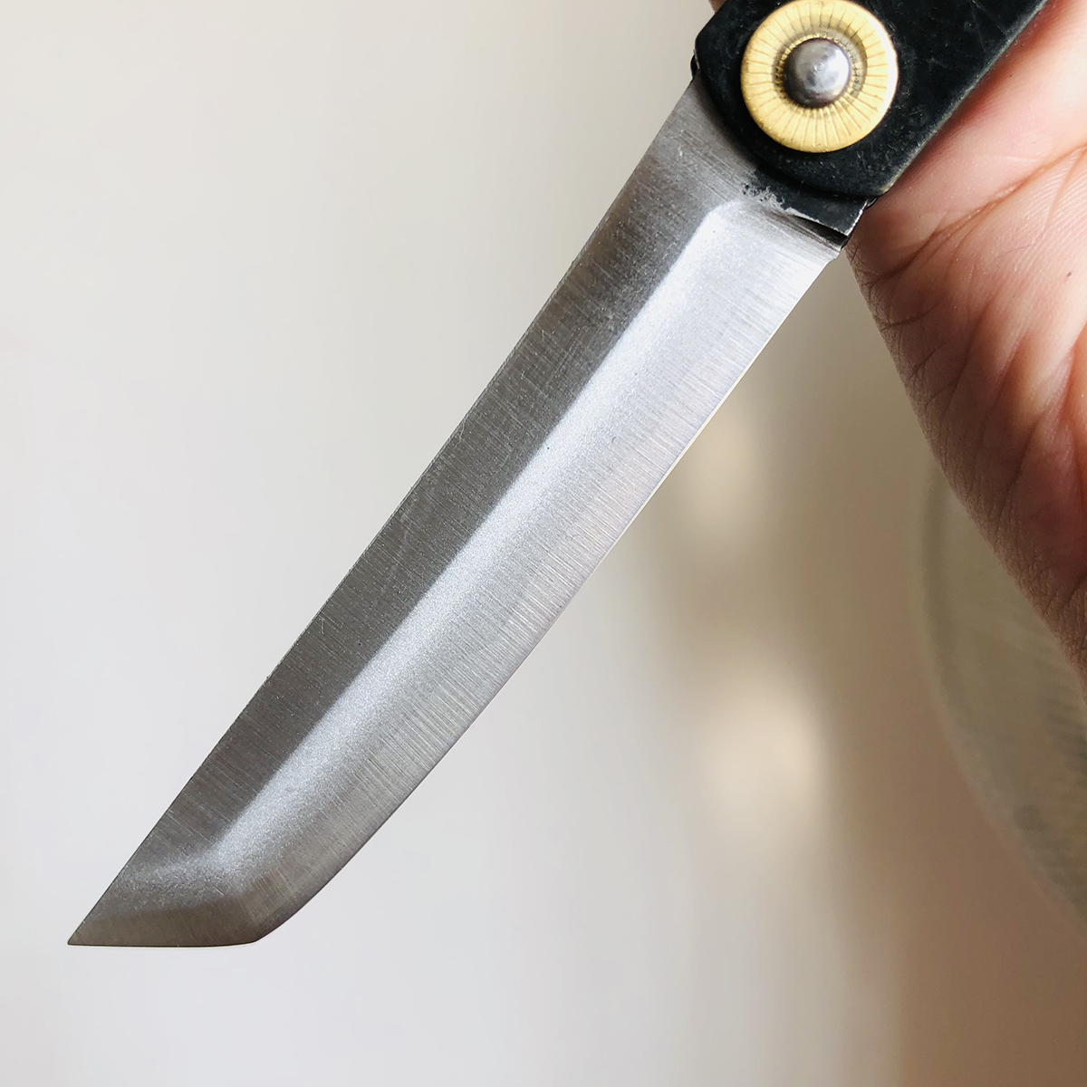 由于肥后守为纯手工制作,打磨以及磨具冲压误差,制作后的尺寸会存在一些误差,数据并非一致。请熟知。 材质:手工锻造白钢 全长:17CM 手柄长:10CM 刃长:7CM 刃厚:约3.2MM 肥后守根据锻造方式与钢...
