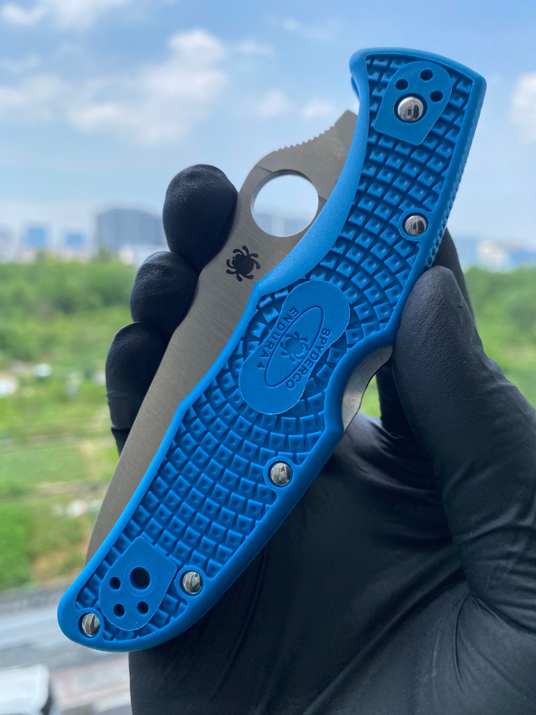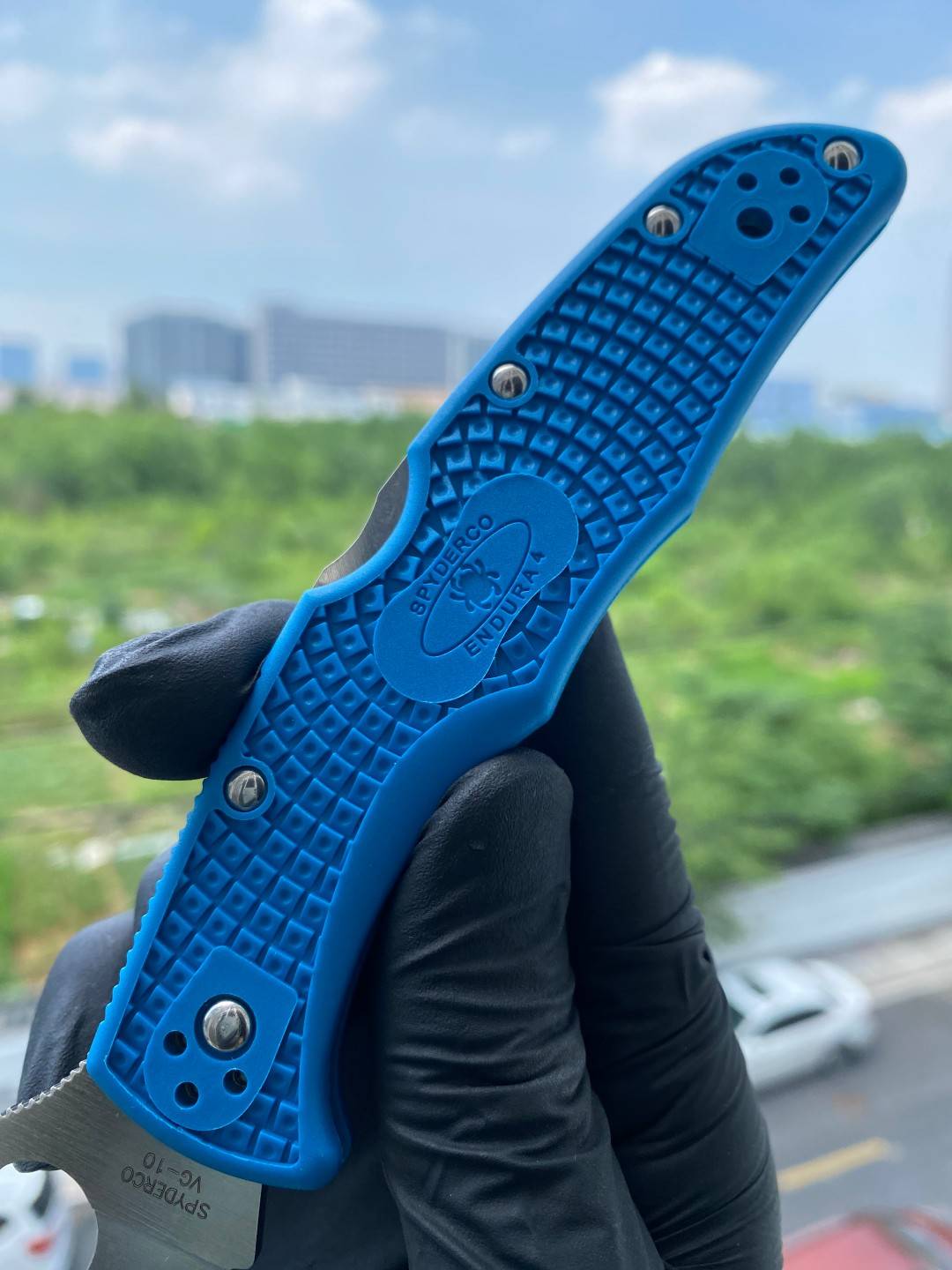 Spyderco C10FPBL Endura的手柄采用灰色FRN(玻璃纤维增强尼龙)材质制造,具有出色的耐用性和轻量化特性。手柄表面采用纹理处理,提供良好的握持和防滑性能,即使在潮湿或湿滑的条件下也能稳定地使用。
