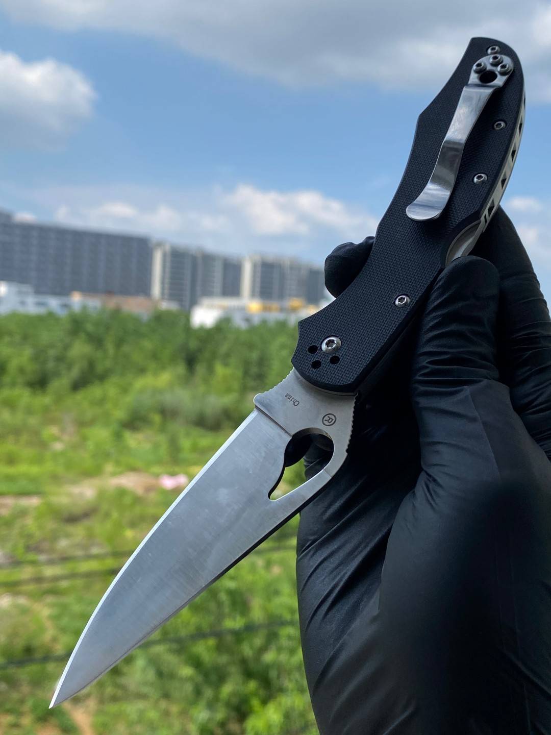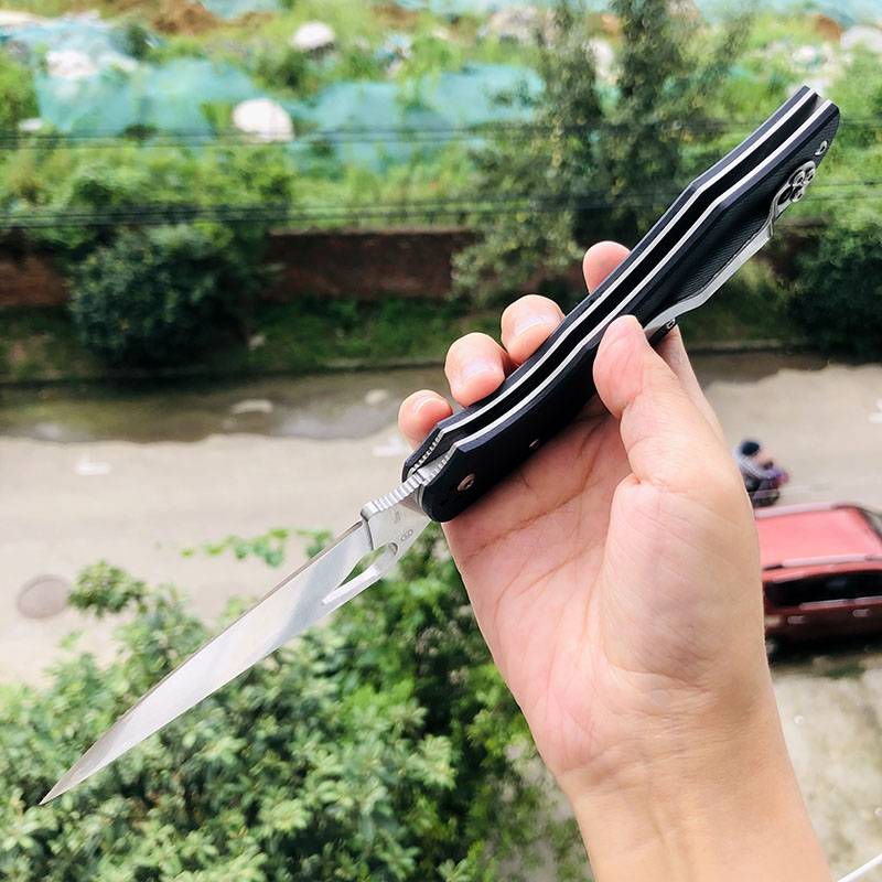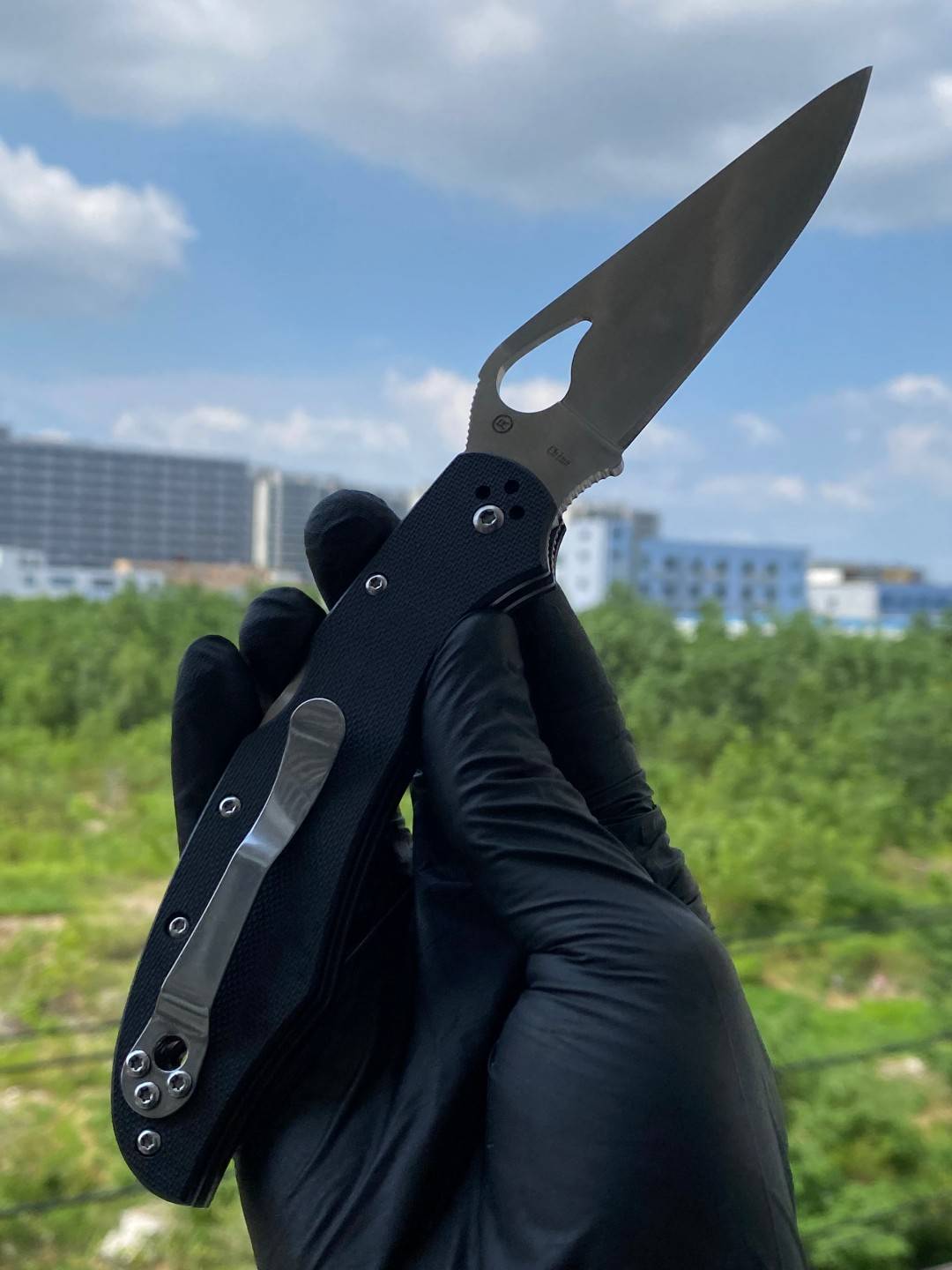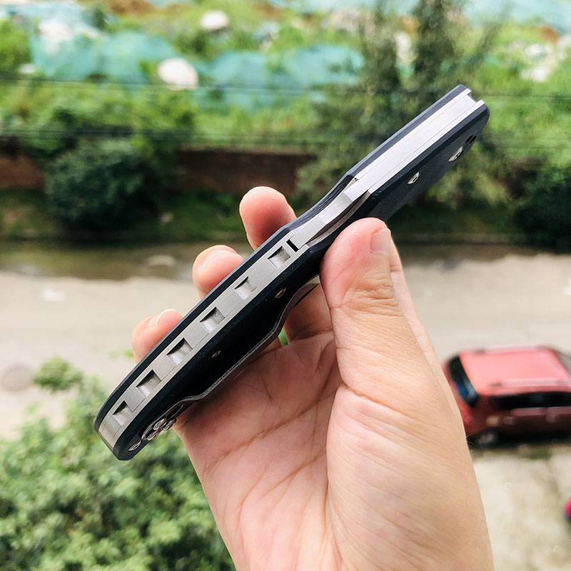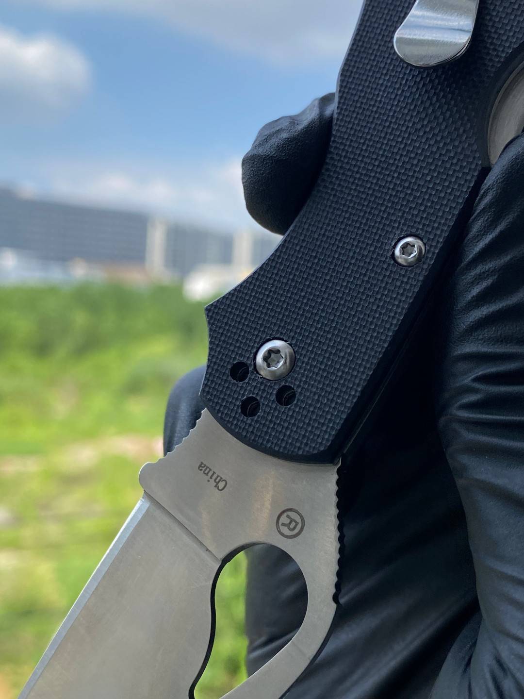 折刀的手柄采用坚固的G10材质制造,具有出色的耐用性和抗磨损性能。G10手柄表面经过纹理处理,提供良好的握持和防滑性能,即使在潮湿或湿滑的条件下也能稳定地使用。