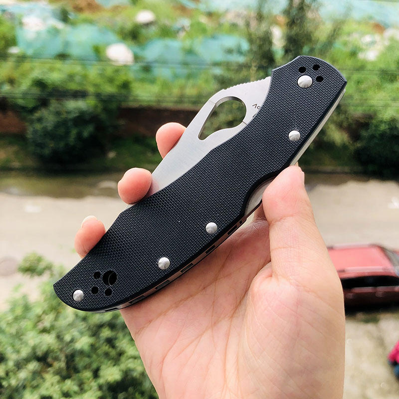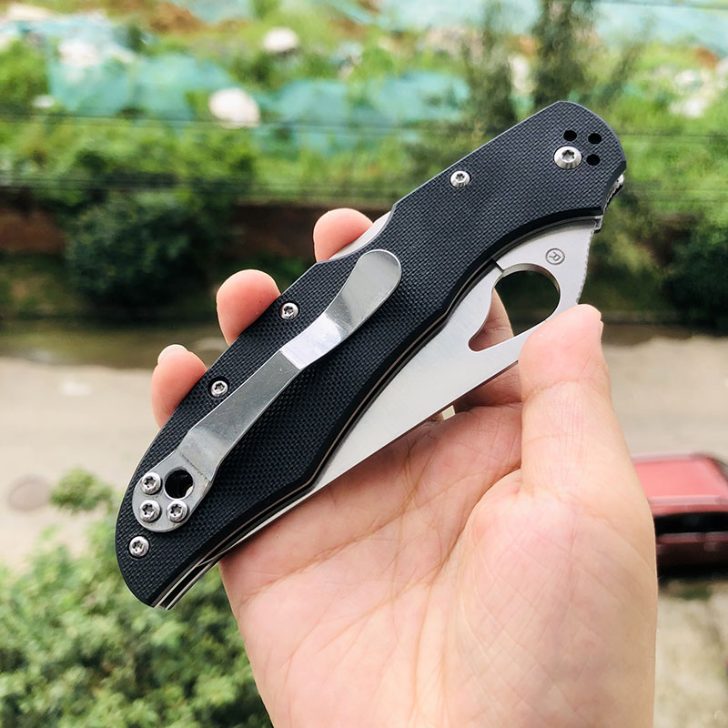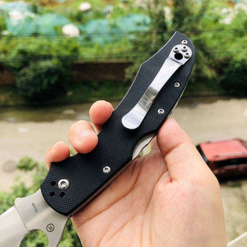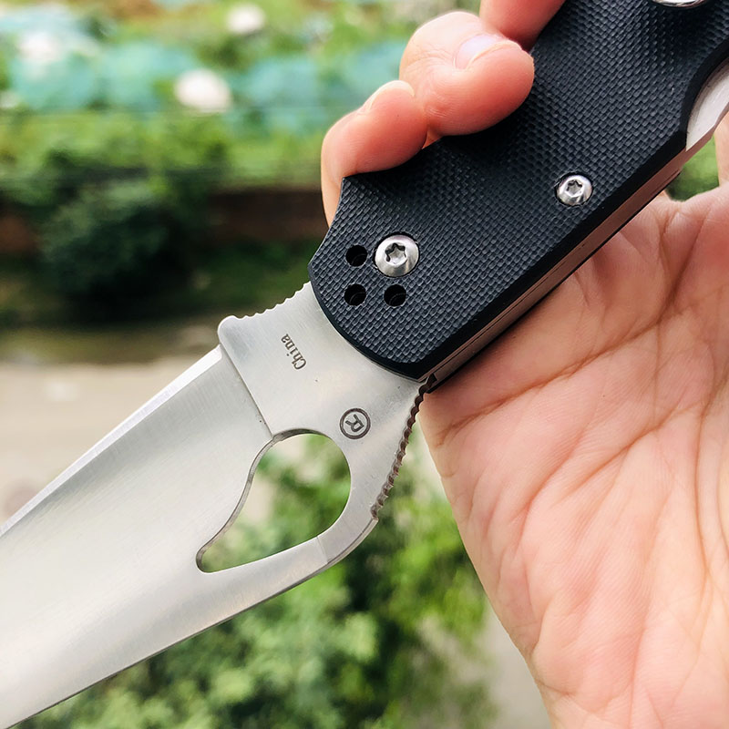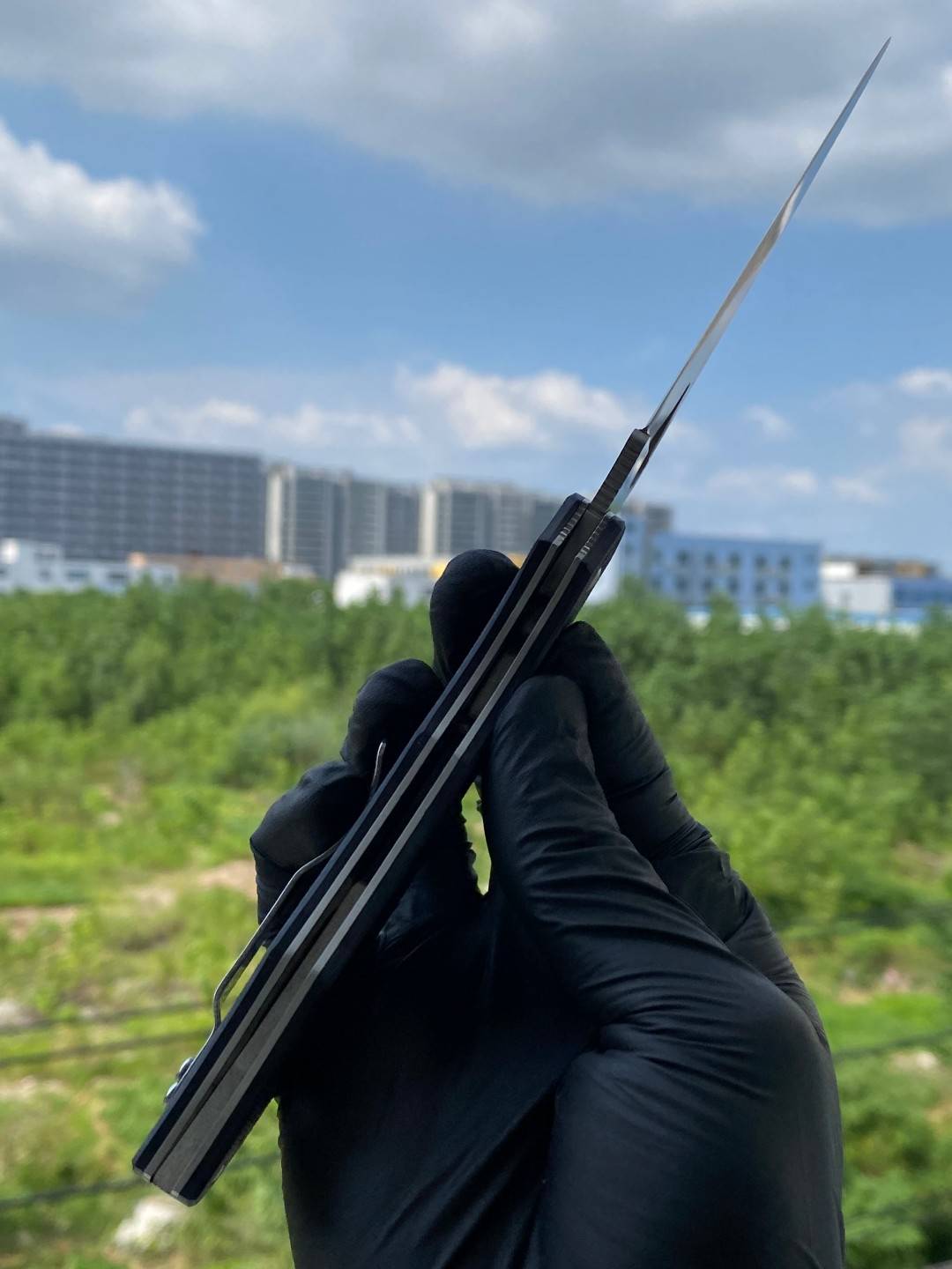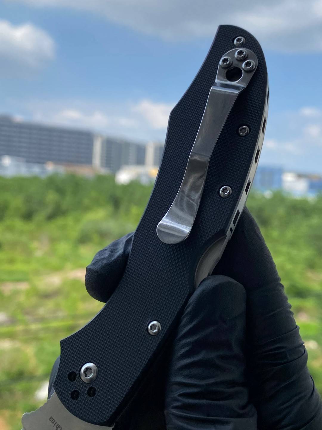 折刀的手柄采用坚固的G10材质制造,具有出色的耐用性和抗磨损性能。G10手柄表面经过纹理处理,提供良好的握持和防滑性能,即使在潮湿或湿滑的条件下也能稳定地使用。