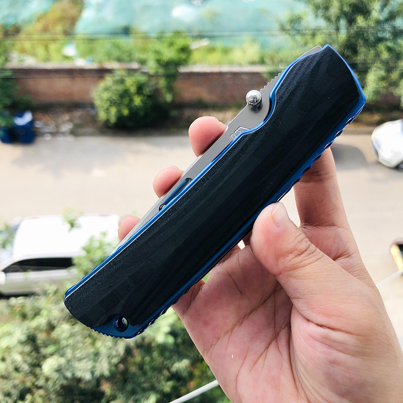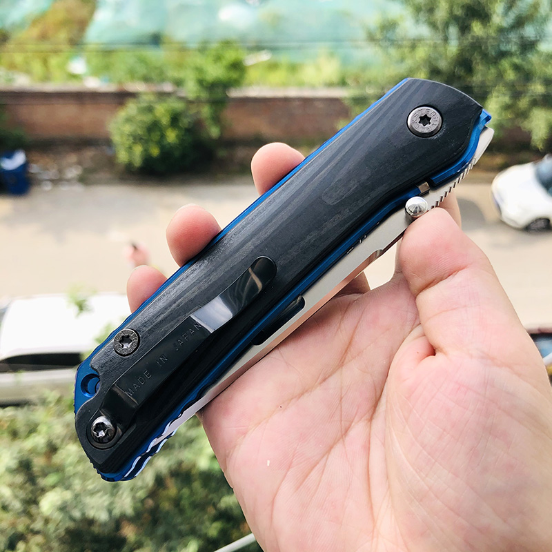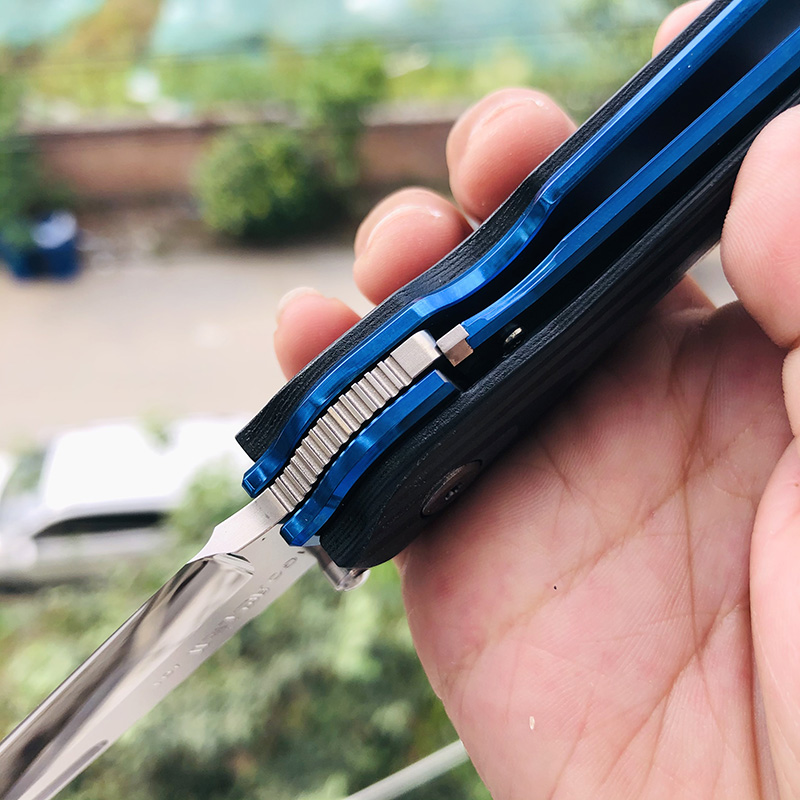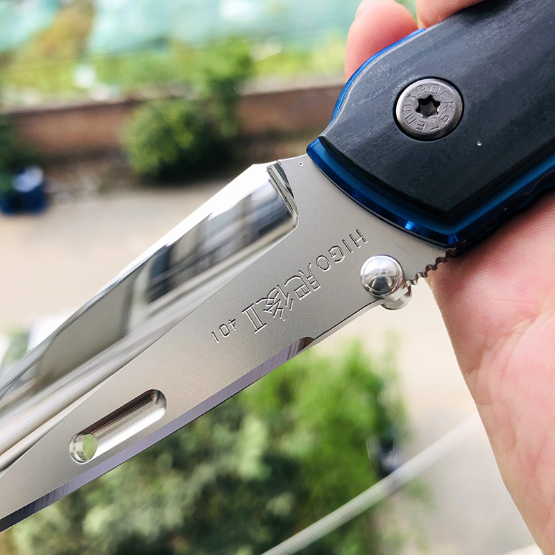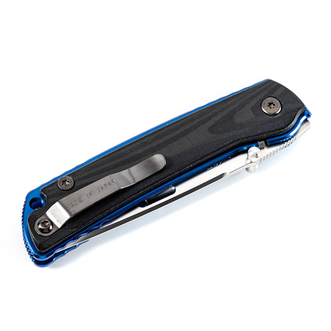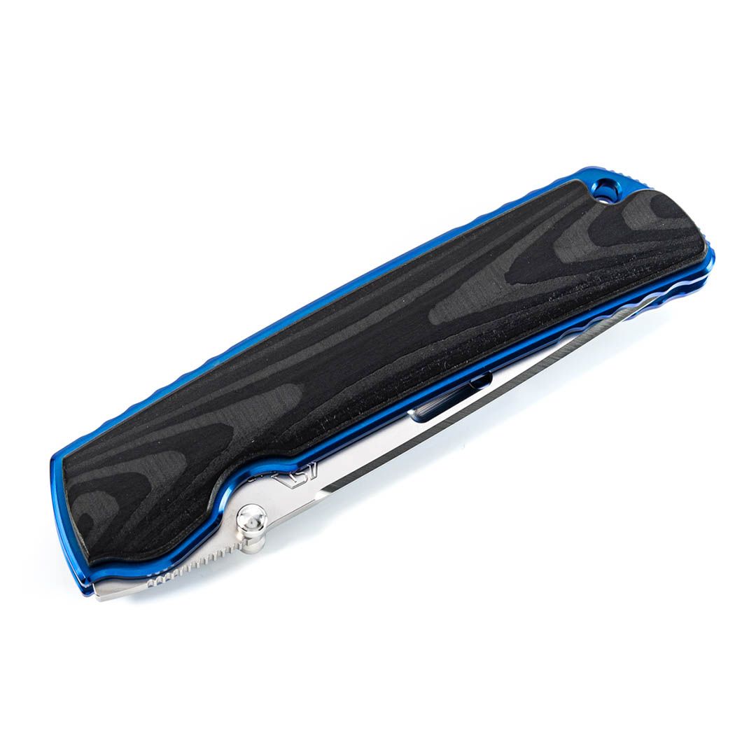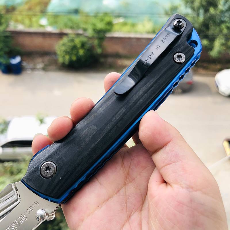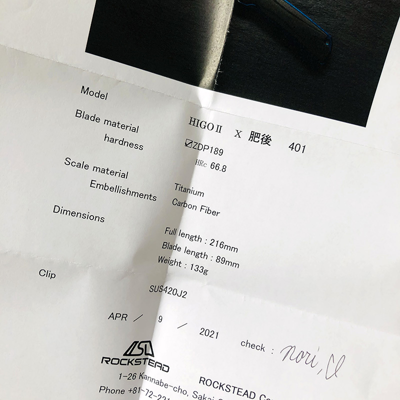 HIGOⅡ X-CF-ZDP(蓝色) 全长 216毫米 总重量 138克 刀片长度 89毫米 刀片材质 ZDP189 刀片厚度 3.2毫米 刀片硬度 约 67 HRc 手柄材质 钛合金+碳纤维