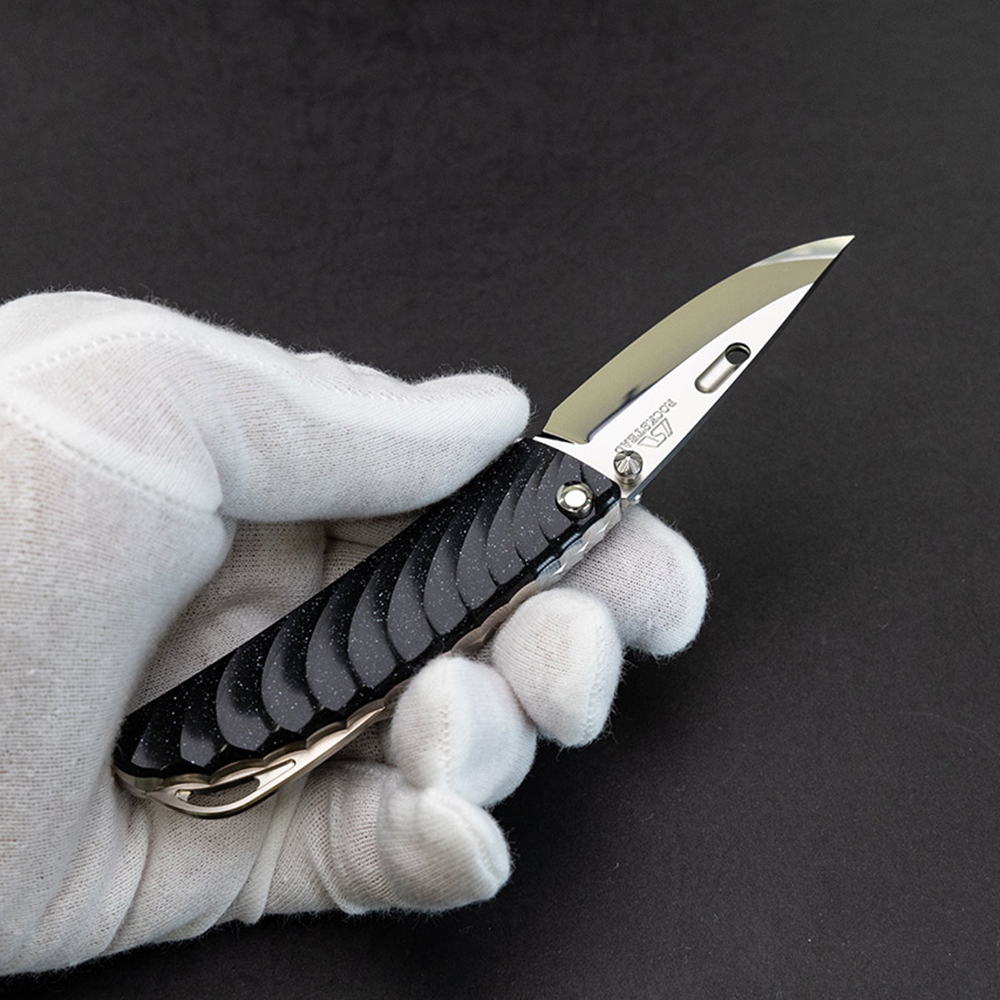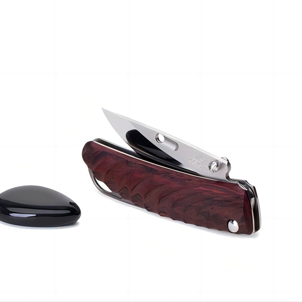 然而,这些外在的设计特征绝不是唯一体现对细节的热爱和追求完美的元素。涅槃NEHAN的真正创新隐藏在其中,由手柄的两半部分连接在一起的方式组成。这种结构由 ROCKSTEAD 开发,意味着不需要外部可见的螺钉,因为这些螺钉完全包含在手柄内。因此任何东西都不会影响和谐性刀鞘的设计也很新颖,虽然第一版的涅槃NEHAN仍然带有皮带环,但新版却有一个实用的皮带夹。“NEHAN”被设计成一把绅士刀,专门使用 ZDP189 刀片钢制造。独特的 ROCKSTEAD 镜面抛光和 HONZUKURI 刀片几何形状可实现最佳性能,对于该型号来说是理所当然的。