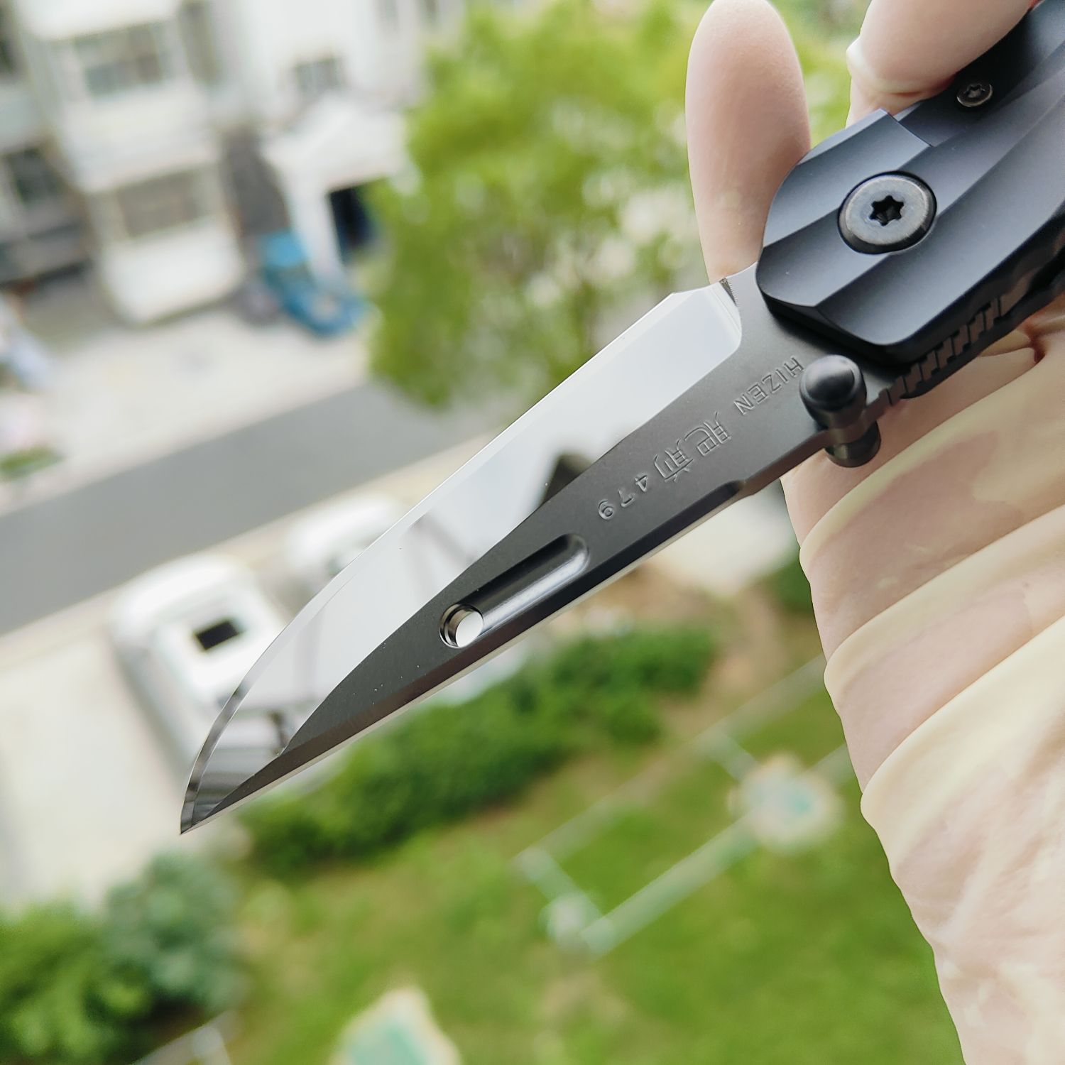 HIZEN-TIN 是我们 HIGO 刀的较小版本。这把刀由于具有钛涂层而非常坚韧。这是一把易于维护的刀,非常易于使用且切割效果良好。手柄由硬铝制成,重量轻且坚固。 这把刀的刀刃角度靠近刀柄处为30度,靠近刀尖处为24度,并有一个连续的、逐渐减小的角度连接它们。这种减小的刀片角度是 Rockstead 不断追求卓越锋利度的产物。 这把刀锋利无比。这是一把耐用的刀,具有强大的切割能力,可以使用很长时间。