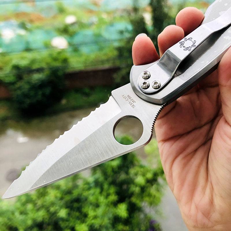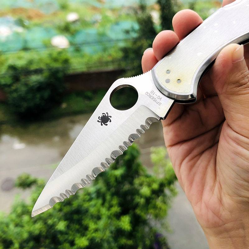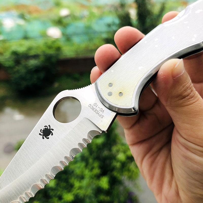 Delica 4 Folding Knife采用VG-10不锈钢,这种高性能钢材提供卓越的切割性能、耐腐蚀性和耐磨性。此款刀具配备了锯齿刃,增加了在特定任务中的多功能性。