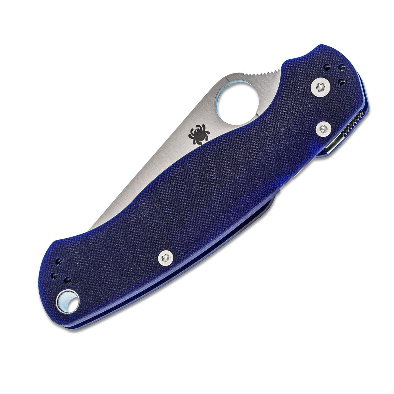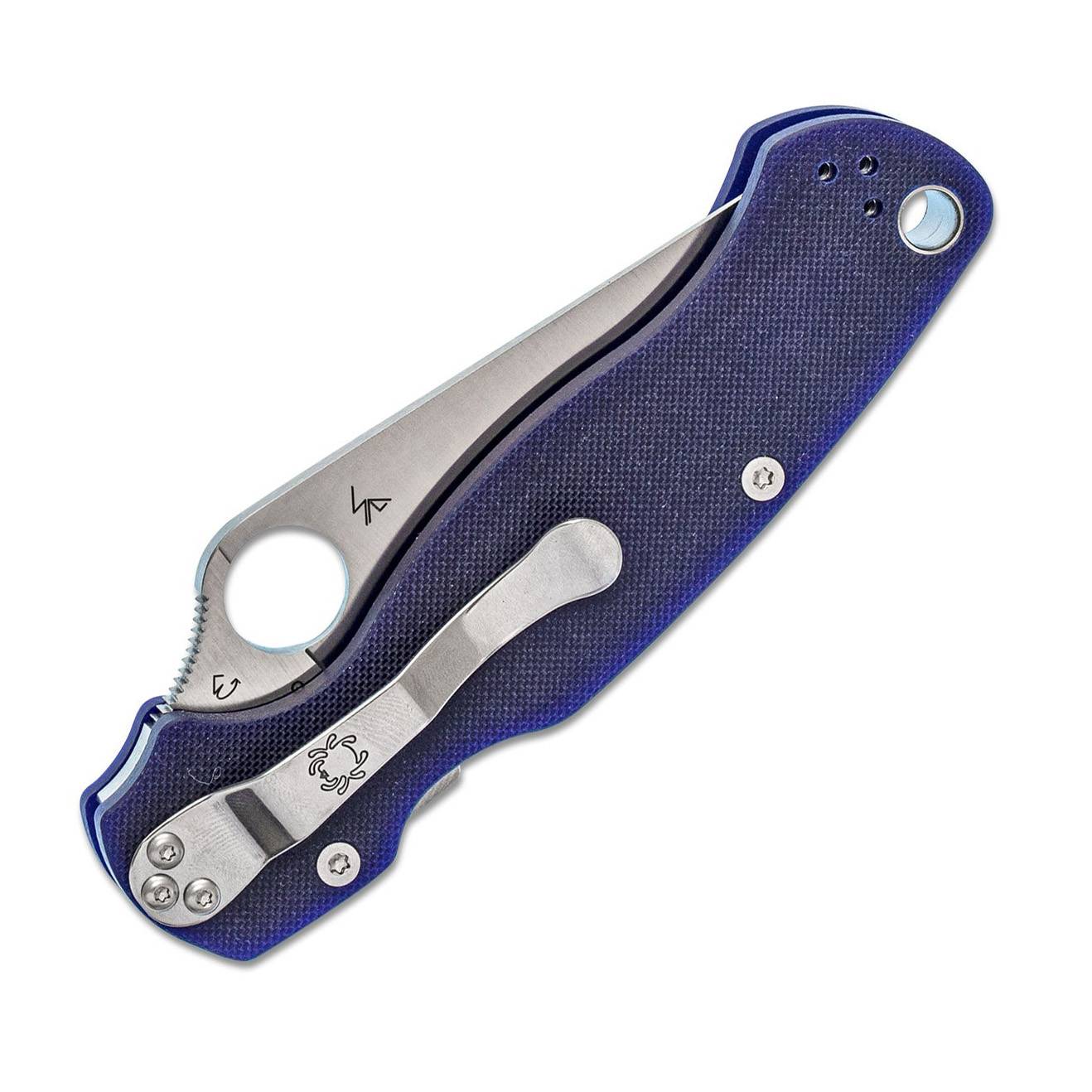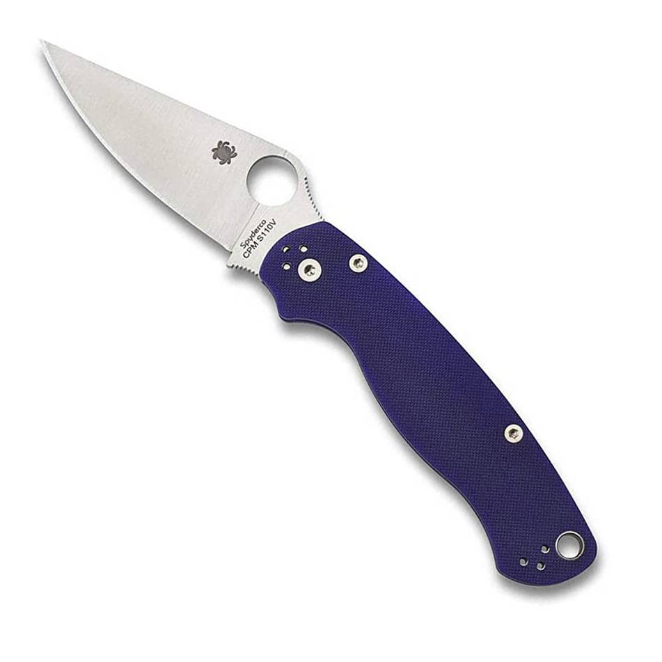 产品描述和数据: Spyderco Paramilitary 2 Folding Knife - CPM-S110V Satin Blade, Blue/Purple "Blurple" G-10 Handles是一款引人注目的折叠刀,适用于多种场合,包括户外活动和日常使用。