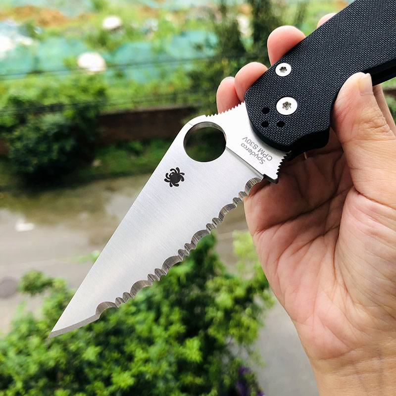 产品描述和数据: Spyderco Paramilitary 2 Folding Knife - CPM-S30V Satin Serrated Blade, Black G-10 Handle是一款多功能的折叠刀,适用于各种户外活动和日常使用。