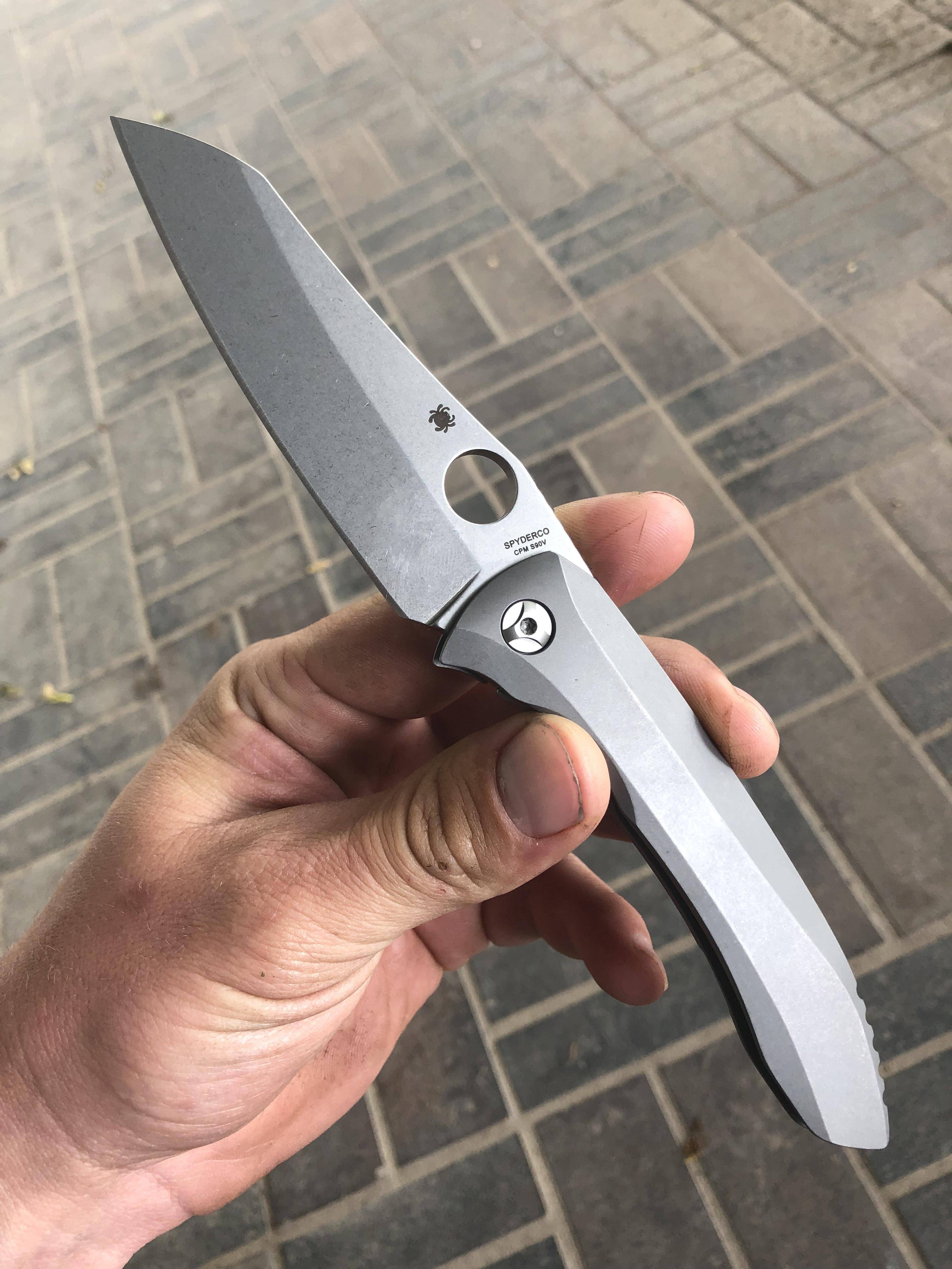 产品描述和数据: Spyderco Rassenti Paysan Folding Knife - S90V Stonewashed Plain Blade, Integral Titanium Handle是一款精致而坚固的折叠刀,适用于精密任务和日常携带。