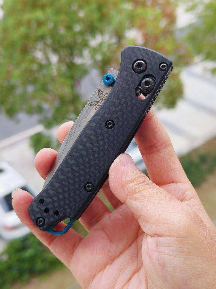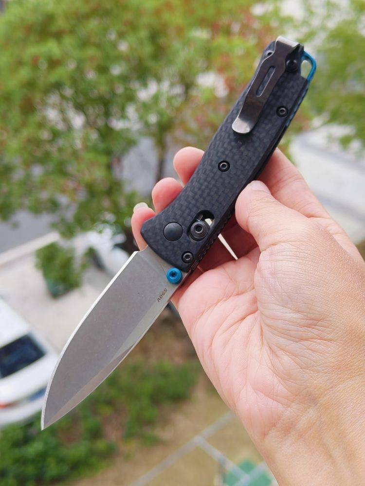 - 轻巧设计: Mini Bugout以其轻盈便携而闻名,适合作为日常携带刀具。