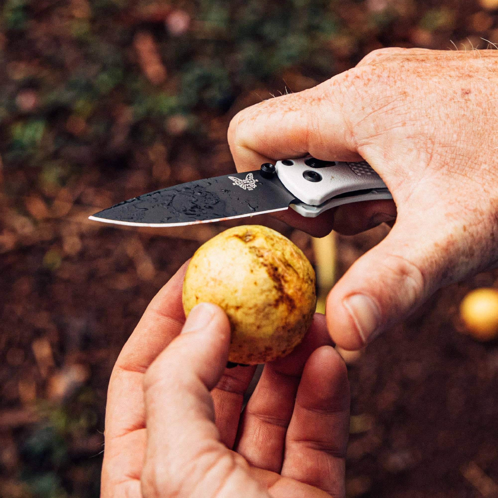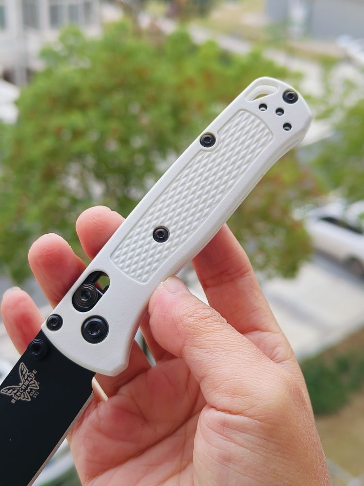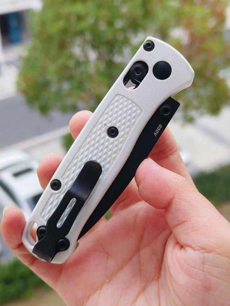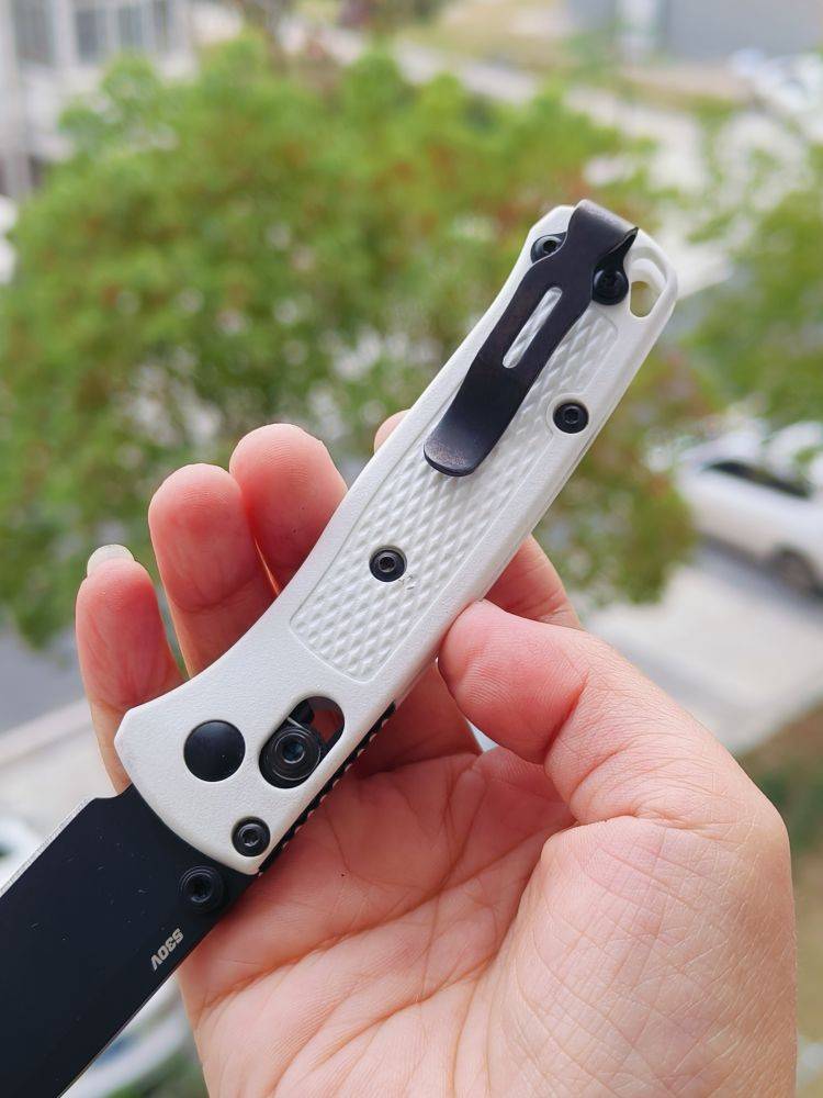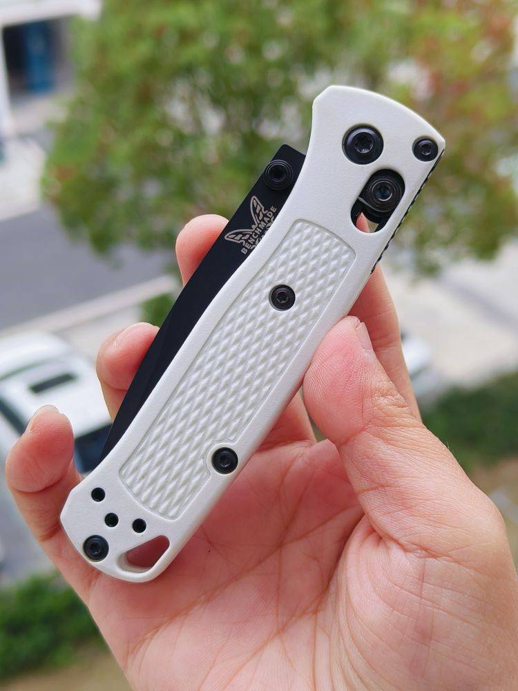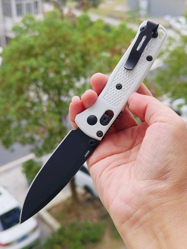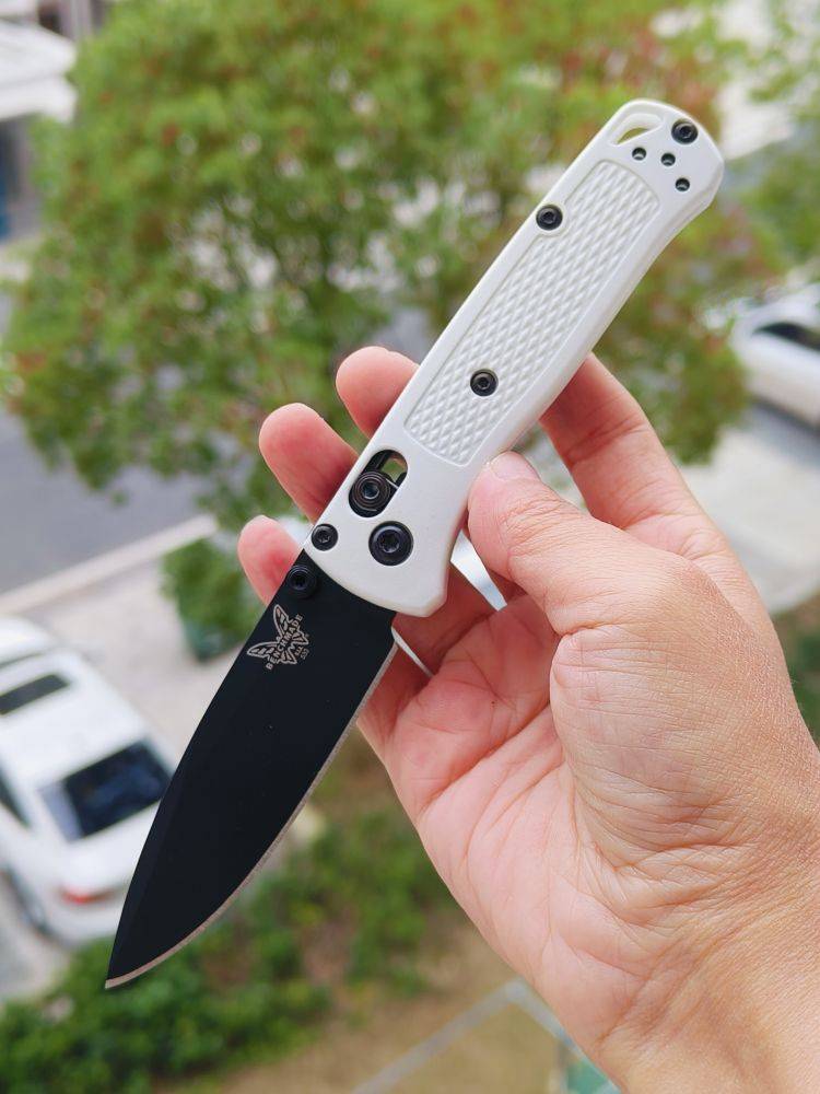 - 轻巧设计: 迷你Bugout采用轻巧的设计,便于携带,是理想的日常刀具。