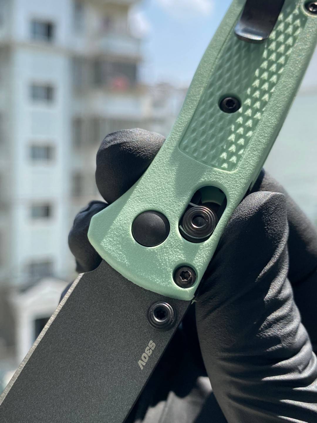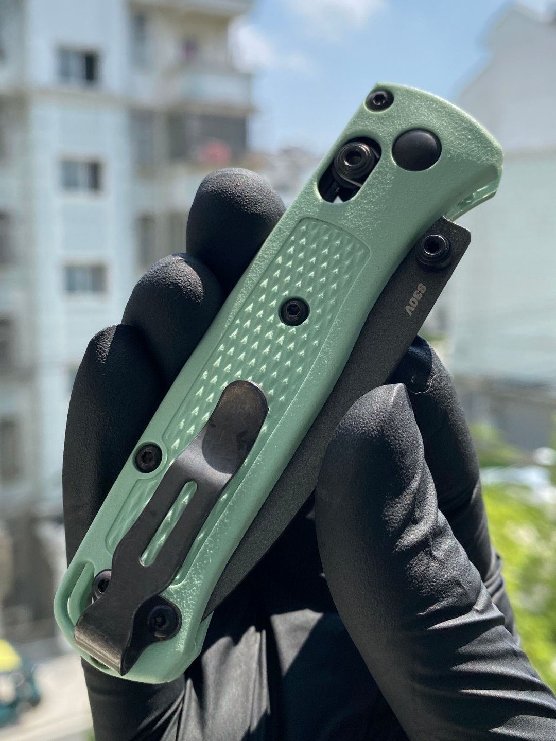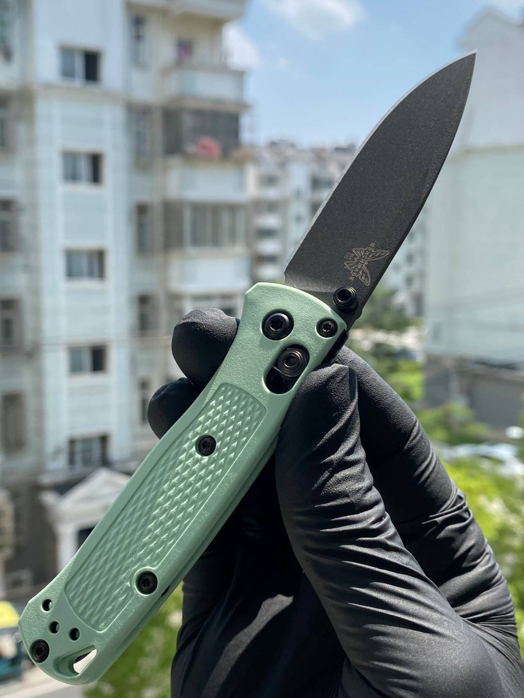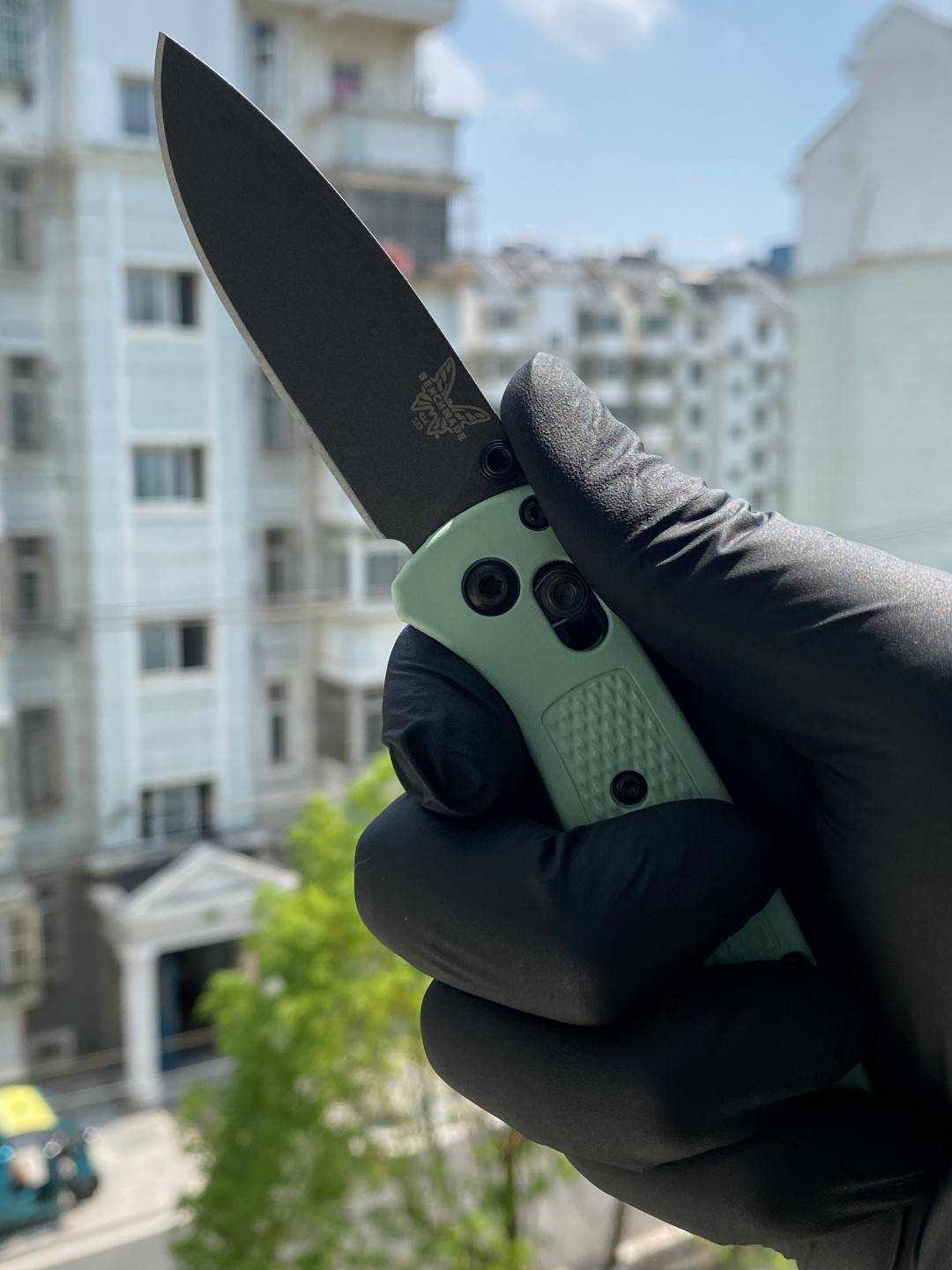 - 轻巧设计: Mini Bugout以其轻盈便携而闻名,适合作为日常携带刀具。