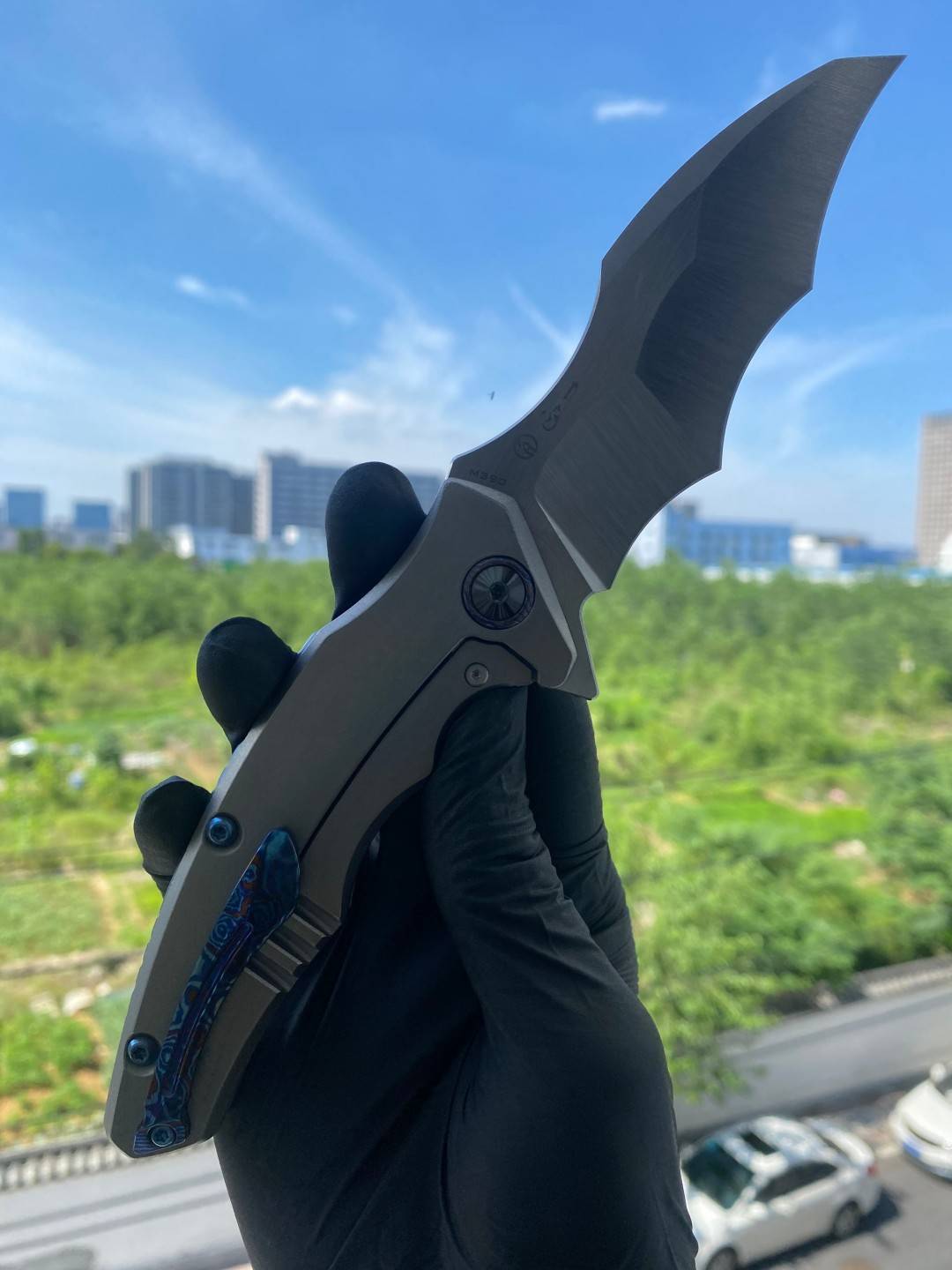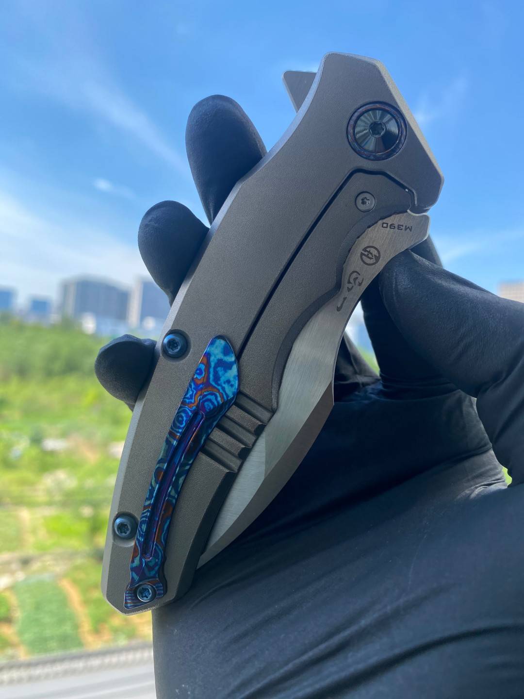 🚫 Maxace Knives 龍 M390钢 钛合金柄 蓝色螺丝及背骨 MDG01 2780