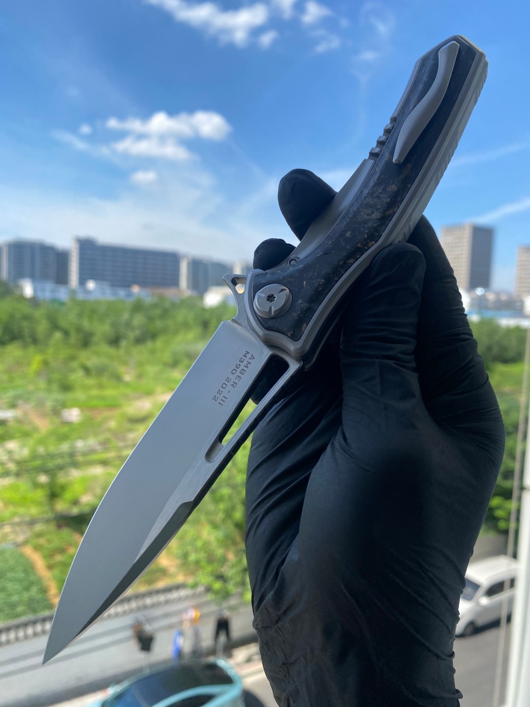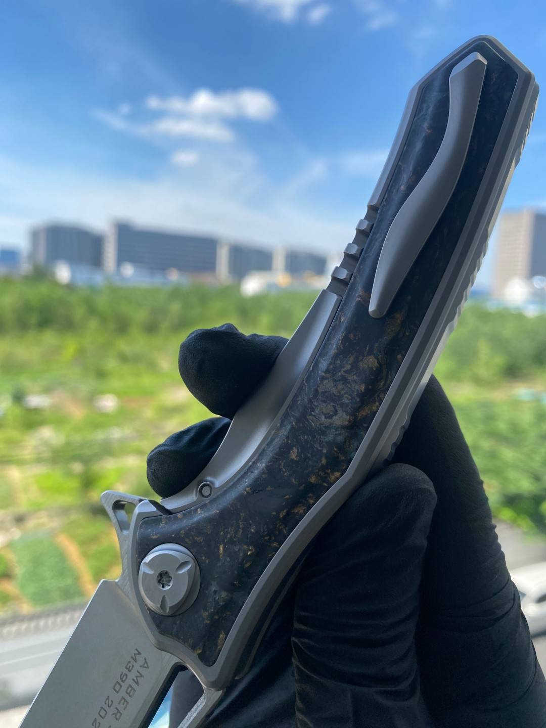 🚫 Maxace Knives 琥珀三代 M390钢 钛合金柄镶嵌碳纤维 MCA301 1680