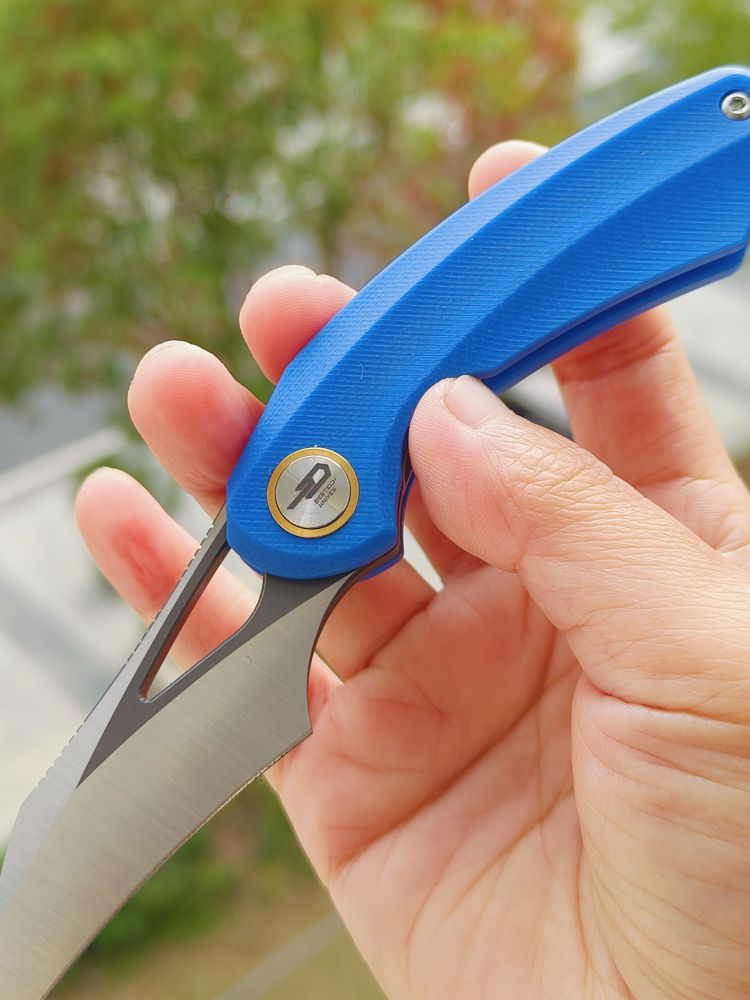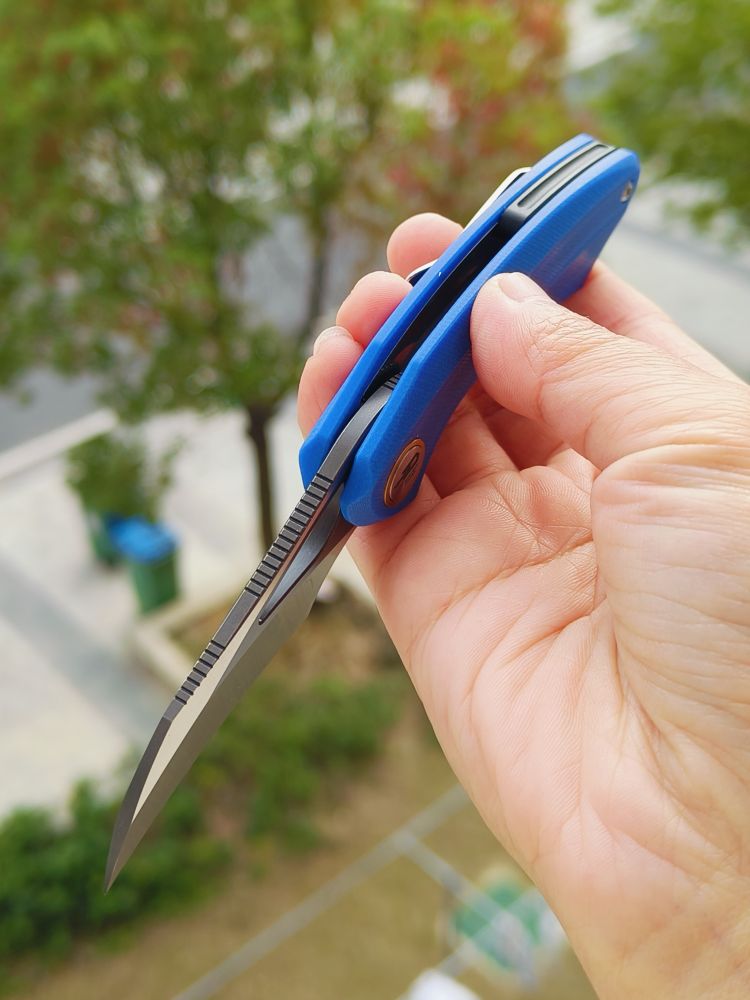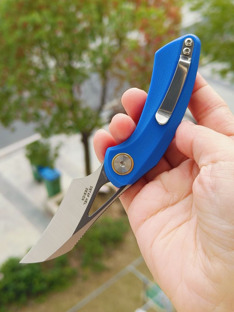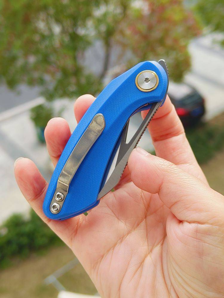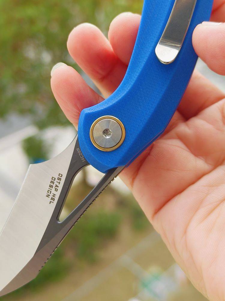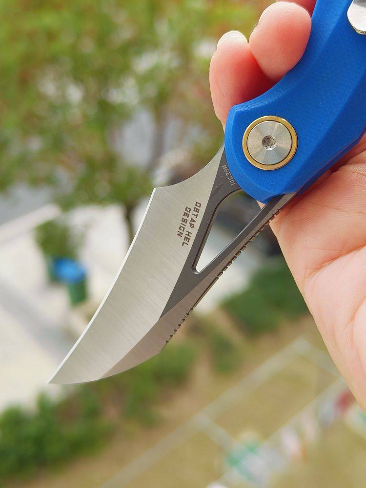 刀片材质:14C28N 刀片表面处理:灰色 DLC 石洗+缎面 柄材:G10 夹子材质:钢 描述:衬锁 手柄颜色:蓝色 滚珠轴承:陶瓷 总长度:5.24 英寸(133 毫米) 闭合长度:3.09 英寸(78.5 毫...