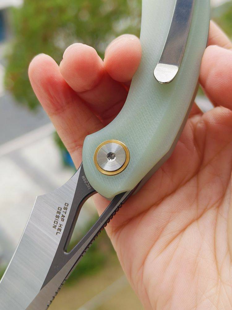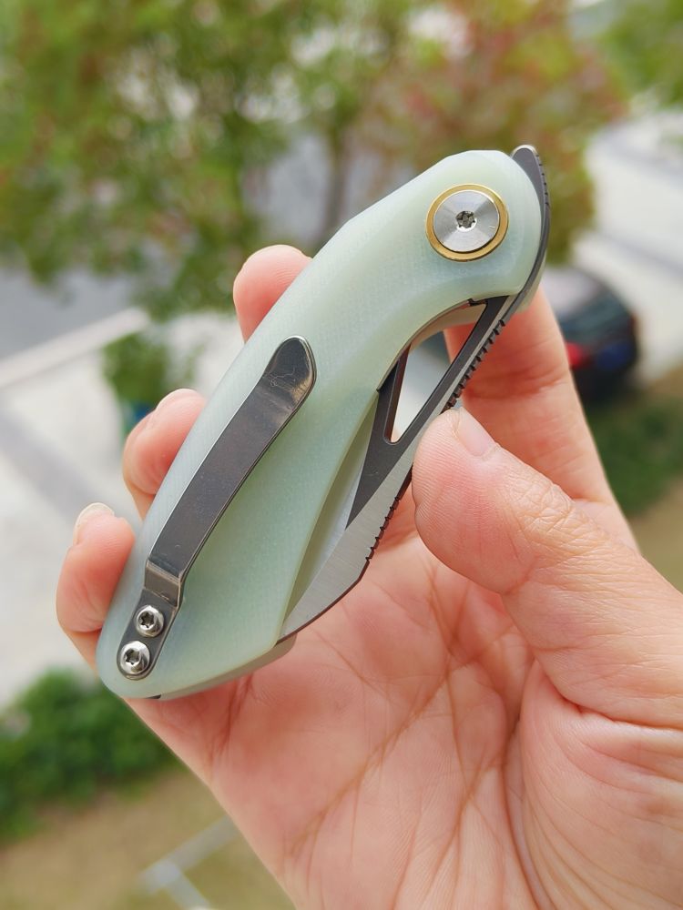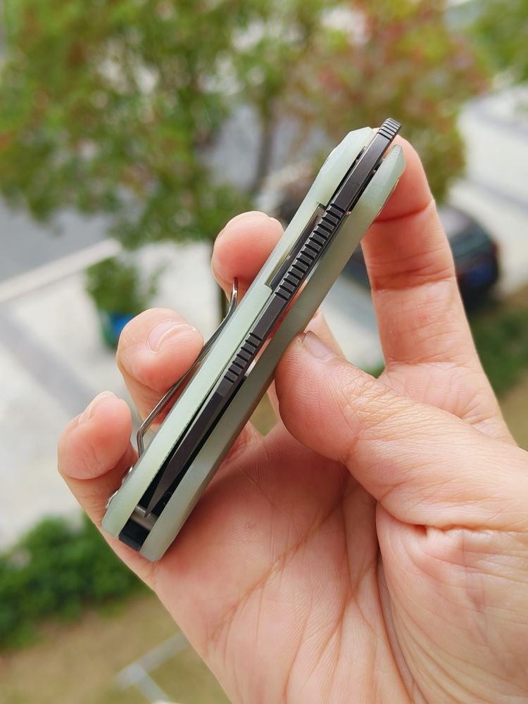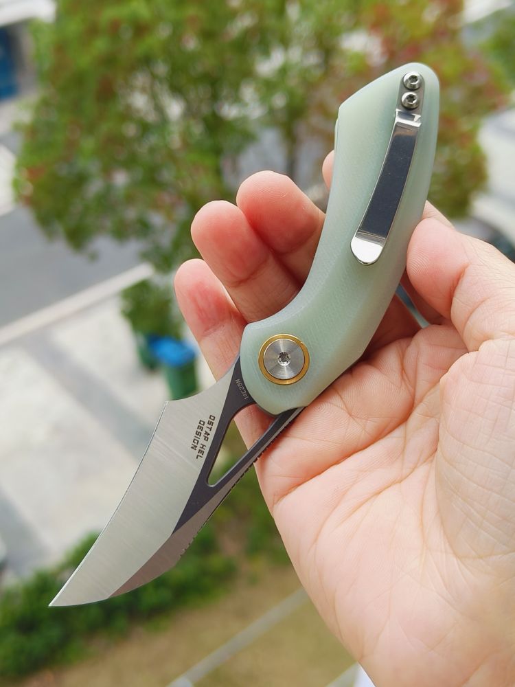 刀片材质:14C28N 刀片表面处理:灰色 DLC 石洗+缎面 柄材:G10 夹子材质:钢 描述:衬锁 柄材颜色:翡翠色 滚珠轴承:陶瓷 总长度:5.24 英寸(133 毫米) 闭合长度:3.09 英寸(78.5 ...