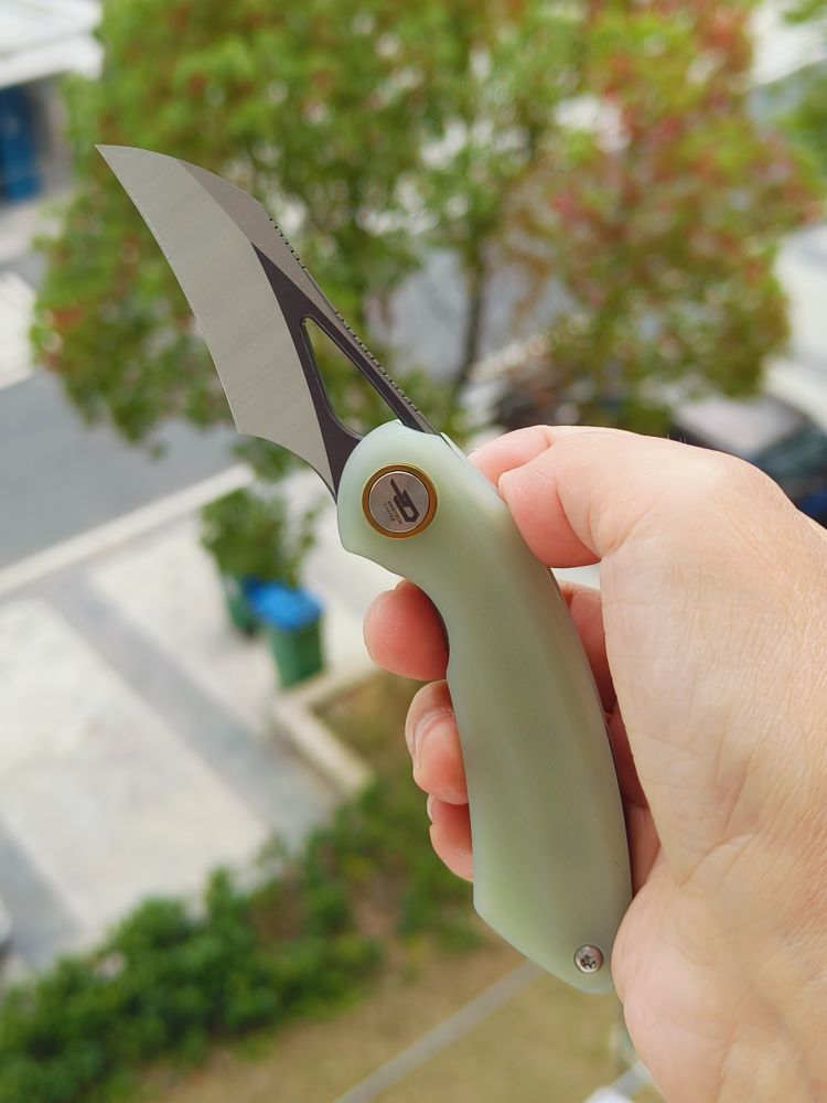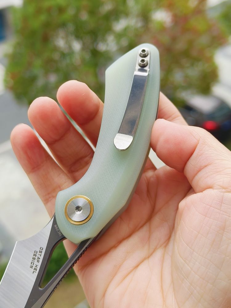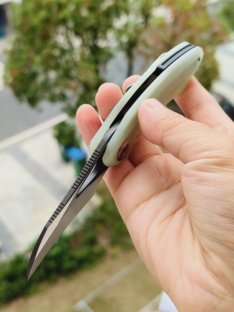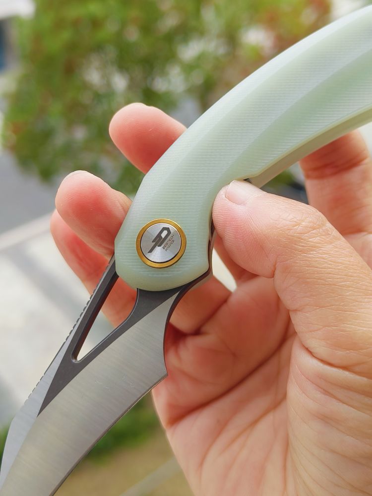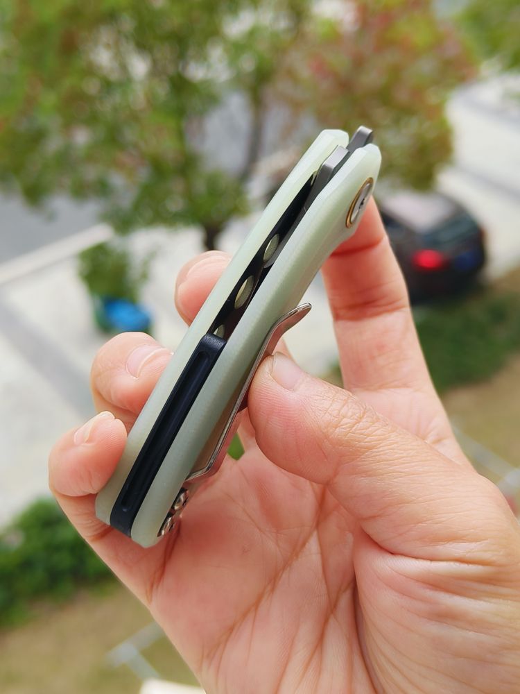 刀片材质:14C28N 刀片表面处理:灰色 DLC 石洗+缎面 柄材:G10 夹子材质:钢 描述:衬锁 柄材颜色:翡翠色 滚珠轴承:陶瓷 总长度:5.24 英寸(133 毫米) 闭合长度:3.09 英寸(78.5 ...