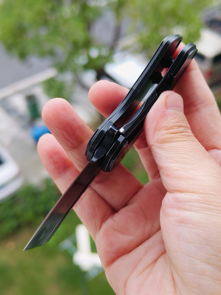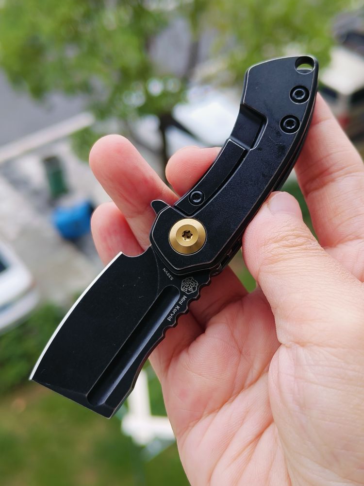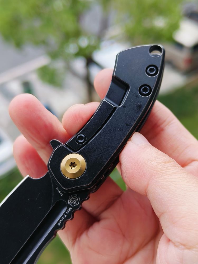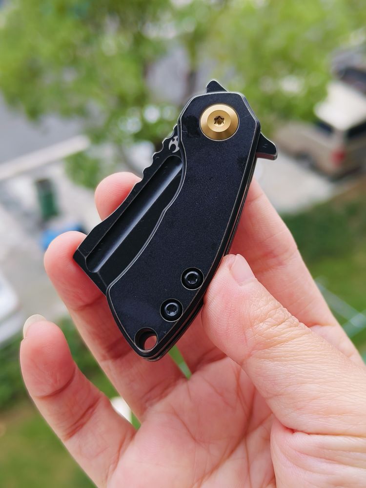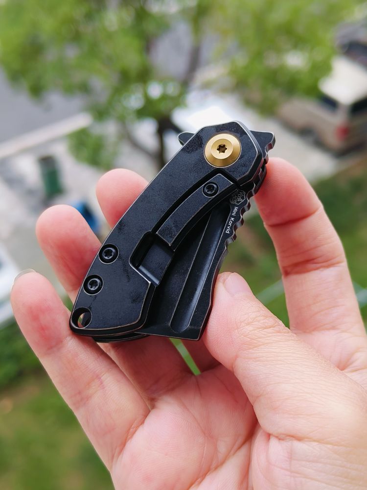 产品描述: KANSEPT Mini Korvid Flipper Knife是一款精美的折刀,设计独特,具有出色的实用性和美学价值。该折刀采用黑色阳极氧化钛柄和黑色TiCn涂层的S35VN钢刀片,为用户提供卓越的性能和耐用性。 设计师简...