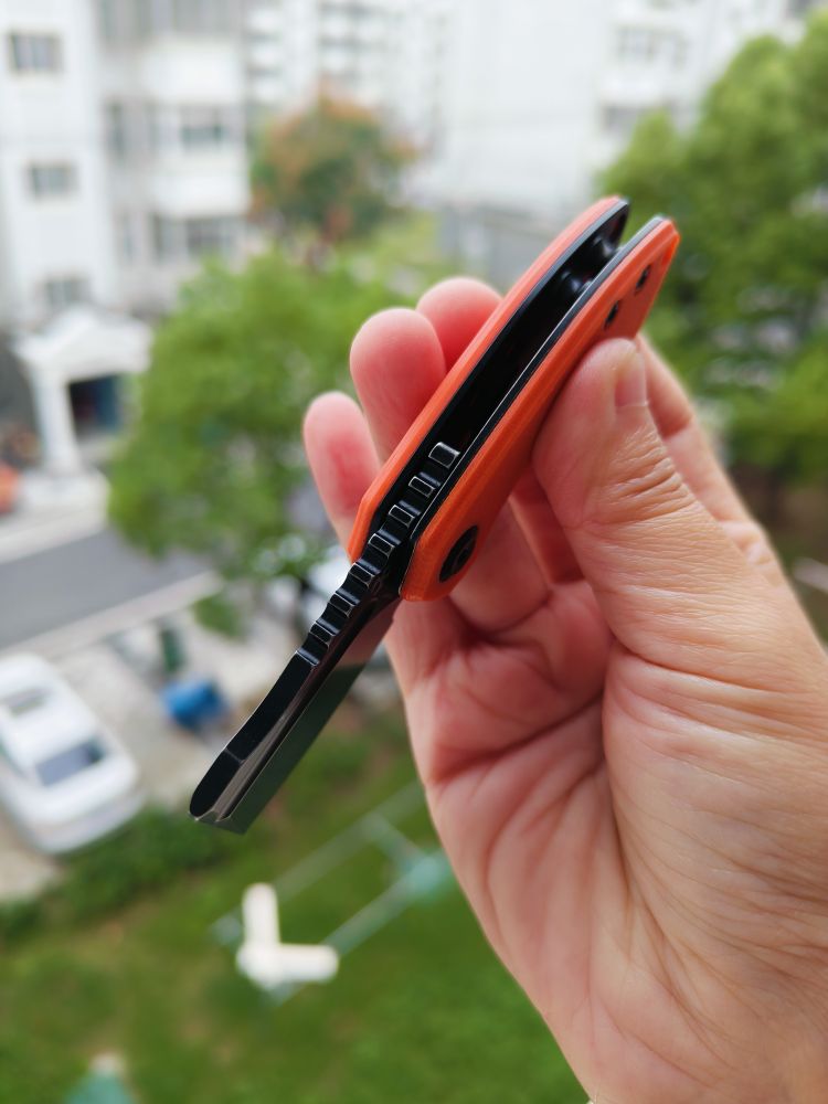 - 紧凑的橙色G10手柄,提供光滑的握持表面,舒适易用;