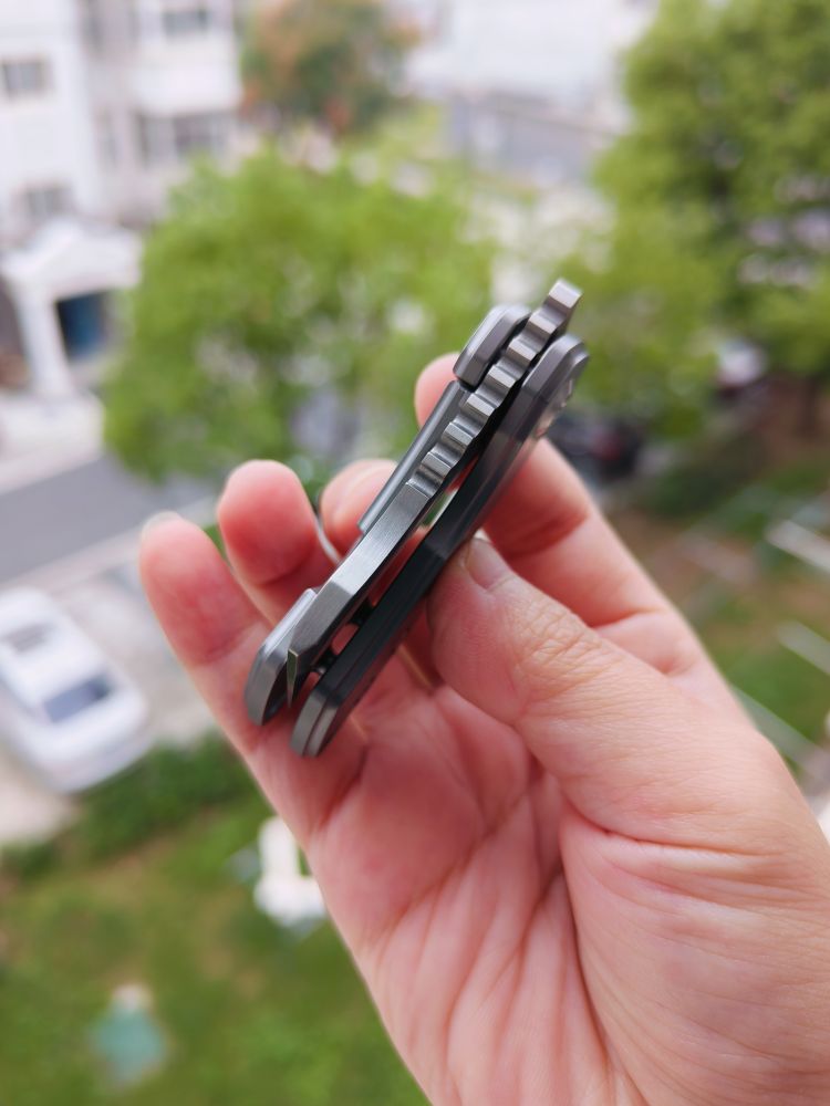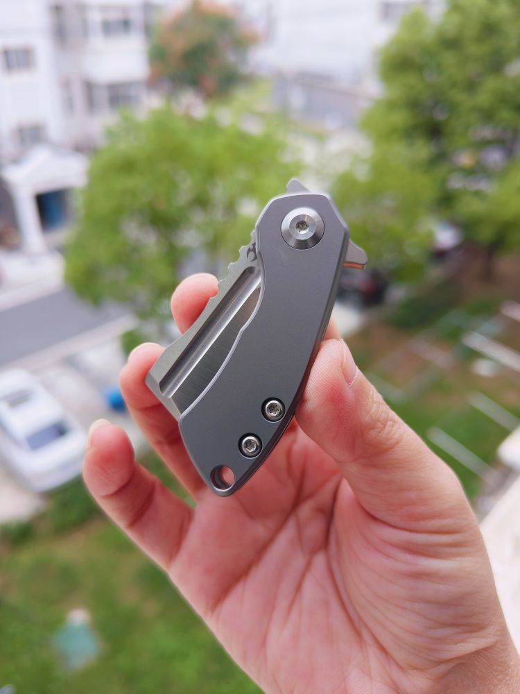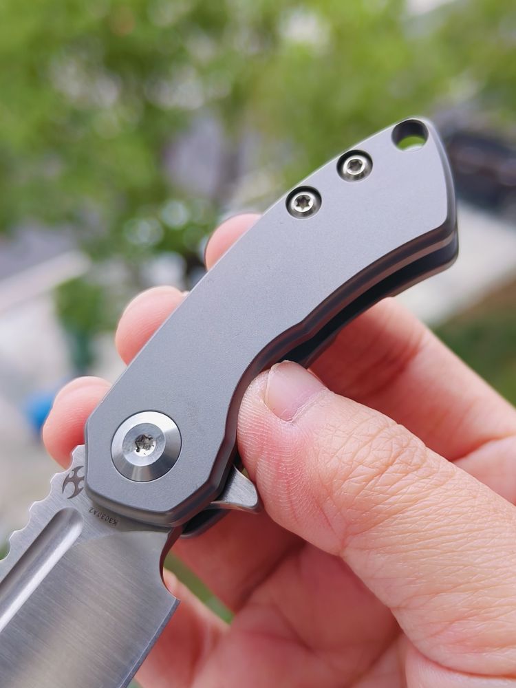 KANSEPT Mini Korvid Flipper刀具是一款精致而实用的折刀。它采用喷砂钛柄,提供舒适的握持表面。刀具操作流畅且易于展开。刀片采用优质的CPM-S35VN刀钢制成,具有出色的刀刃保持性能,同时也具备足够的强度。