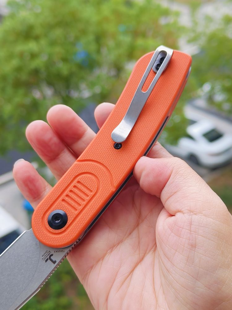 Reverie T2025A3是一款由Justin Lundquist设计的折刀,具有出色的工艺和功能性。这把刀采用了橙色G10握柄和石洗处理的154CM不锈钢刀片,结合了经典和现代的设计元素,展现出独特的外观和出色的性能。