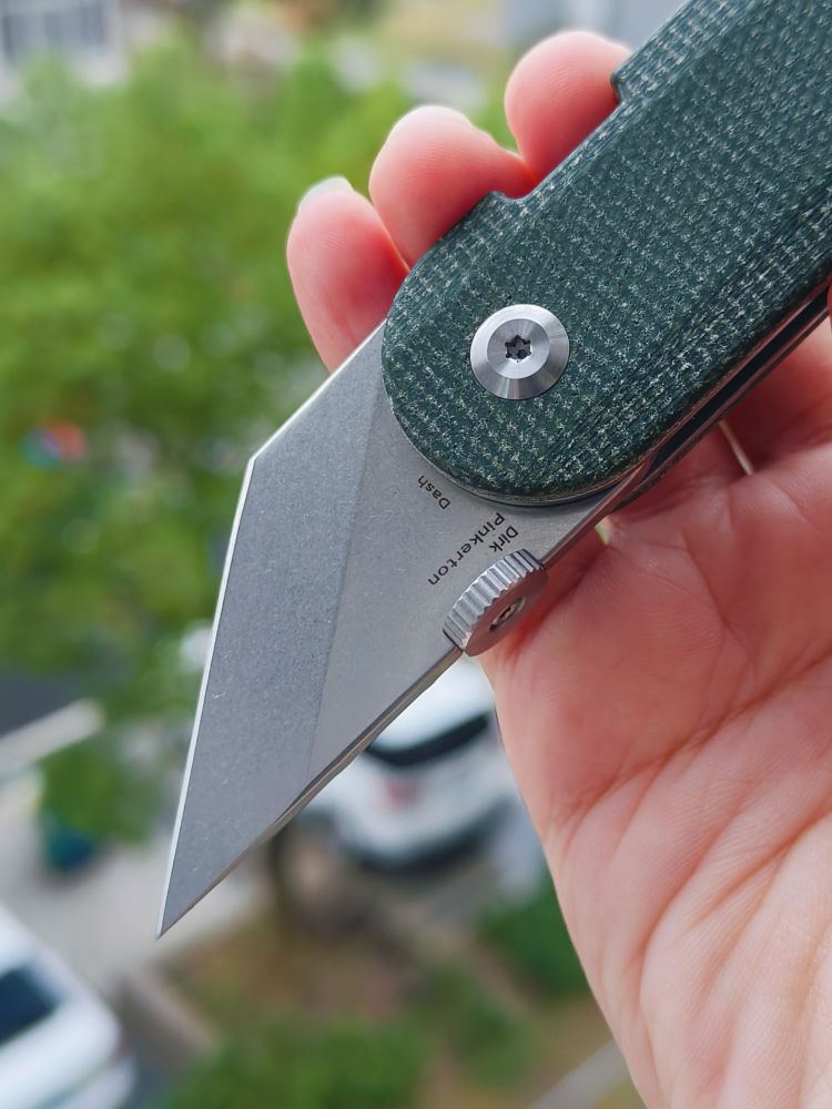 Dash T3045A5是一款由著名设计师Dirk Pinkerton设计的折刀。它采用了黑色石洗处理的154CM钢刀片和绿色米卡塔手柄,展现出时尚与实用性的完美结合。